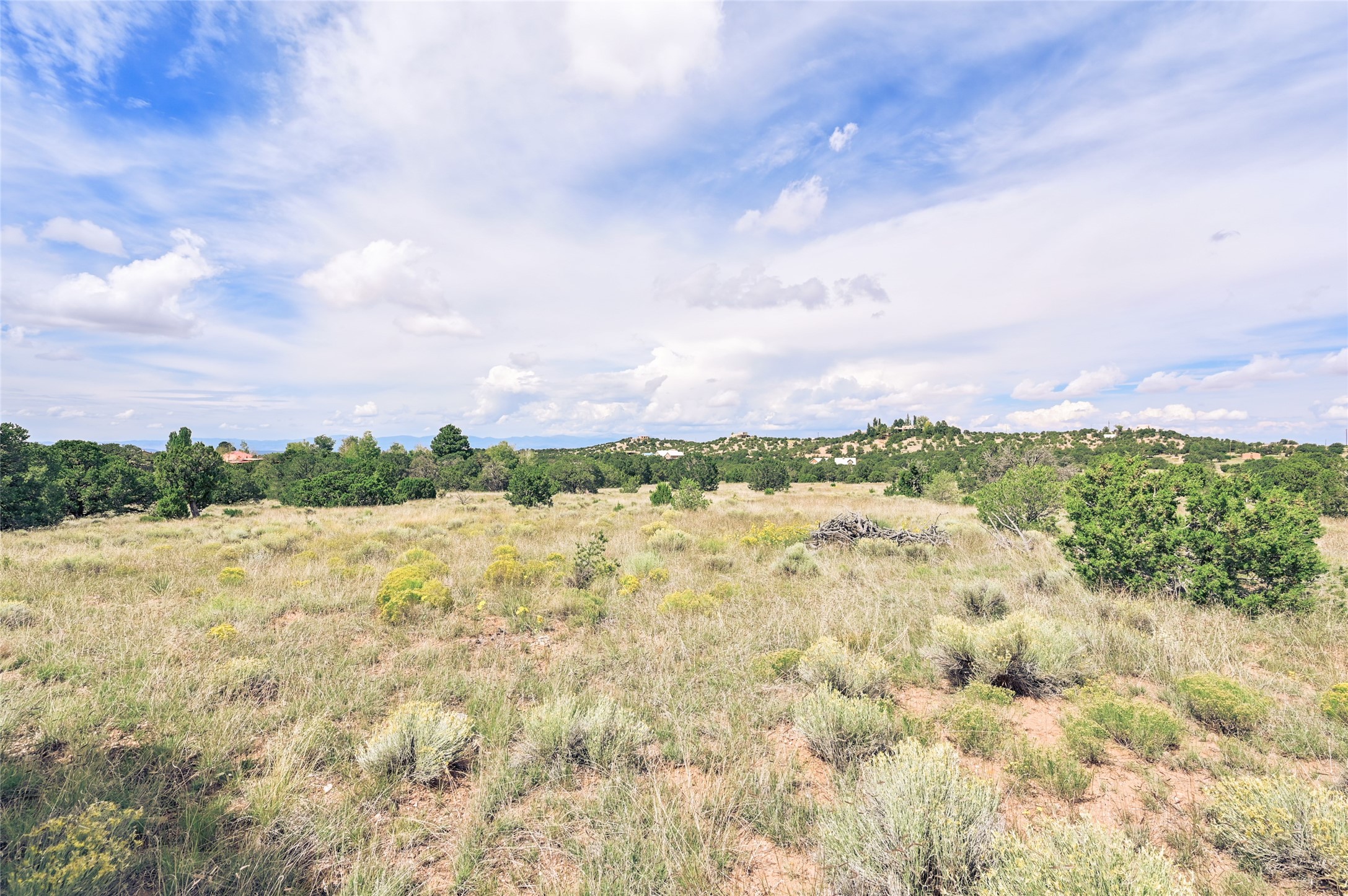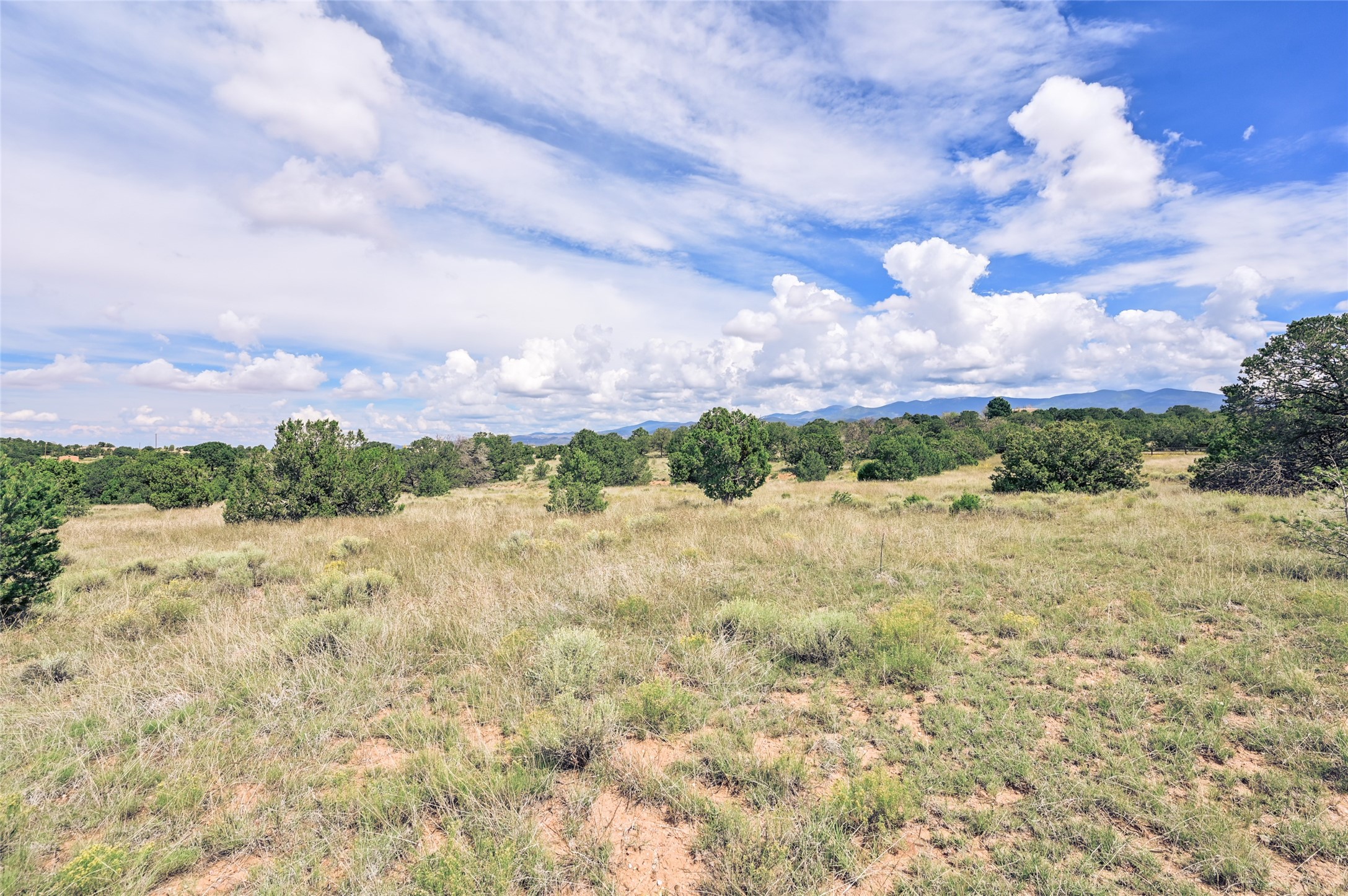This flat grassland property has big views of Sangres de Cristo Mountains and sunset views over the Jemez Mountains. It is a no hassle site, with flat terrain for easy building, a shared well not subject to Aamodt, a gate shared by a small number of homes, simple covenants and only 15 minutes from the plaza. This gorgeous property is ready for your beautiful new home.