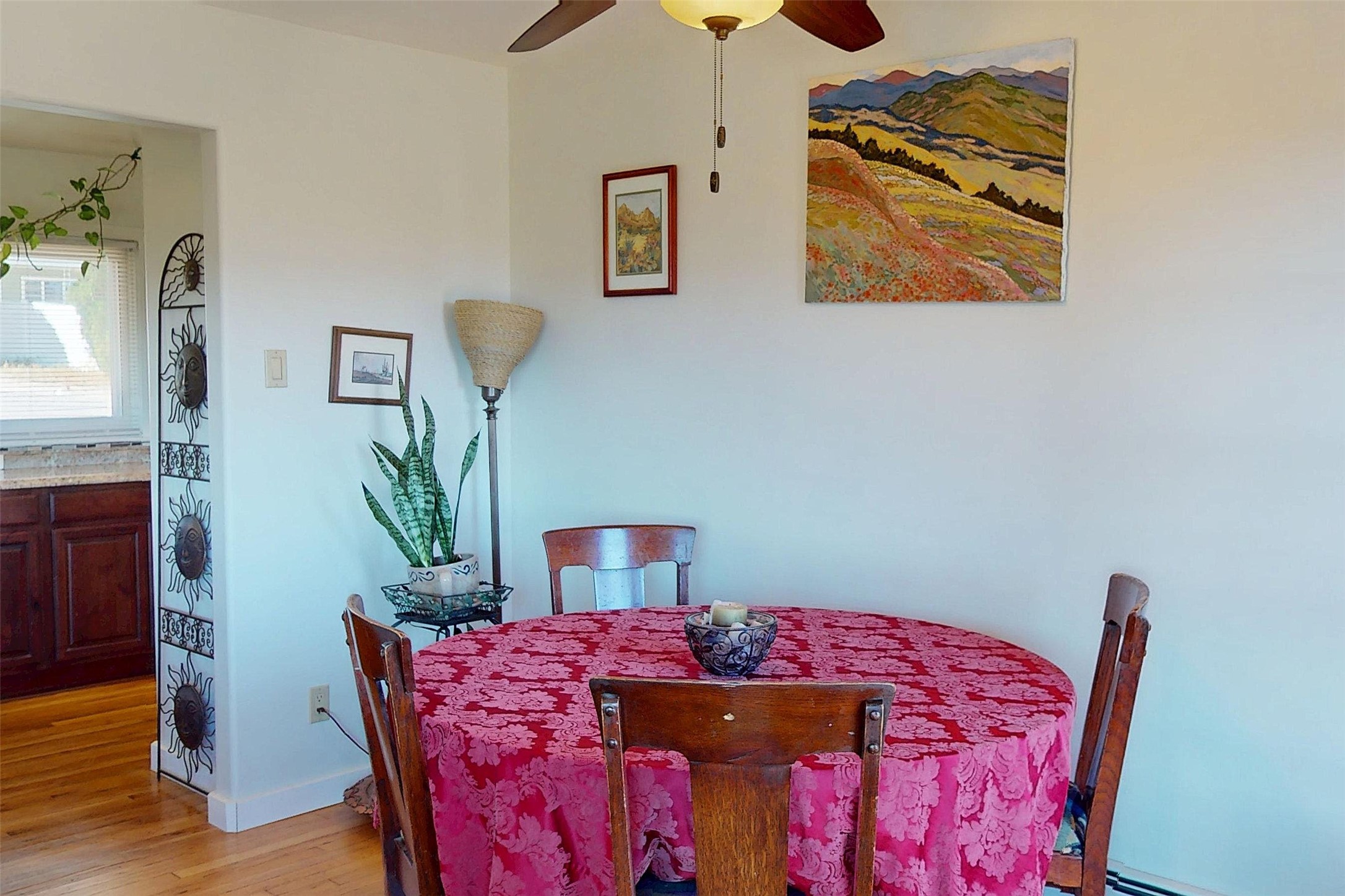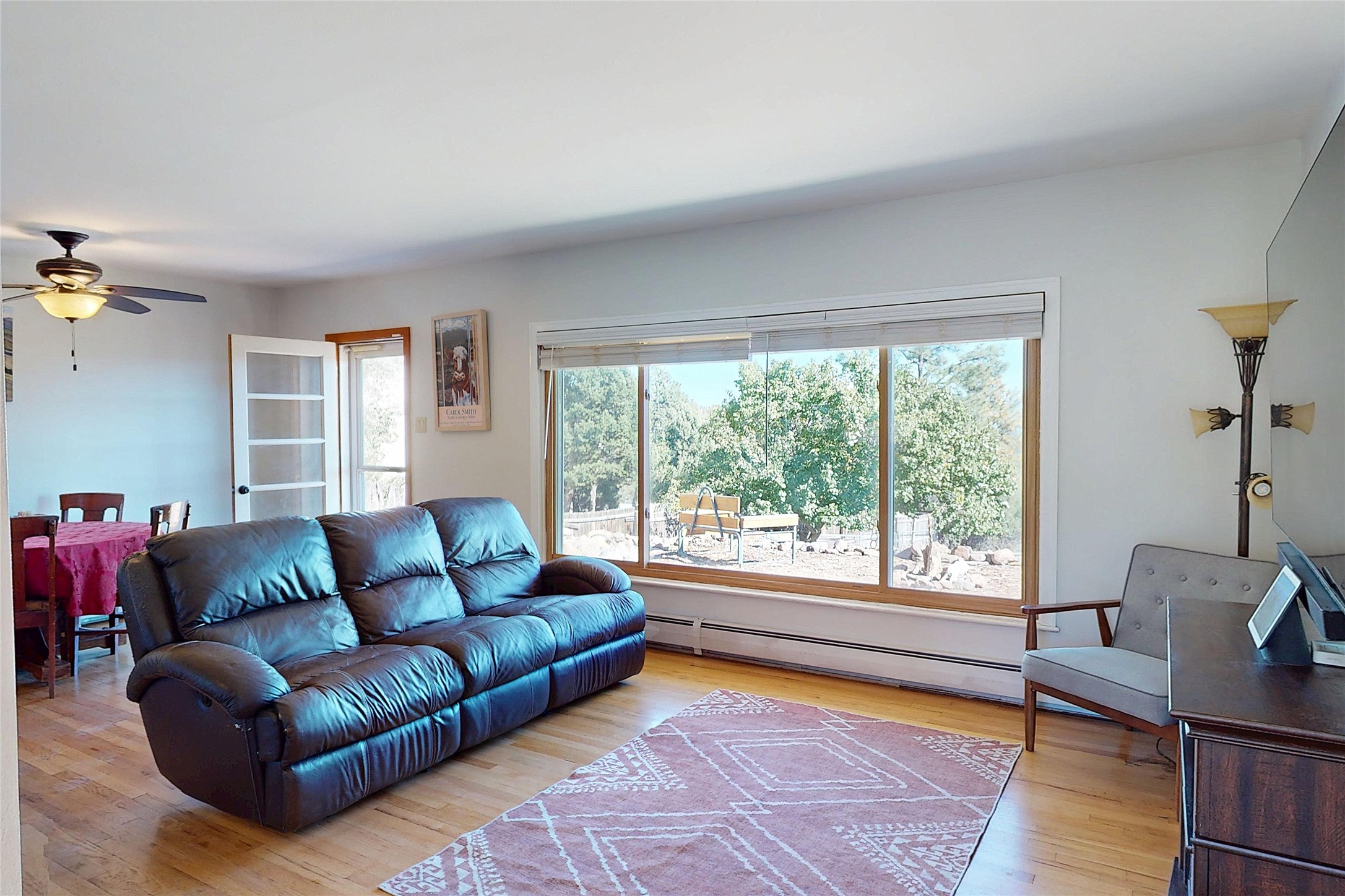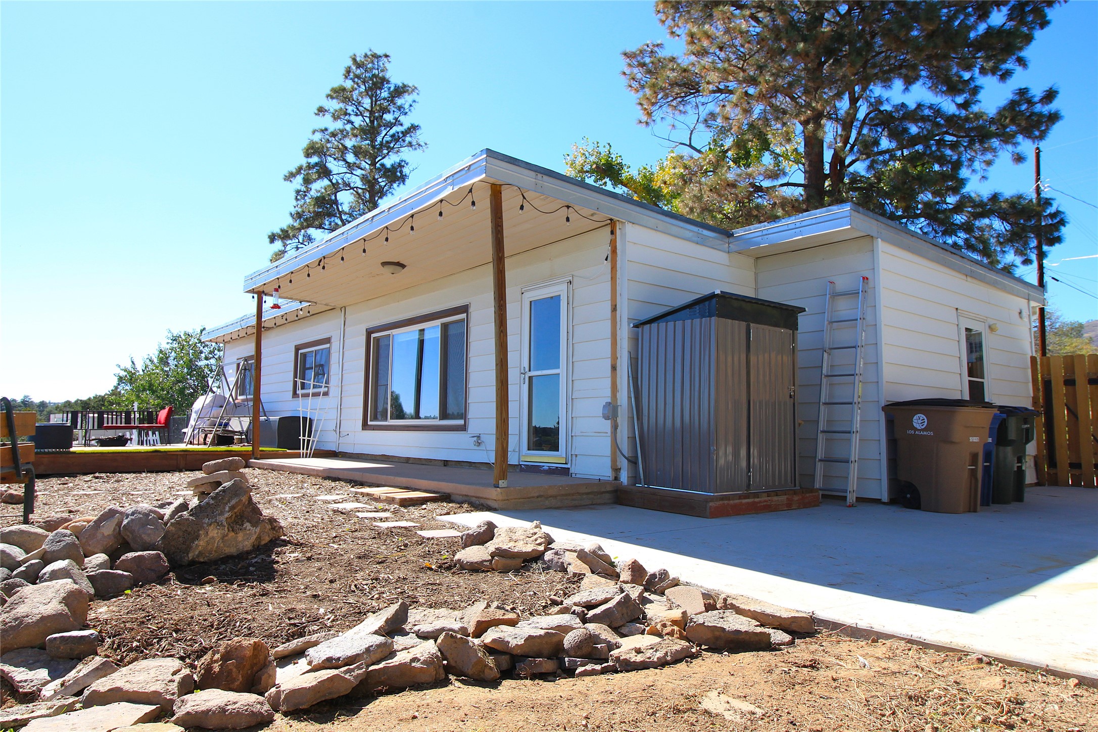 Charming Single-Story with Views and Spacious Backyard! This delightful 3-bedroom, 1-bath home combines comfort, functionality, and scenic beauty. Located near the end of a quiet street, it offers peaceful surroundings and sweeping views of Los Alamos, the mountains, and the mesas. Inside, the open floor plan seamlessly connects the living and dining areas, creating a bright, welcoming space perfect for everyday living or entertaining. The updated kitchen features rich wood cabinetry, walnut butcherblock countertops, modern appliances, and abundant storage--including a pantry and an extra freezer conveniently located just off the kitchen near the laundry. The track lighting in the kitchen provides ambient lighting while undercounter lights brighten work areas and pendent lights provide additional style. Large windows fill the home with natural light and frame stunning views of the surrounding landscape, while beautiful hardwood floors add warmth and character throughout the home. Outside, the expansive lot offers endless opportunities for outdoor living, gardening, and play. The spacious backyard and wooden deck provide the perfect spots to relax, dine al fresco, or take in the breathtaking New Mexico sunrises. A sprinkler and drip system with rain delay keeps the landscaping easy to maintain, and a 30-amp circuit offers power for an RV. With easy access to hiking trails, schools, LANL, and LAMC, this home offers the ideal blend of Los Alamos tranquility and everyday practicality. Schedule your showing today!