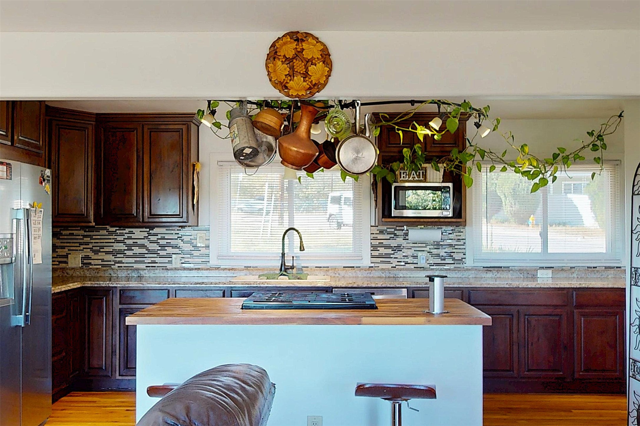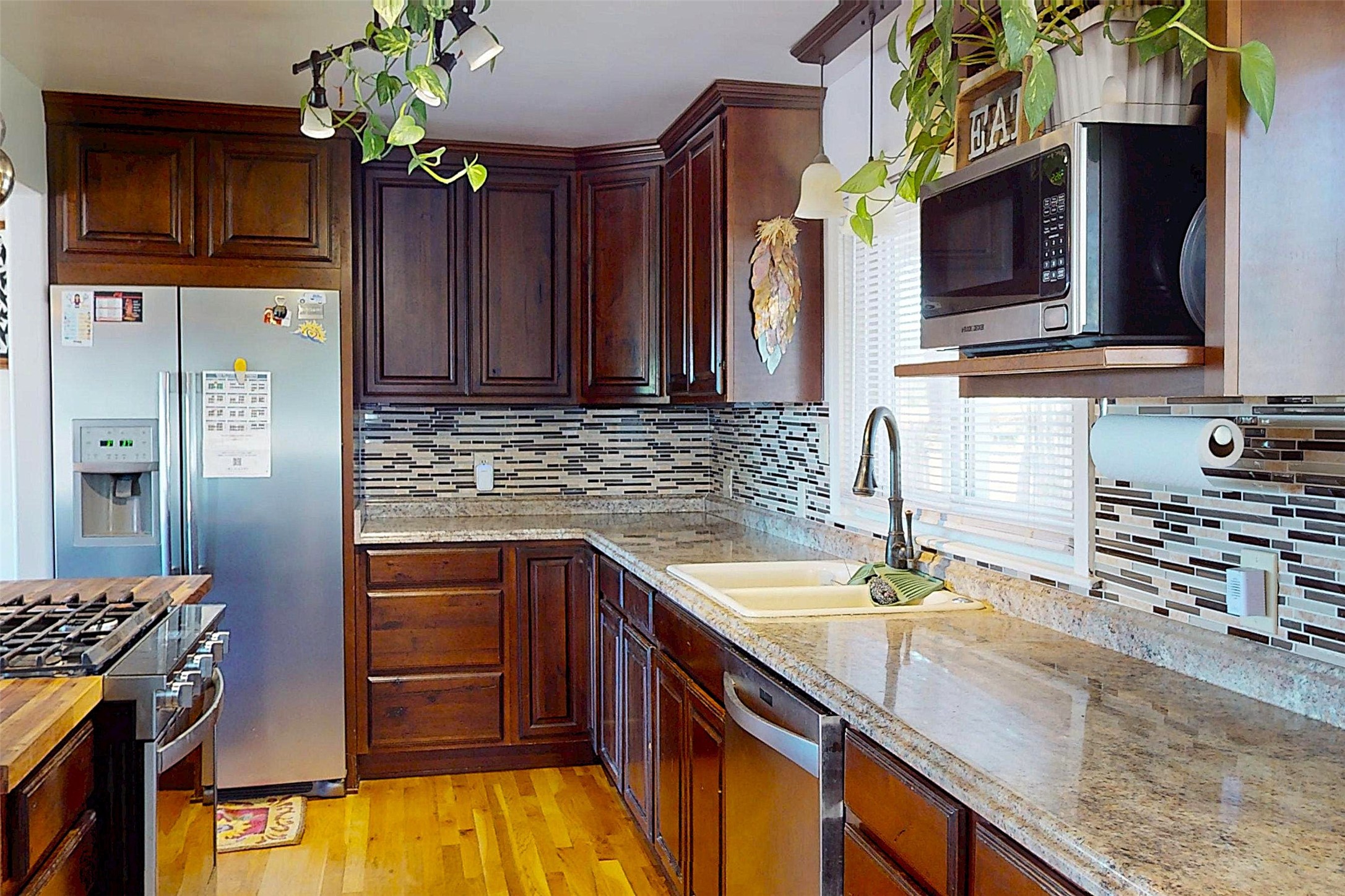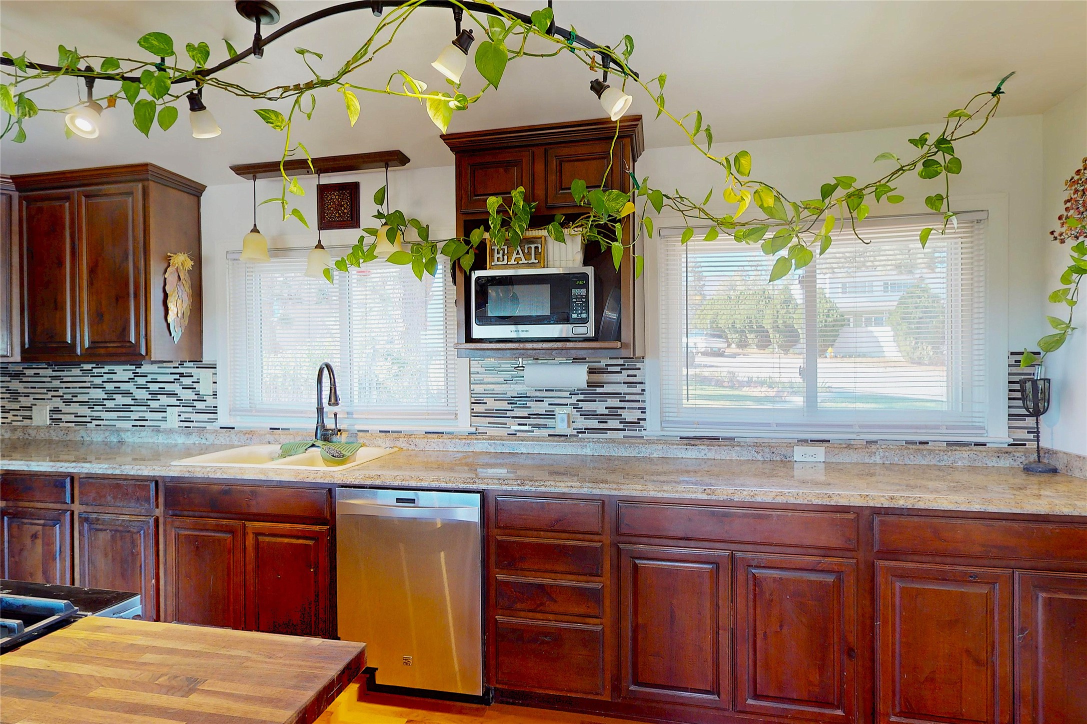 Charming Single-Story with Views and Spacious Backyard! This delightful 3-bedroom, 1-bath home combines comfort, functionality, and scenic beauty. Located near the end of a quiet street, it offers peaceful surroundings and sweeping views of Los Alamos, the mountains, and the mesas. Inside, the open floor plan seamlessly connects the living and dining areas, creating a bright, welcoming space perfect for everyday living or entertaining. The updated kitchen features rich wood cabinetry, walnut butcherblock countertops, modern appliances, and abundant storage--including a pantry and an extra freezer conveniently located just off the kitchen near the laundry. The track lighting in the kitchen provides ambient lighting while undercounter lights brighten work areas and pendent lights provide additional style. Large windows fill the home with natural light and frame stunning views of the surrounding landscape, while beautiful hardwood floors add warmth and character throughout the home. Outside, the expansive lot offers endless opportunities for outdoor living, gardening, and play. The spacious backyard and wooden deck provide the perfect spots to relax, dine al fresco, or take in the breathtaking New Mexico sunrises. A sprinkler and drip system with rain delay keeps the landscaping easy to maintain, and a 30-amp circuit offers power for an RV. With easy access to hiking trails, schools, LANL, and LAMC, this home offers the ideal blend of Los Alamos tranquility and everyday practicality. Schedule your showing today!