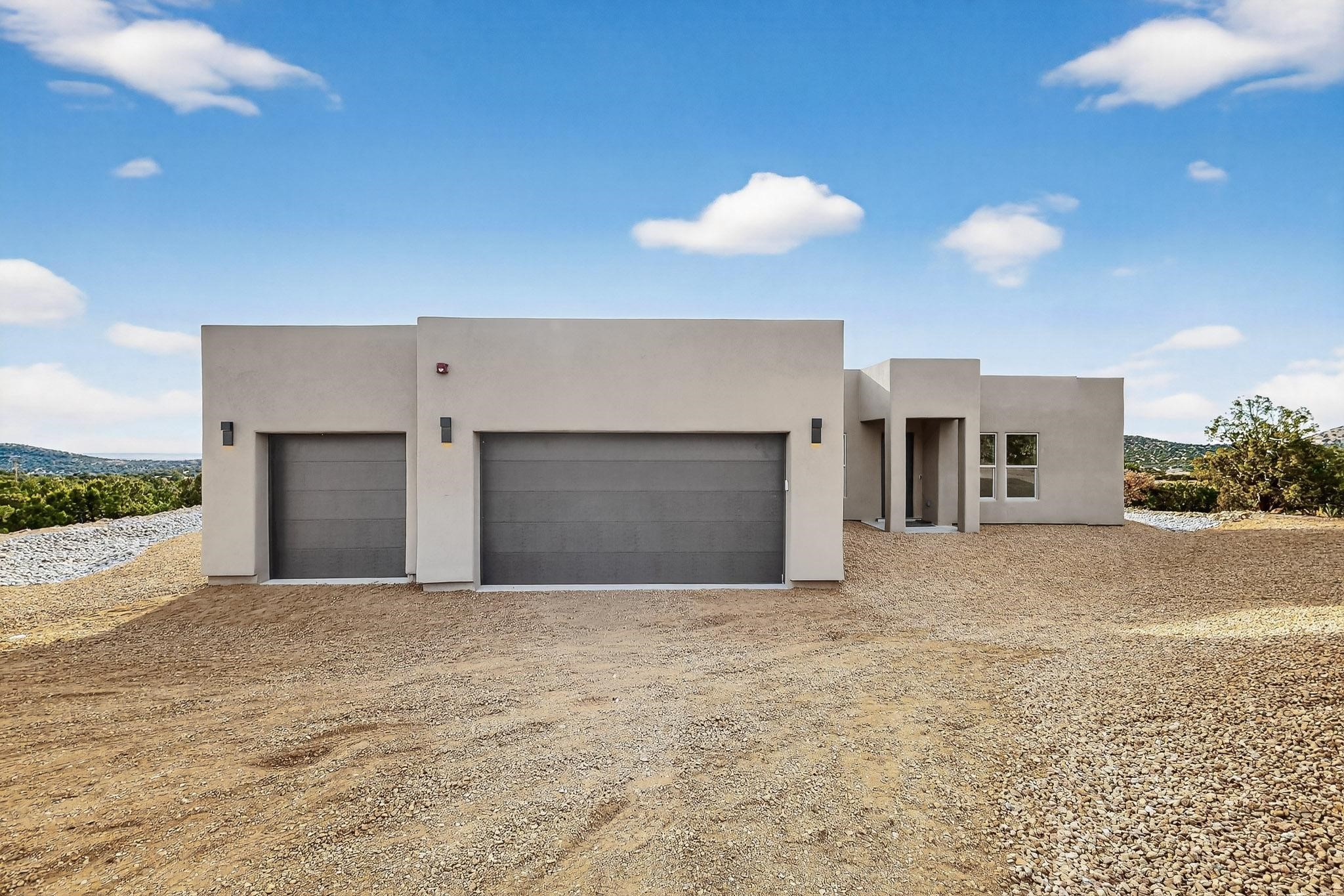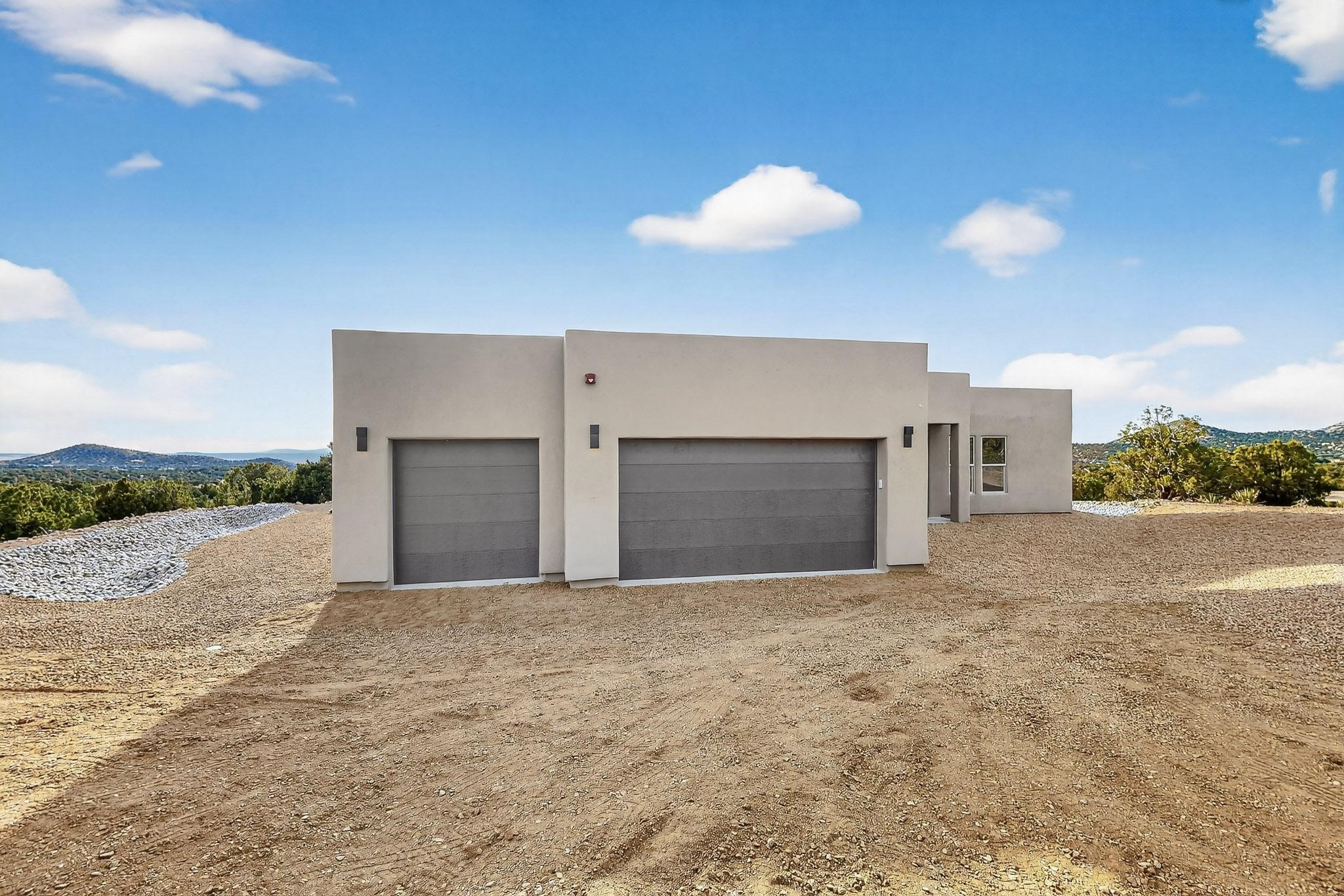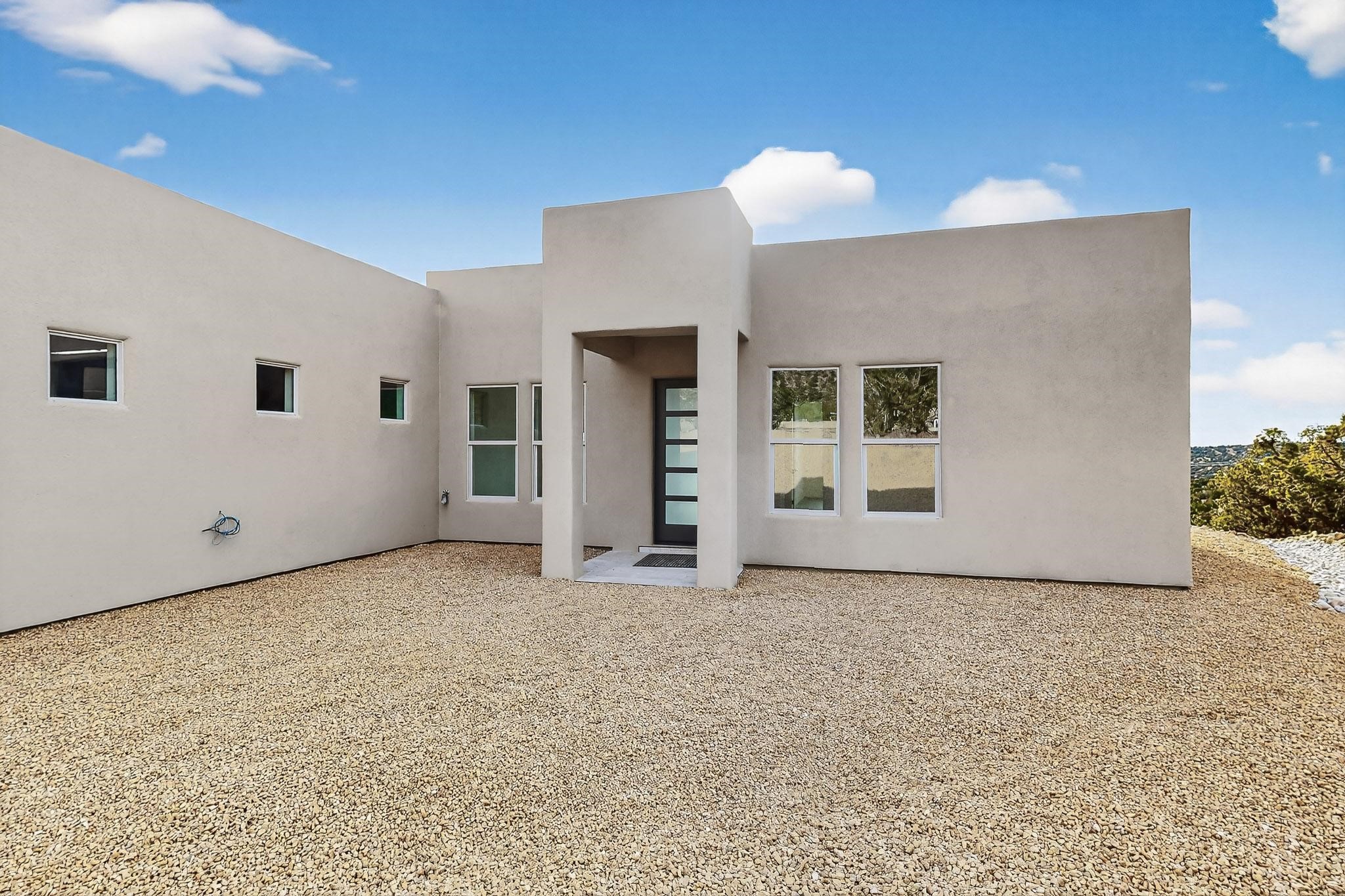 New Construction. Located in the exclusive Longview gated community, this 3-bedroom, 3-bath home with a 3-car garage offers breathtaking views of the Sandia and Galisteo Basin. Thoughtfully designed with two primary suites plus an office, the home features custom cabinetry, a walk-in pantry, and light-filled open living spaces. Enjoy seamless indoor-outdoor living, a spacious three-car garage, and the tranquility of one of Santa Fe's most sought-after settings. House is currently under construction and will be completed by mid-November.