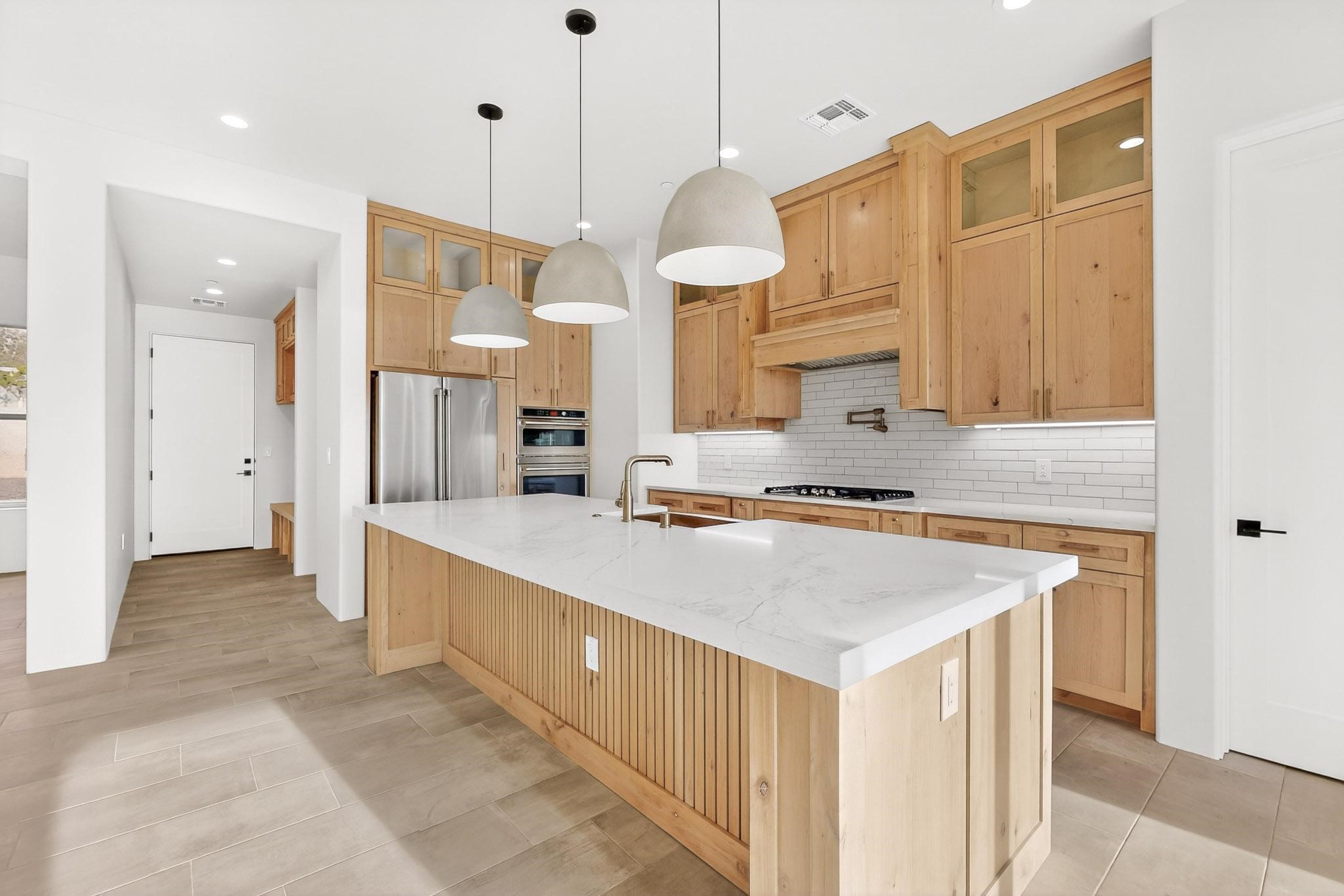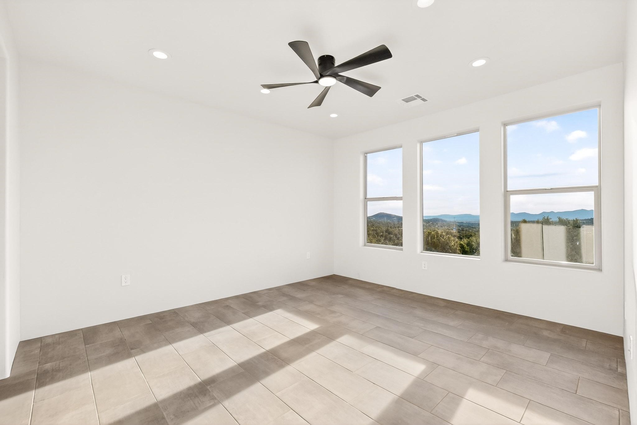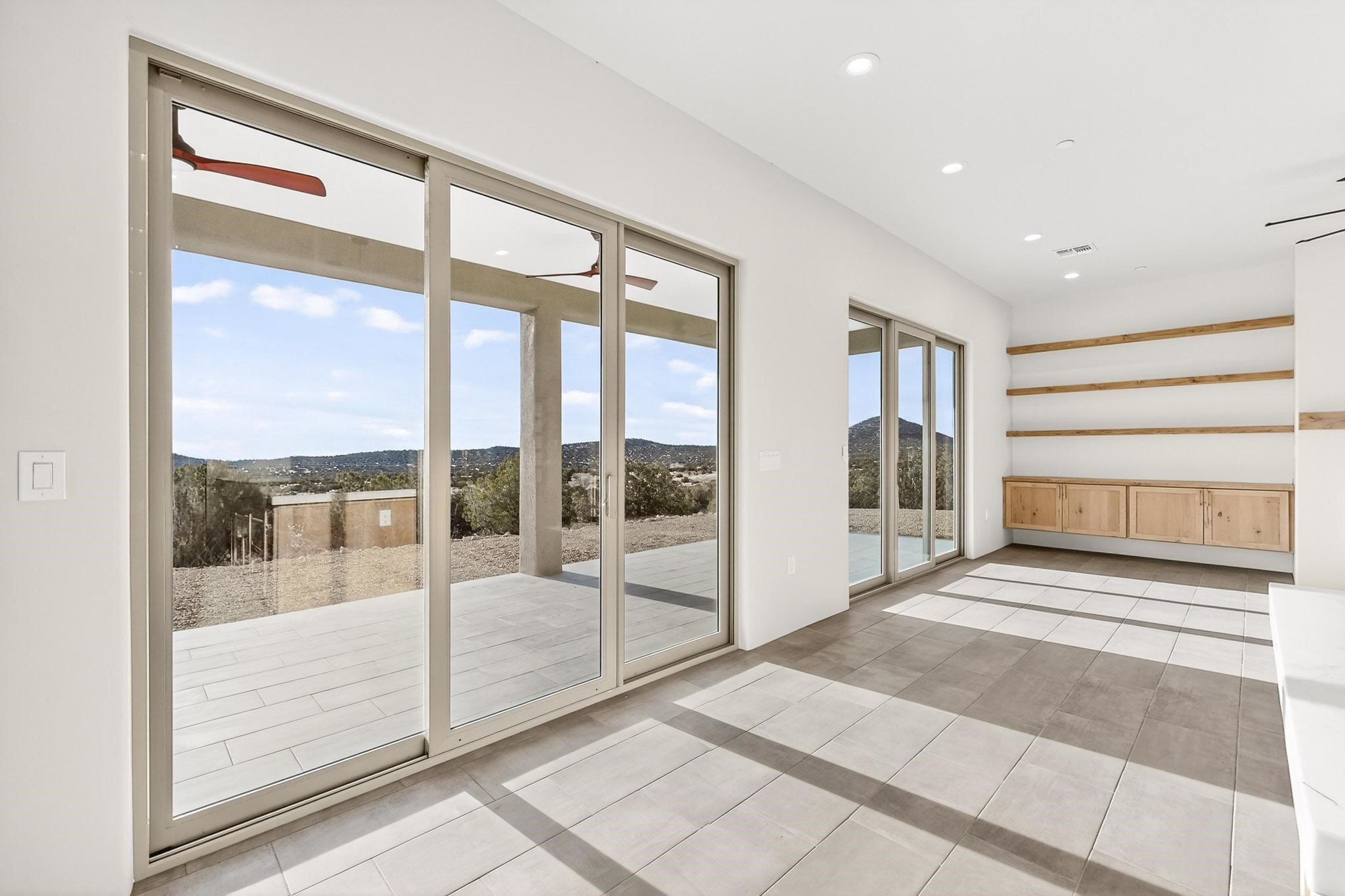 New Construction. Located in the exclusive Longview gated community, this 3-bedroom, 3-bath home with a 3-car garage offers breathtaking views of the Sandia and Galisteo Basin. Thoughtfully designed with two primary suites plus an office, the home features custom cabinetry, a walk-in pantry, and light-filled open living spaces. Enjoy seamless indoor-outdoor living, a spacious three-car garage, and the tranquility of one of Santa Fe's most sought-after settings. House is currently under construction and will be completed by mid-November.