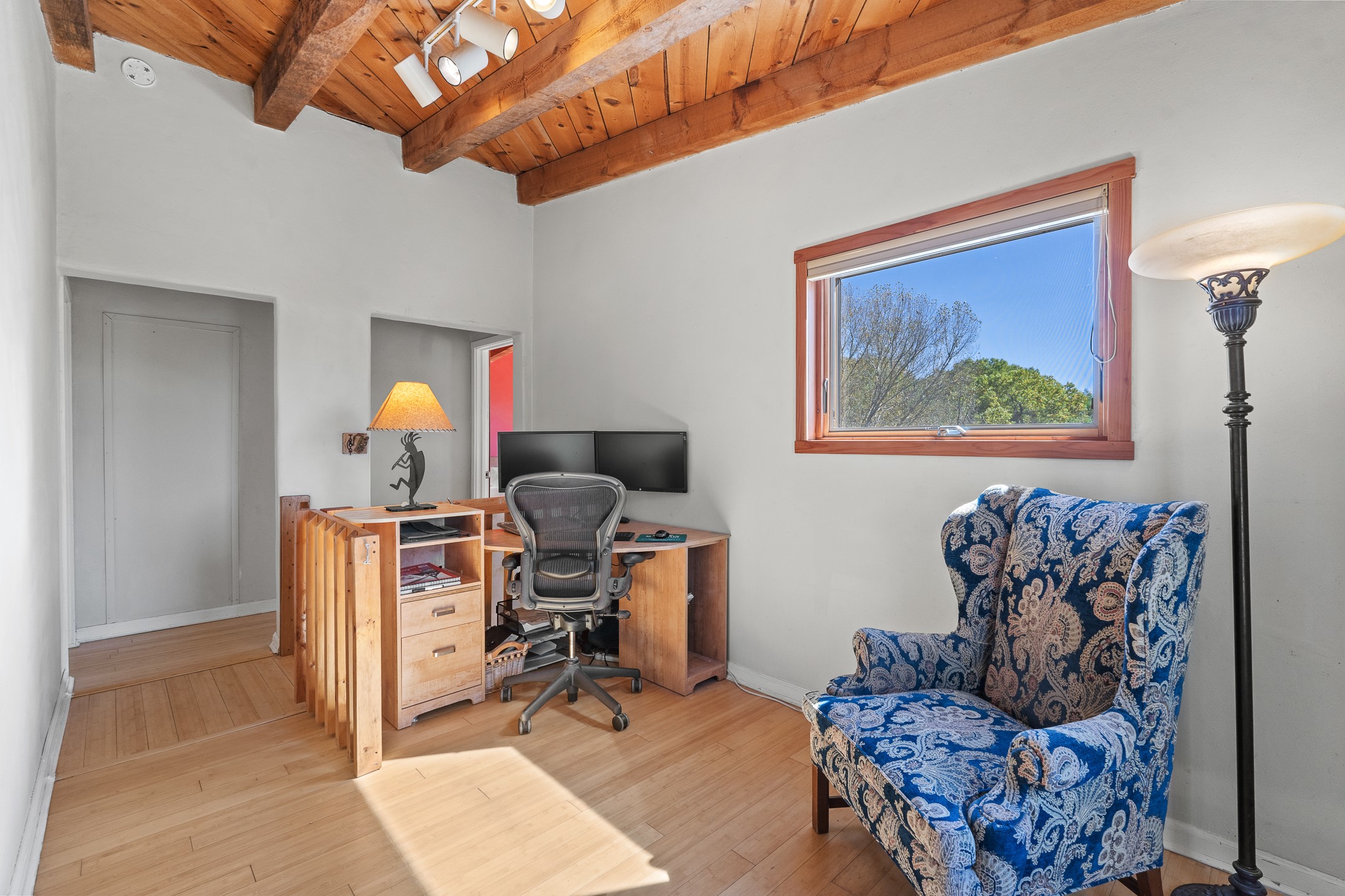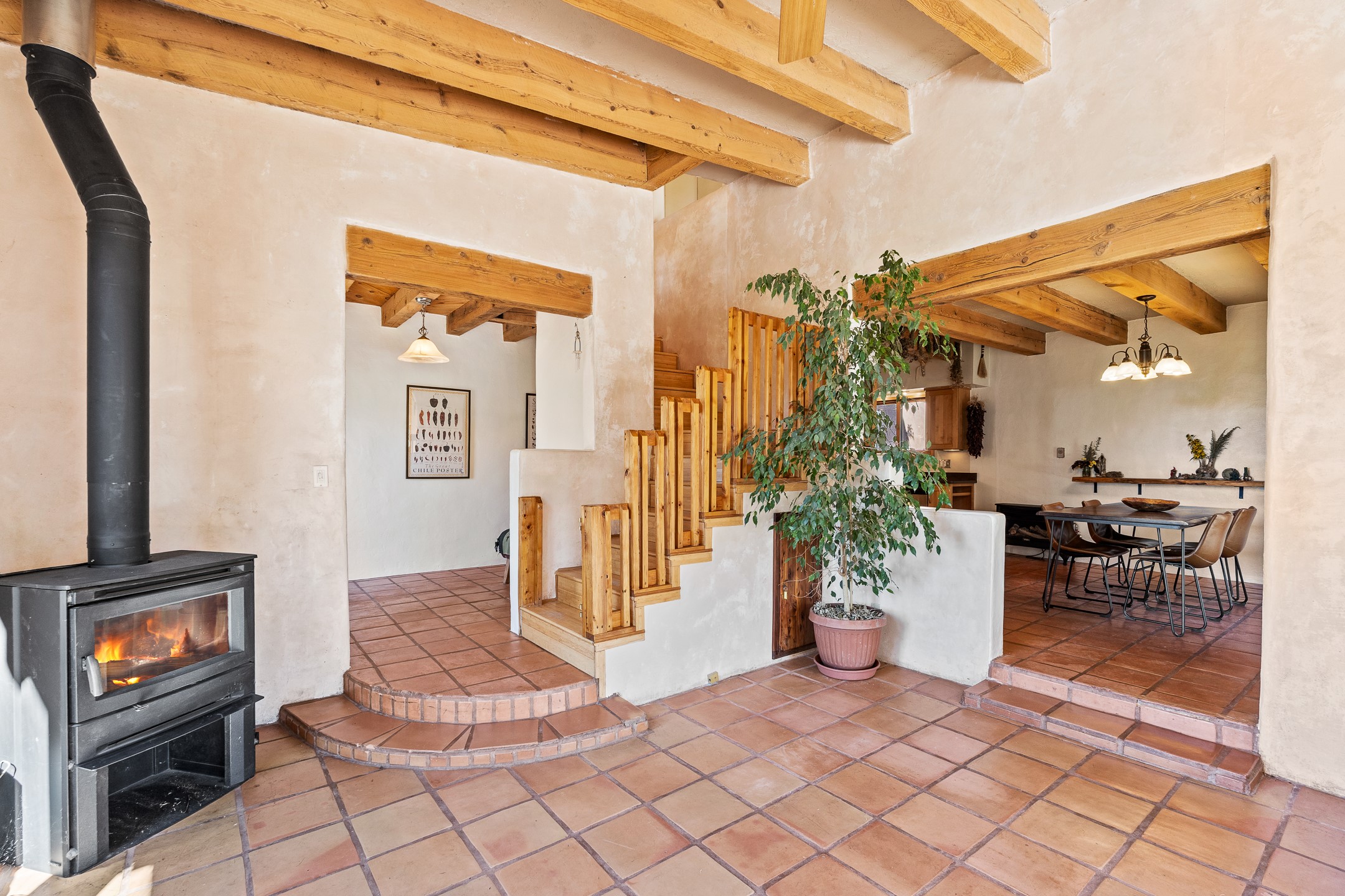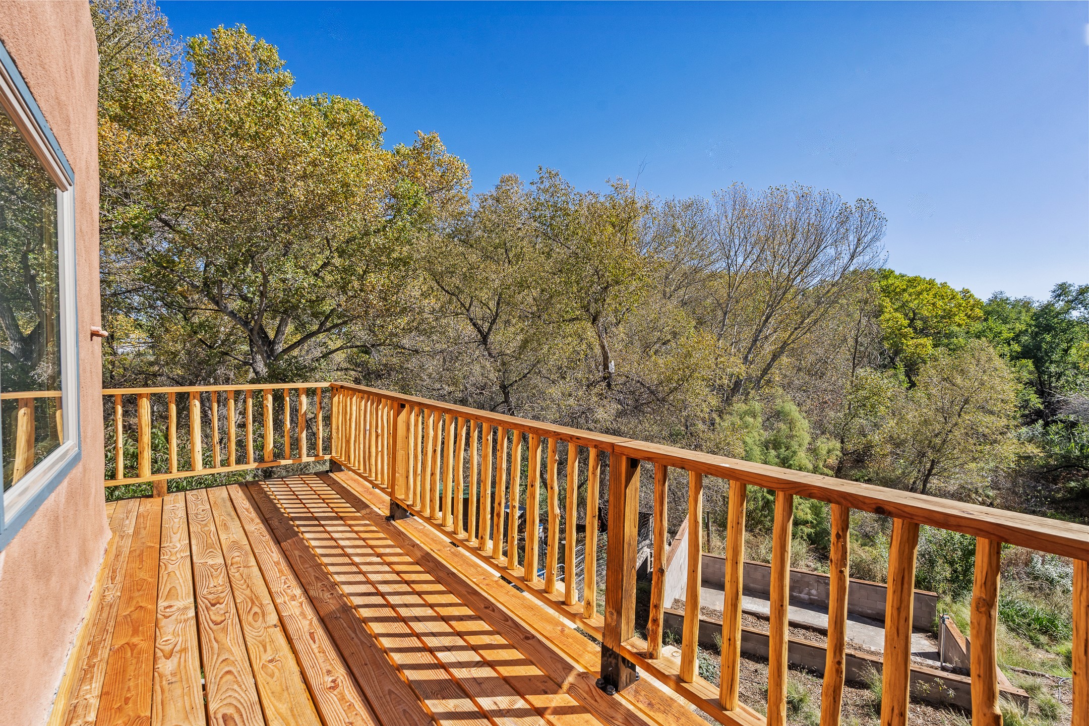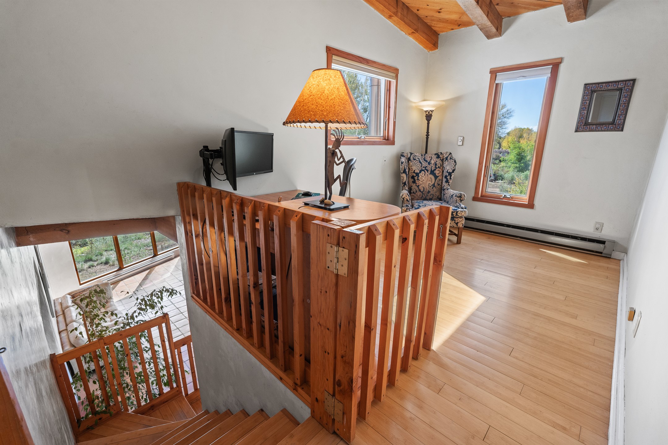 High desert permaculture oasis! 3-bedroom, 2-bath, 3066 square foot home, with large bonus room with it's own entry that could serve as studio, office, or another bedroom, nestled in towering cottonwoods on three lots totaling almost 18 acres along the lower Arroyo Hondo, with an intermittent spring and a year-round pond. This working permaculture farm produces nursery stock and landscaping plants, as well as generous amounts of food for family and friends, with a chicken coop, two 360 sq. ft. hoop houses and roughly 8/10ths of an acre in cultivation, including gardens and fruit trees. Set up for energy efficiency, with owned solar panels, a greenhouse attached to the house for ample solar gain, rainwater catchment, the house provides year round comfort. Inside, the main living area features high beamed ceilings and plaster walls, a cozy high-efficiency wood stove, and Saltillo tile. The kitchen features stainless steel appliances, the bathrooms have been recently updated, and the primary suite opens to a second story deck to take it all in. Sellers have done substantial recent work to decks, stucco, windows and roof. All of this less than three miles from city limits and a quarter mile from Ojo Santa Fe.