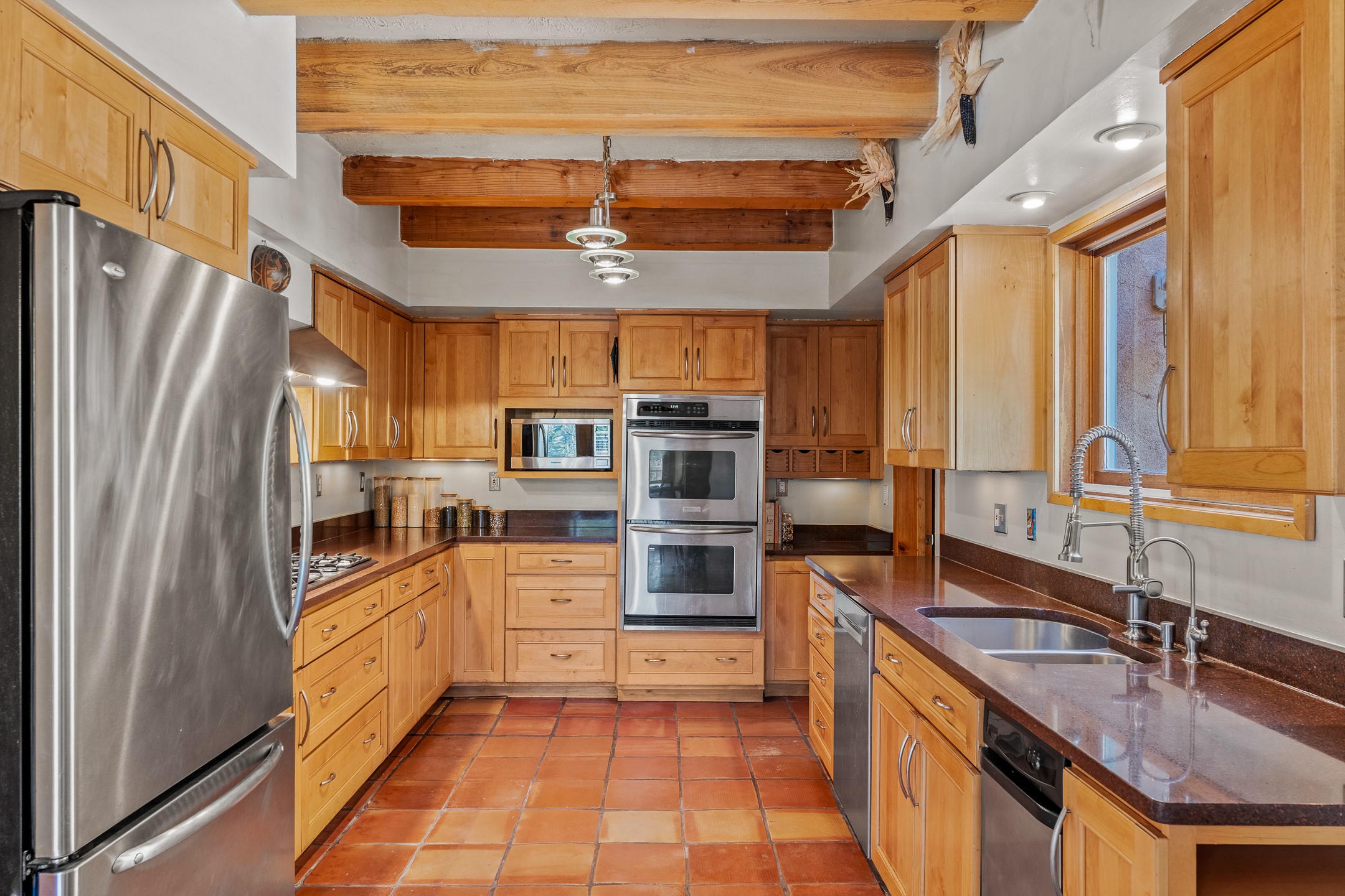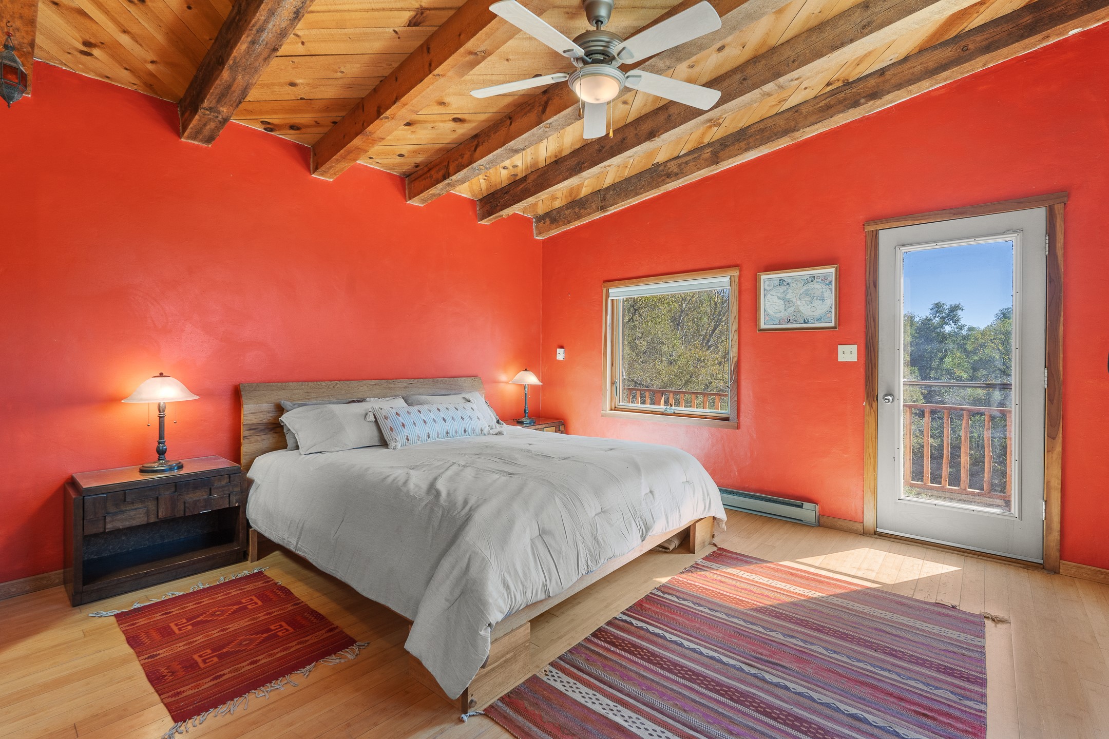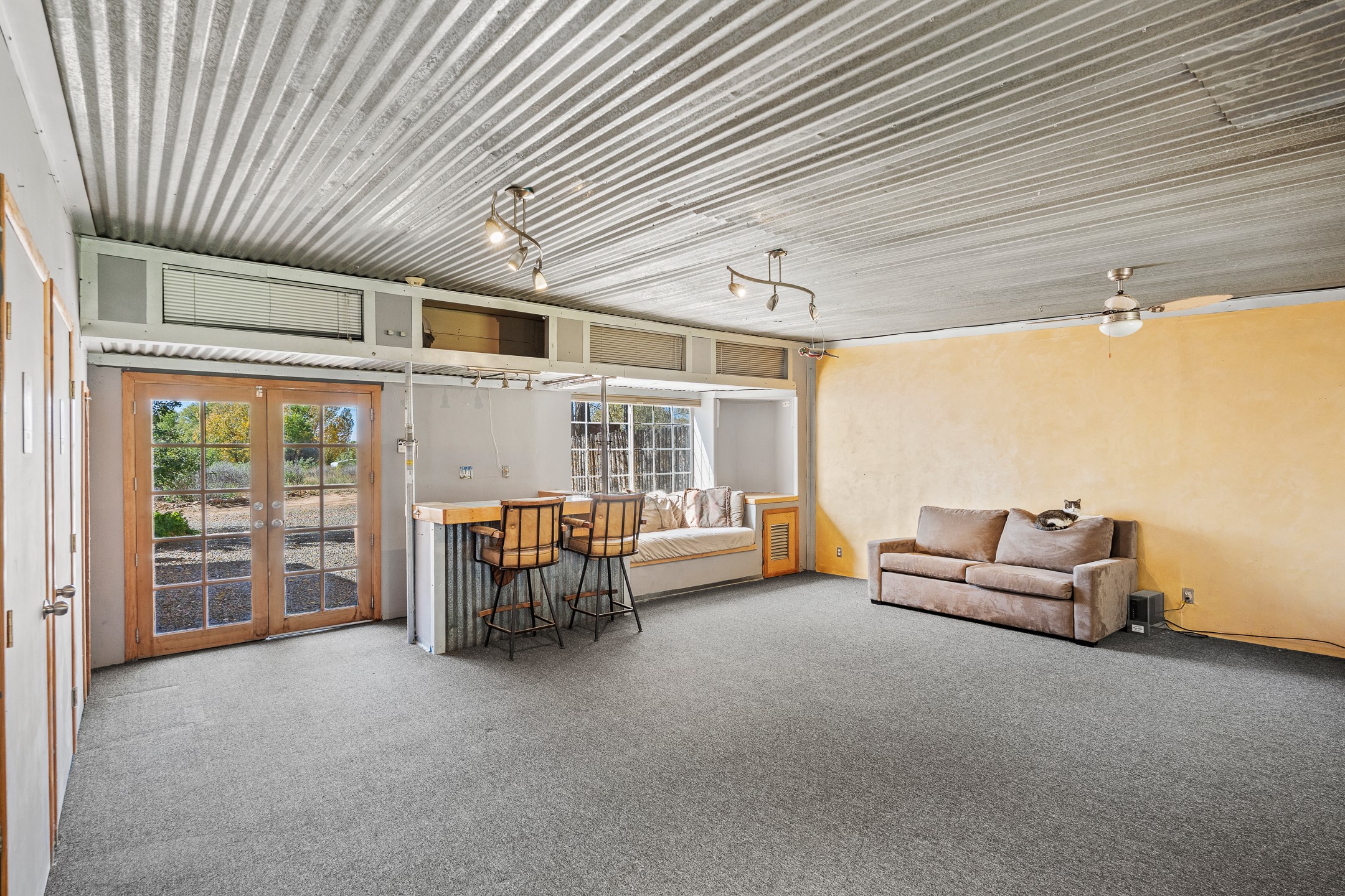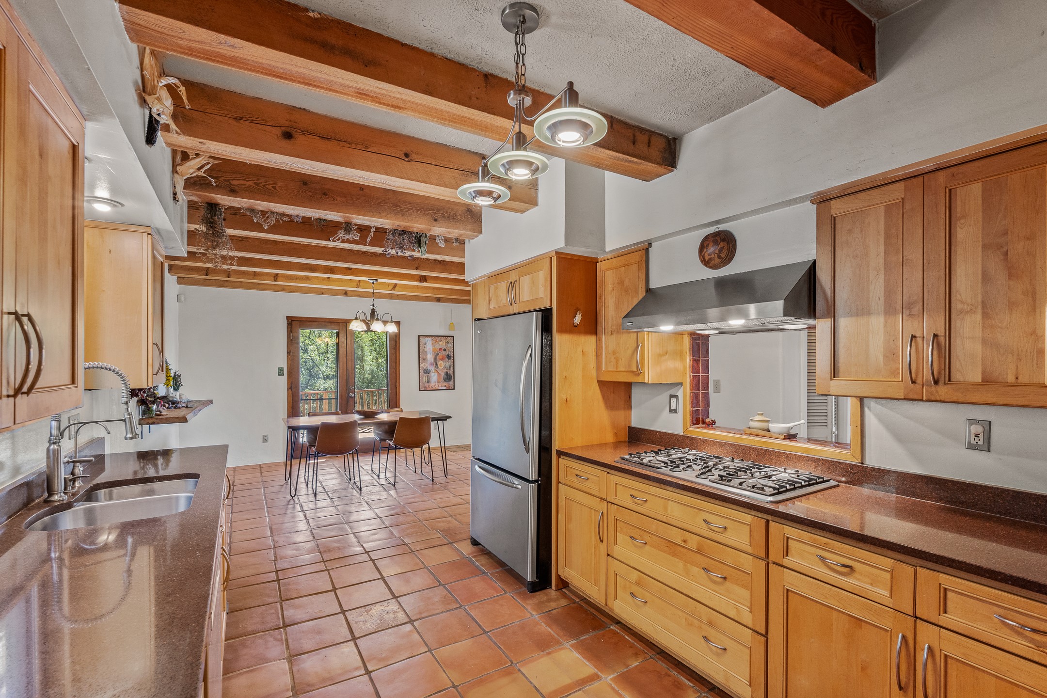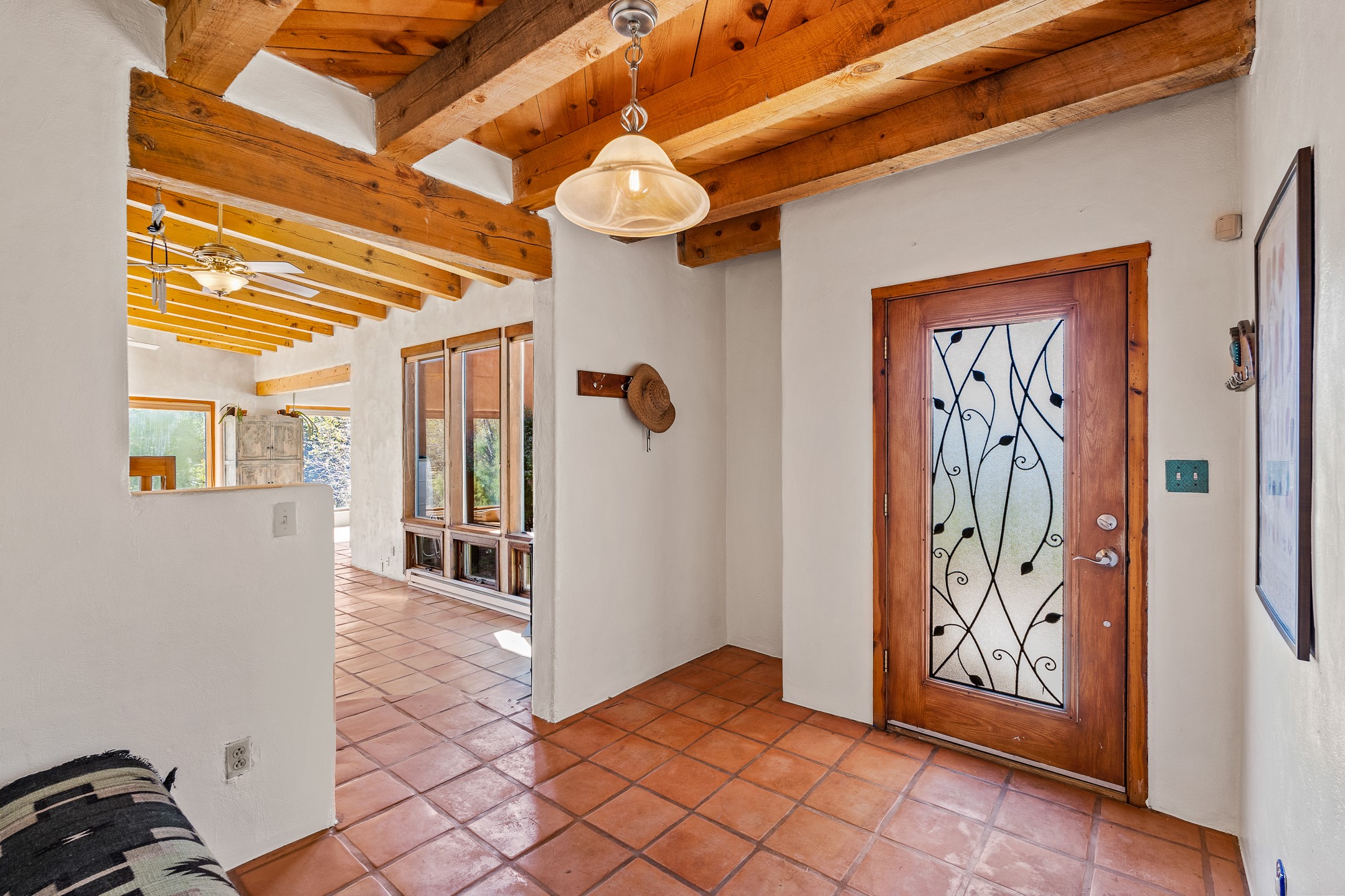 High desert permaculture oasis! 3-bedroom, 2-bath, 3066 square foot home, with large bonus room with it's own entry that could serve as studio, office, or another bedroom, nestled in towering cottonwoods on three lots totaling almost 18 acres along the lower Arroyo Hondo, with an intermittent spring and a year-round pond. This working permaculture farm produces nursery stock and landscaping plants, as well as generous amounts of food for family and friends, with a chicken coop, two 360 sq. ft. hoop houses and roughly 8/10ths of an acre in cultivation, including gardens and fruit trees. Set up for energy efficiency, with owned solar panels, a greenhouse attached to the house for ample solar gain, rainwater catchment, the house provides year round comfort. Inside, the main living area features high beamed ceilings and plaster walls, a cozy high-efficiency wood stove, and Saltillo tile. The kitchen features stainless steel appliances, the bathrooms have been recently updated, and the primary suite opens to a second story deck to take it all in. Sellers have done substantial recent work to decks, stucco, windows and roof. All of this less than three miles from city limits and a quarter mile from Ojo Santa Fe.
