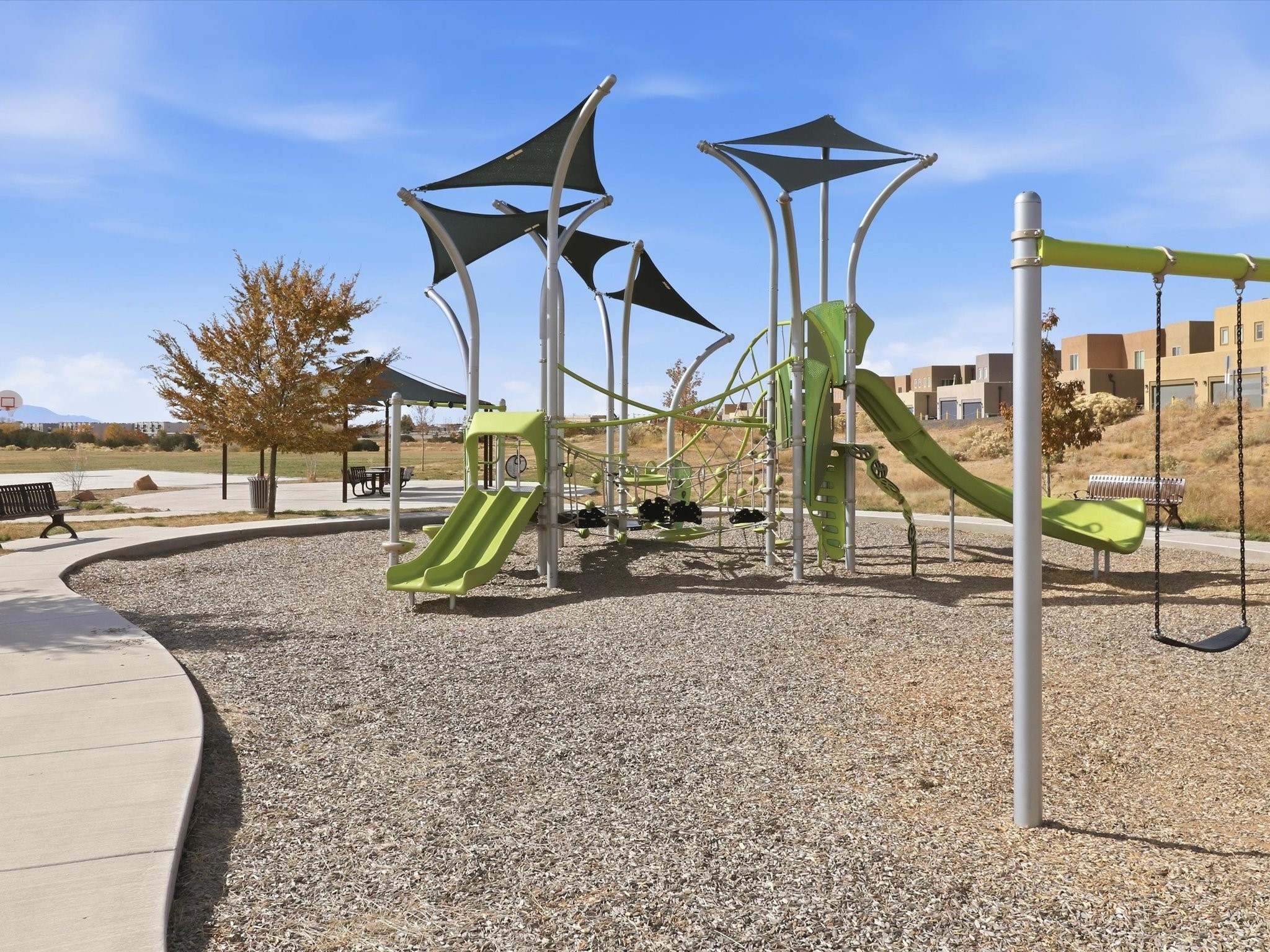Built in 2023, this stunning home is perfectly situated in the highly sought-after Villas de Las Soleras neighborhood. Backing to a spacious park, it offers access to a basketball court, playground, dog run, walking trail, and a cabana ideal for entertaining. Inside, the home has been thoughtfully upgraded with level 4 granite countertops in the kitchen and bathrooms, wood-look tile flooring in the living and dining areas, stainless steel appliances, a 5-burner gas cooktop, and a Silgranit kitchen sink. The attached two-car garage is equipped with EV charging (125-250V, Levels 1 & 2) for added convenience. The light-filled open floor plan seamlessly connects the kitchen, dining, and great room, with two sets of sliding doors leading to a covered patio--perfect for indoor-outdoor living. Featuring three bedrooms, two full bathrooms, and a convenient downstairs half bath, this home balances style and function. The primary suite upstairs boasts a sitting area with sliding doors opening to a private balcony overlooking the park and stunning mountain views--a serene spot to enjoy the sunrise.Centrally located, the home is close to hospitals, shopping centers, dining, and more. Exceptionally well-maintained, this beautiful home is ready for you to move in and enjoy today!