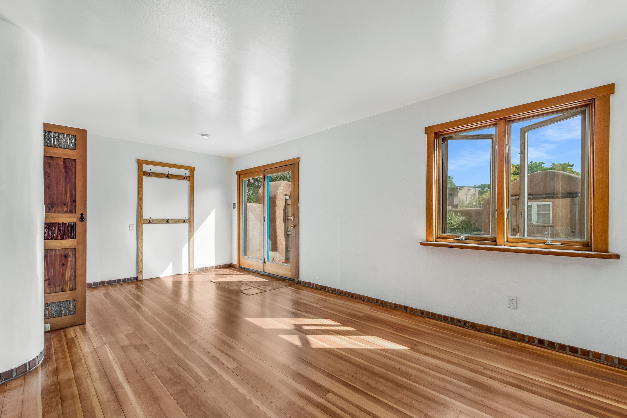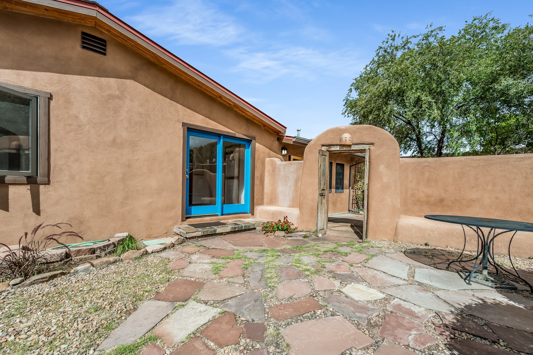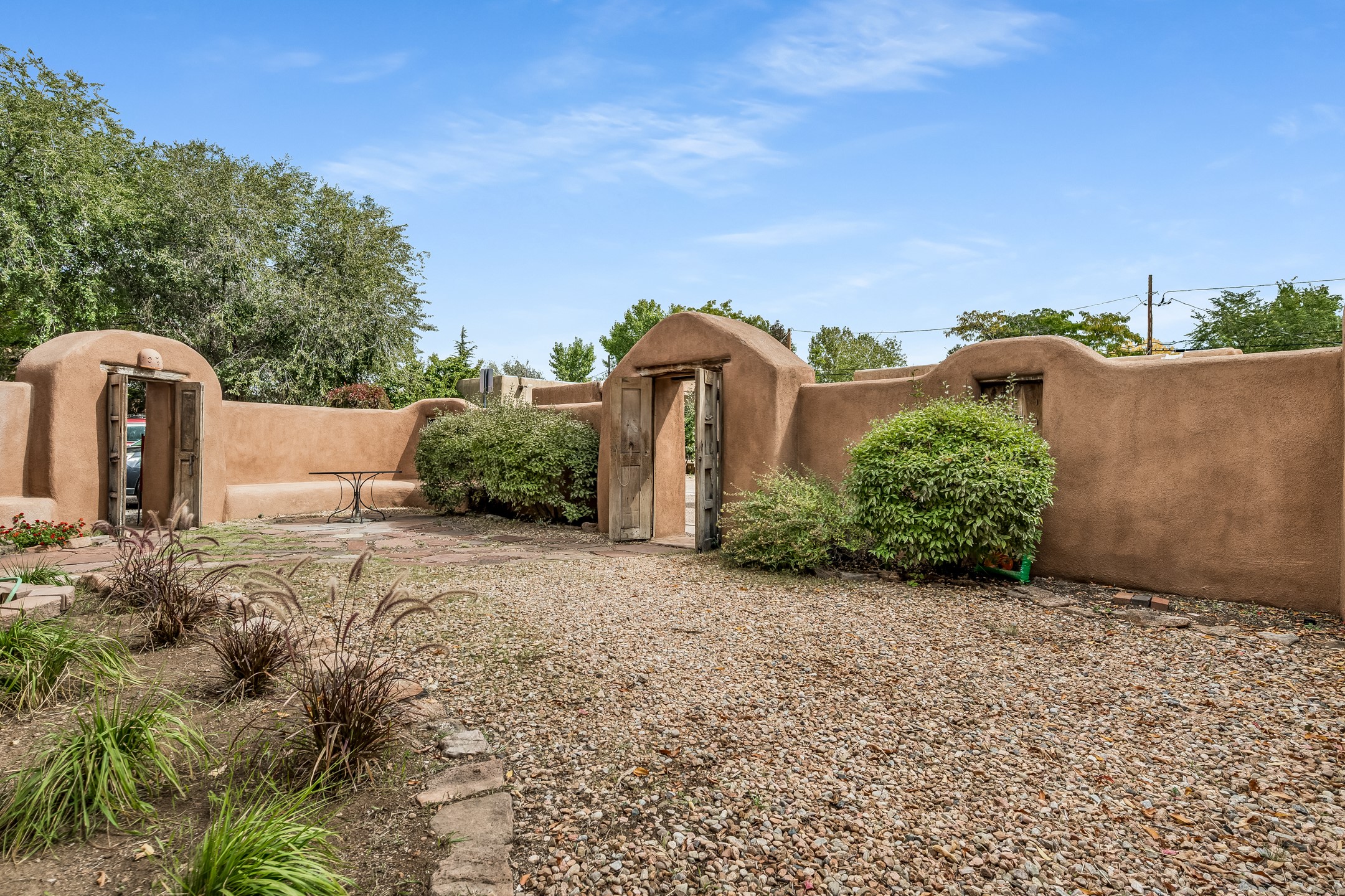 This quintessential Santa Fe style property offering Kiva fireplace, willow doors, Talavera and Saltillo tile, nichos, a walled courtyard, and off-street parking is tucked away in the much sought after Railyard Arts District. The setting is peaceful and quiet yet only a quick 5 minute jaunt to The Violet Crown, Farmer's Market, park, outdoor concerts, coffee shop, pubs, restaurants, and the vibrant vibe offered along Guadalupe Street! About a 15 minute walk to The Santa Fe Plaza where you will find work shopping, class dining, and galleries along with stellar museums. Walking and cycling trails are minutes away making this the perfect urban home. One can even hop on the train for a ride to Albuquerque! Opportunities Abound for this property which features a home with attached guest house. You can live in one unit and rent the other or rent them both! There is even room to add a casita! Easy access to St. Francis Drive is a plus for those who commute to Los Alamos! Both units offer office space for those who work from home. A Must See!