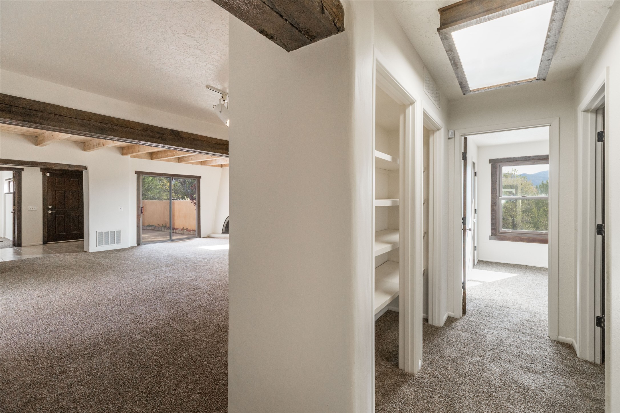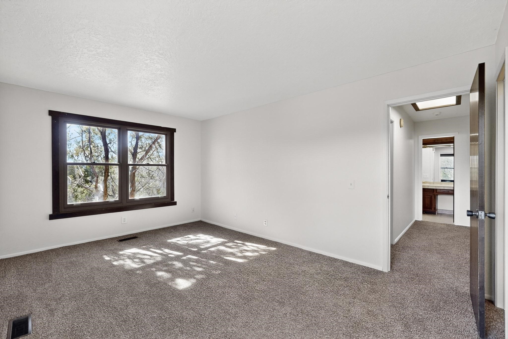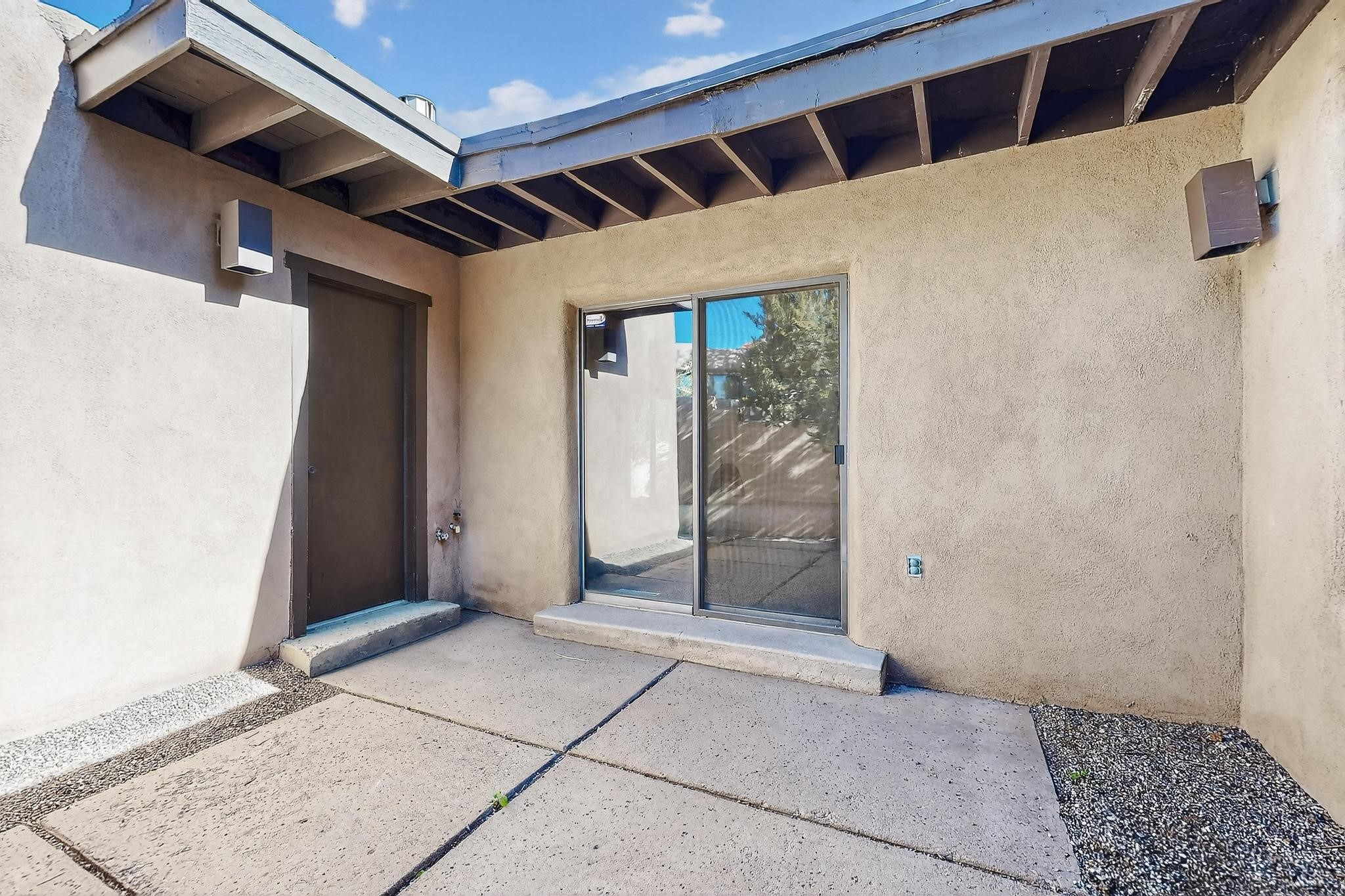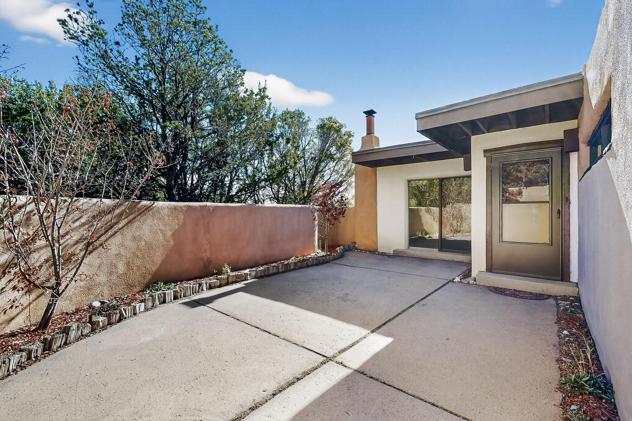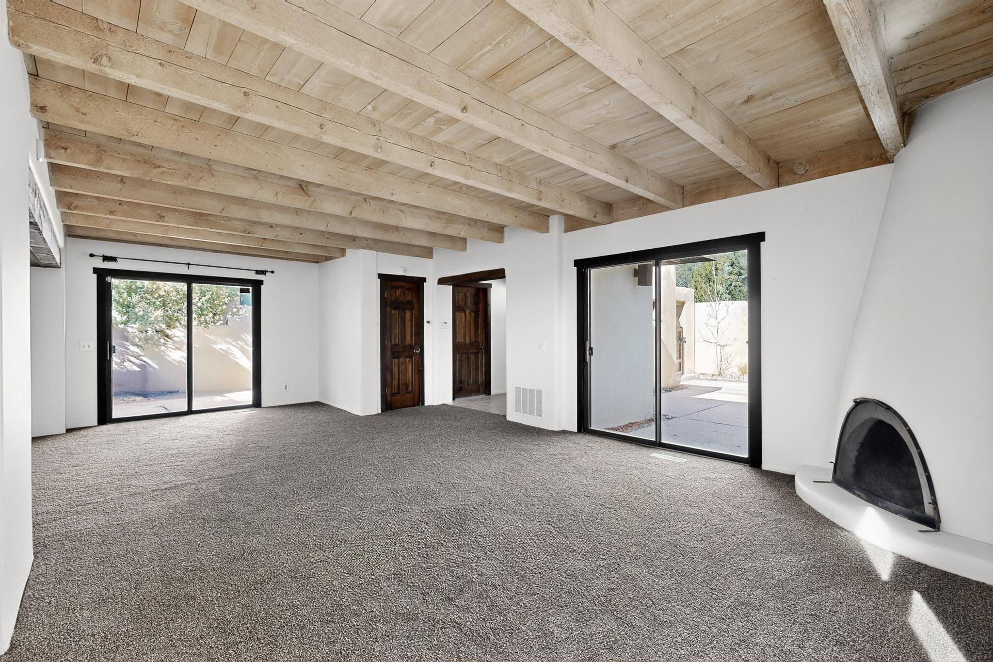 You are just going to love this beautiful free standing single level three bedroom Northside condo just a quick five minute drive to the historic Santa Fe Plaza! Beamed ceilings, wood burning kiva fireplace, two full baths, two private courtyards, a single car garage, refrigerated air conditioning, brand new carpet and mountain views!