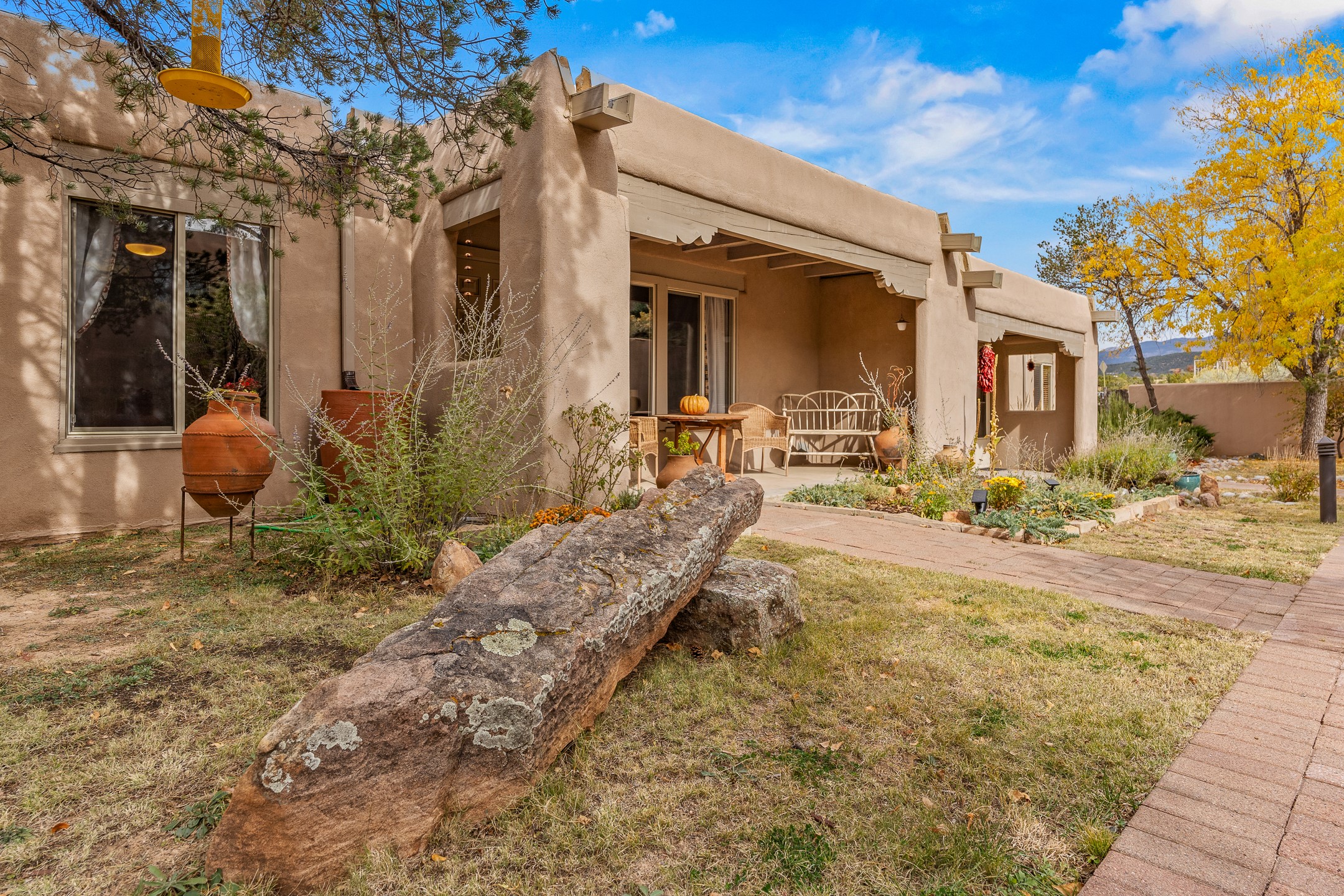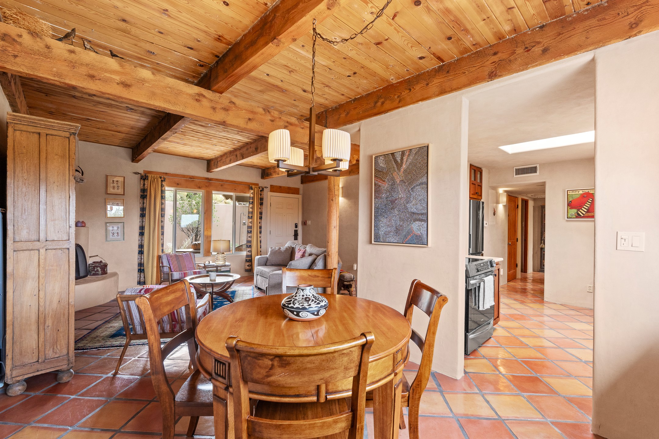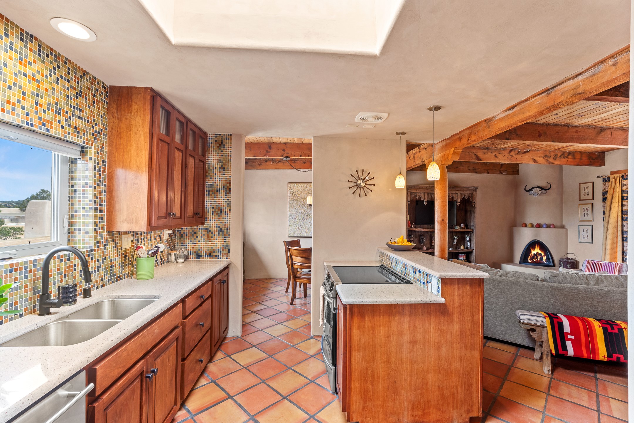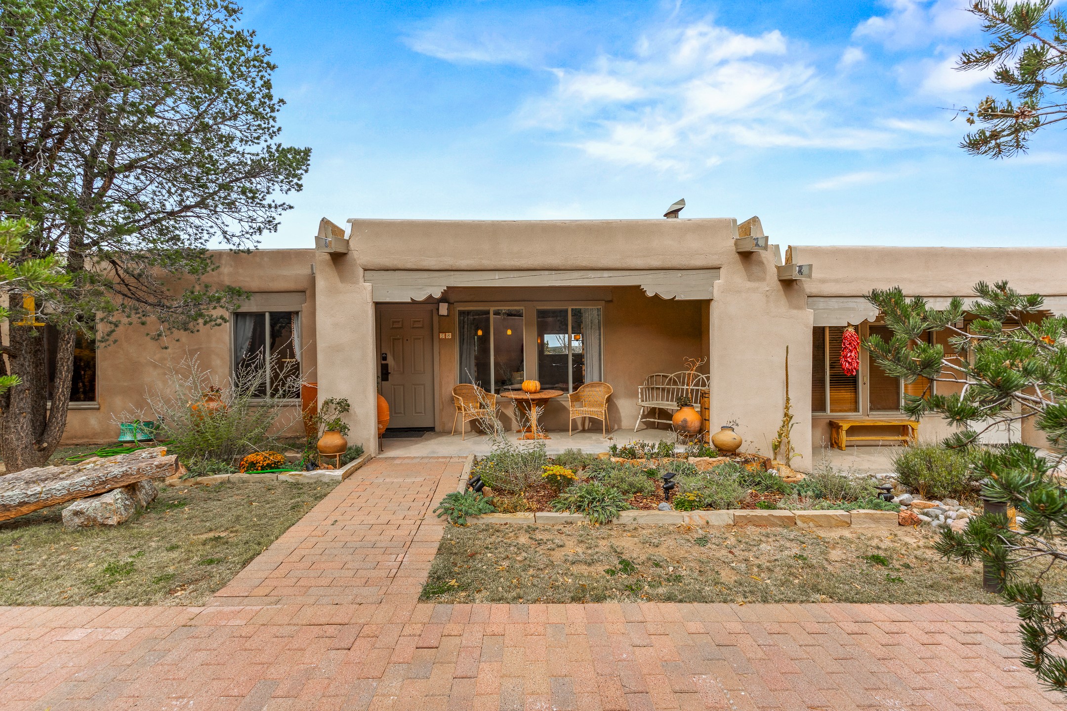This charming 2 bedroom, 2 bathroom single-level condominium is ideally located just 6 blocks from the vibrant heart of downtown Santa Fe and only 1 block from the scenic road to Ski Santa Fe, with access to numerous hiking and biking trails. Nestled within the coveted Fort Marcy Compound, this beautifully updated home offers a quiet setting with minimal passersby. The HOA does not place restrictions on rentals, making this a perfect candidate for a short-term rental property, a vacation home for when you want to visit Santa Fe, or a full-time residence as it has been for the current owners! The spacious interior features Saltillo tiles laid on an angle, American Clay walls, and exposed natural beams. Enjoy cozy evenings by the Kiva fireplace and the convenience of an office space that opens into the living area for better flow. The modern kitchen boasts a new induction stove, a low-profile fridge, custom cabinetry with a bar, and full pantry storage. With two windows showcasing stunning sunset views and a beautifully landscaped garden area, this condo is the perfect blend of comfort and style. Don't miss your chance to experience the best of Santa Fe living! The on-site management company operates a vountary STR propram. Ask listing broker for details. Amenities include an indoor swimming pool and hot tub, a popular attraction for vacationers in the summer and winter months! Call for your showing today, before it's gone!