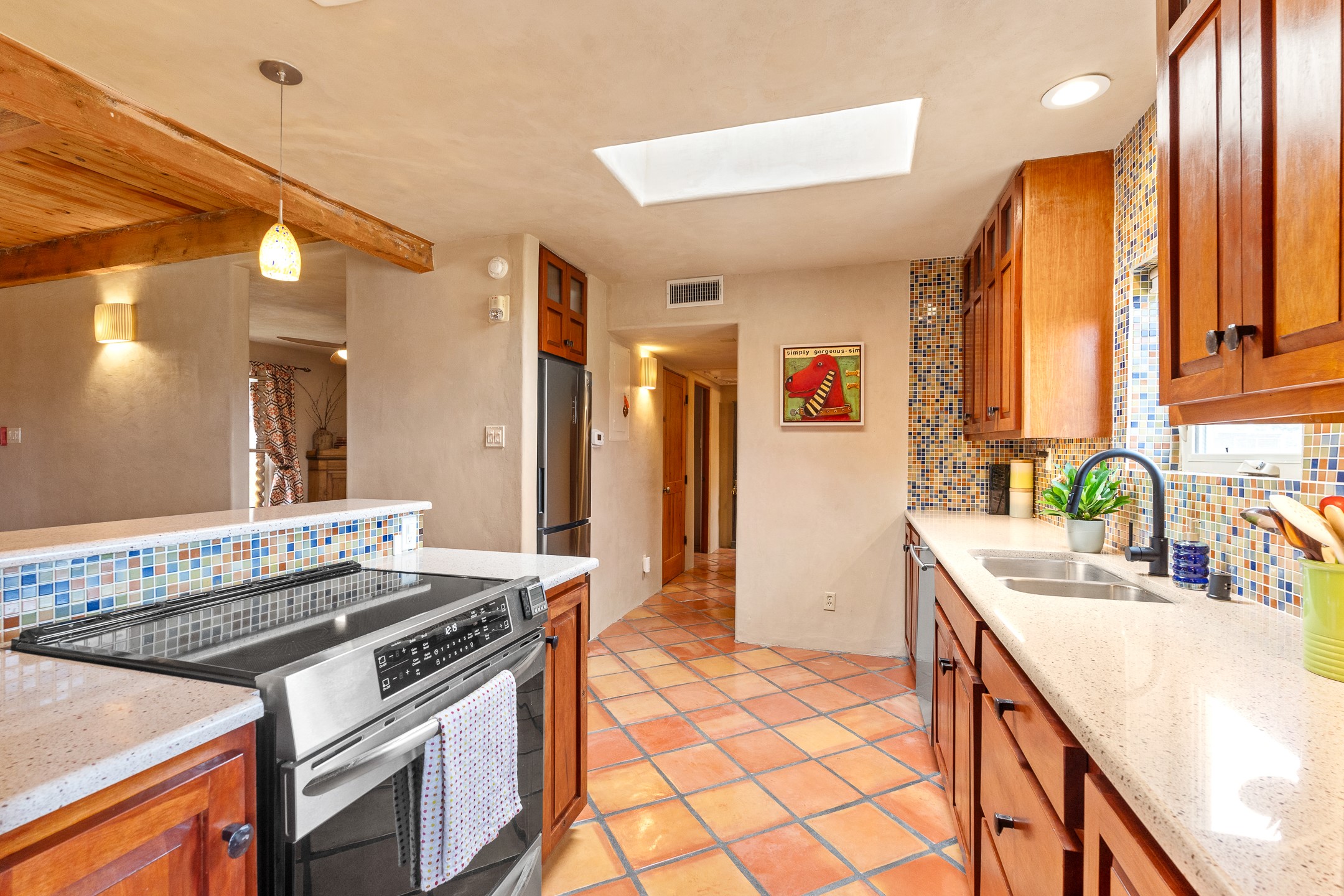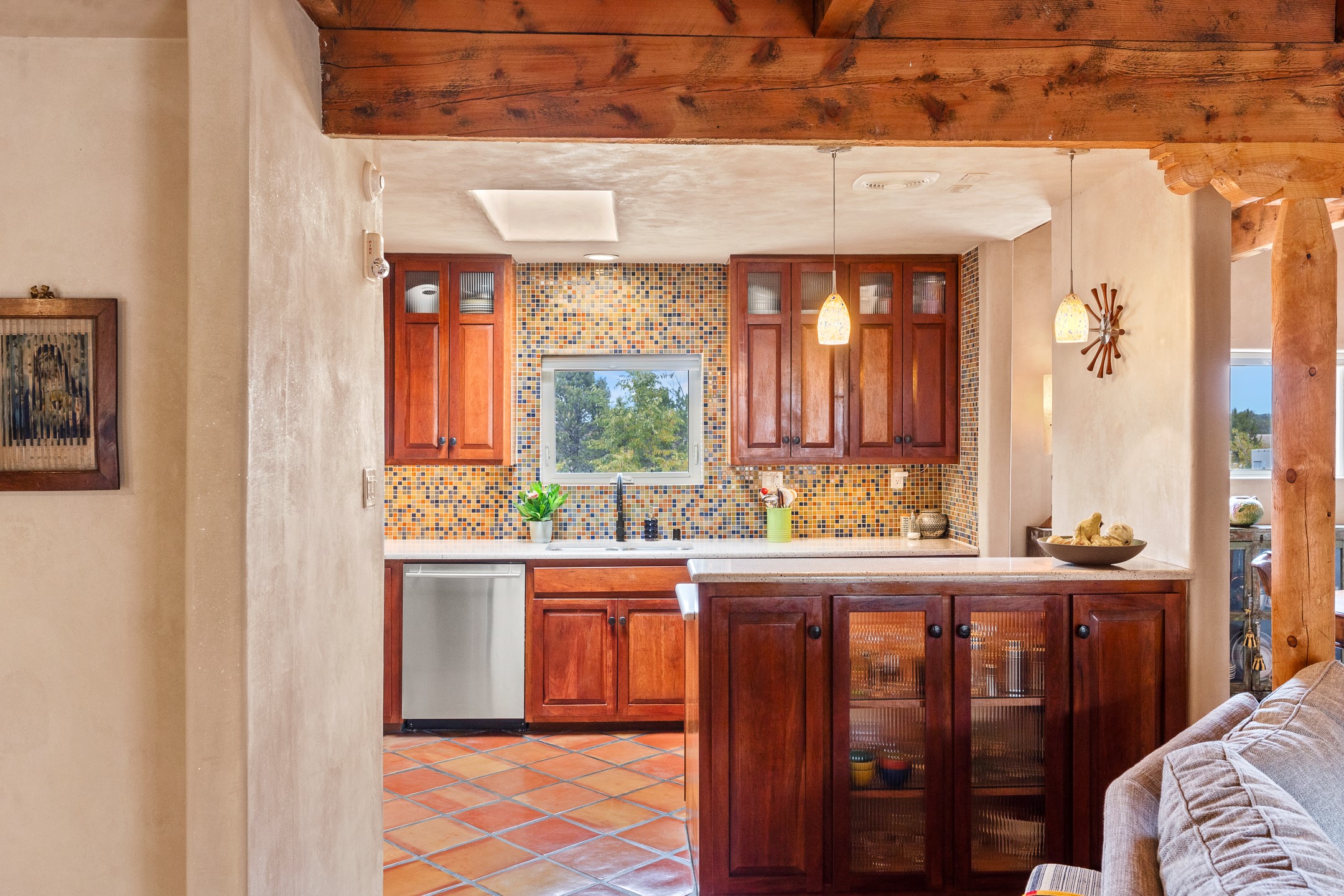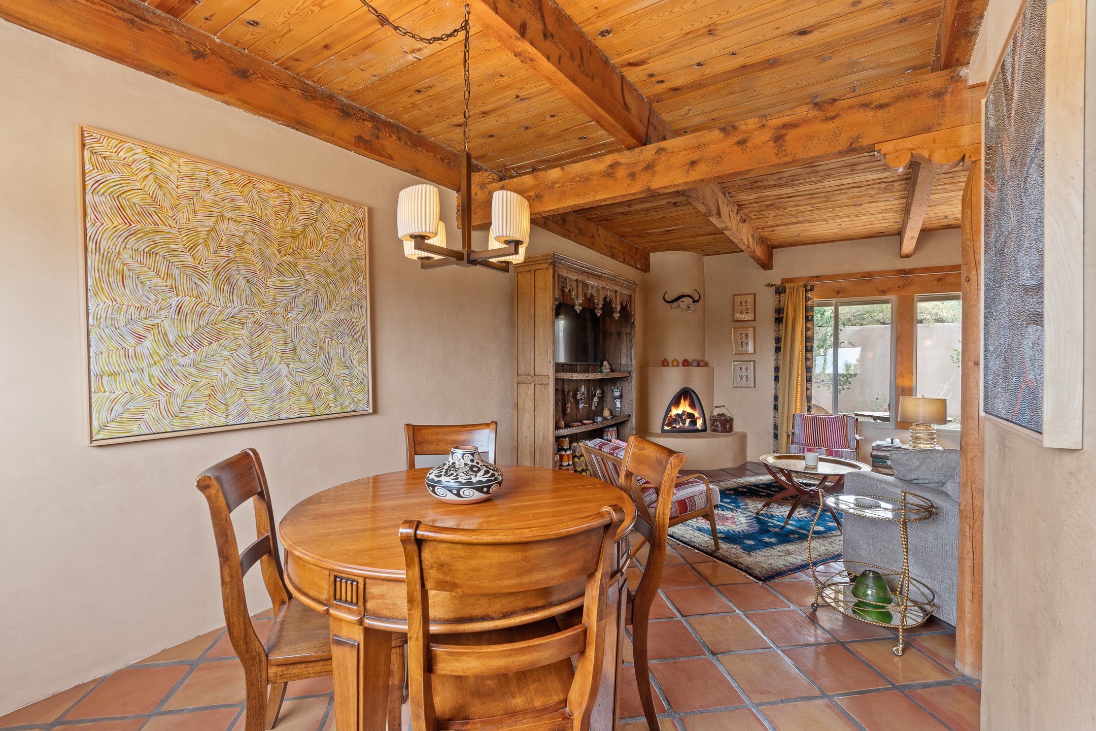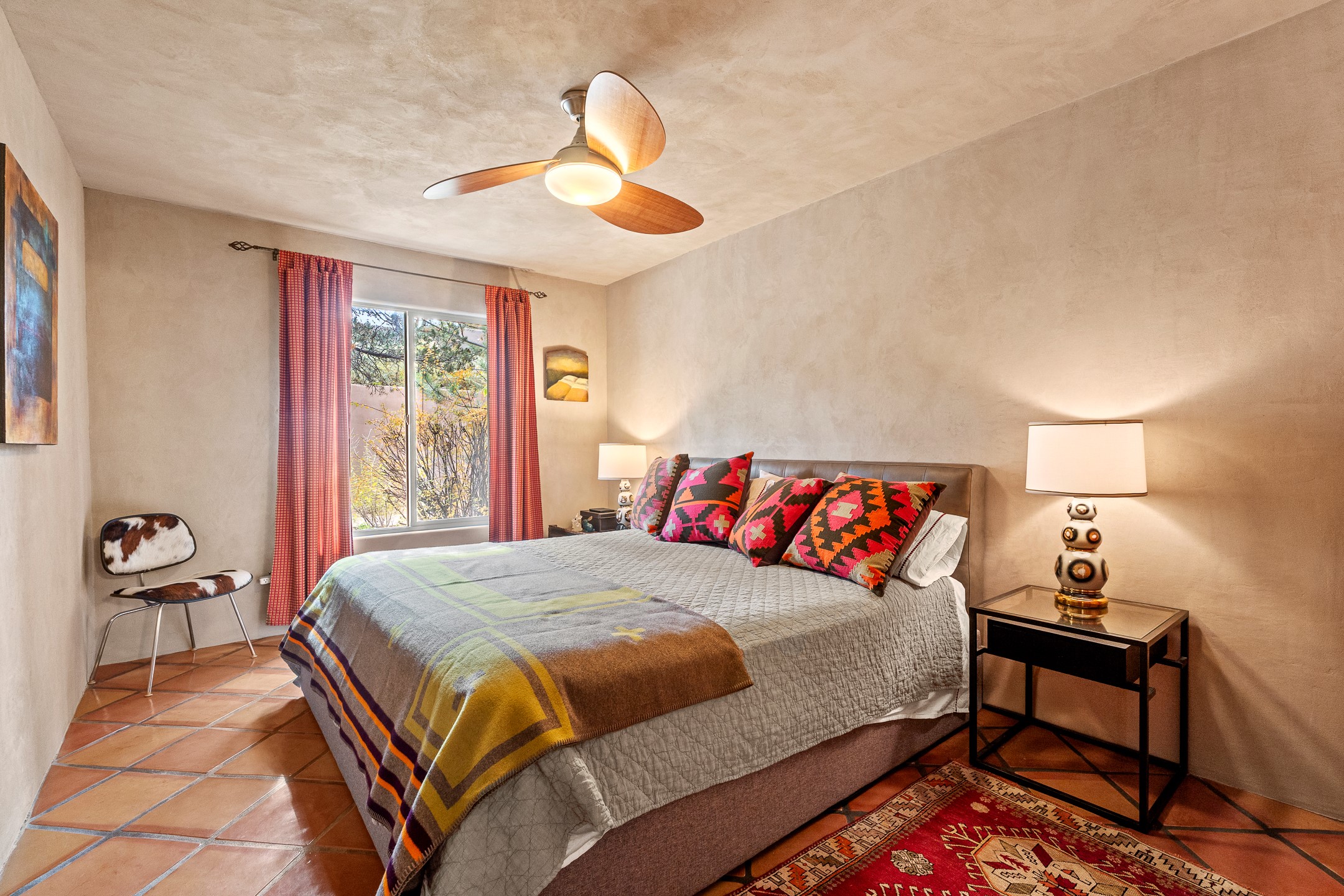 This charming 2 bedroom, 2 bathroom single-level condominium is ideally located just 6 blocks from the vibrant heart of downtown Santa Fe and only 1 block from the scenic road to Ski Santa Fe, with access to numerous hiking and biking trails. Nestled within the coveted Fort Marcy Compound, this beautifully updated home offers a quiet setting with minimal passersby. The HOA does not place restrictions on rentals, making this a perfect candidate for a short-term rental property, a vacation home for when you want to visit Santa Fe, or a full-time residence as it has been for the current owners! The spacious interior features Saltillo tiles laid on an angle, American Clay walls, and exposed natural beams. Enjoy cozy evenings by the Kiva fireplace and the convenience of an office space that opens into the living area for better flow. The modern kitchen boasts a new induction stove, a low-profile fridge, custom cabinetry with a bar, and full pantry storage. With two windows showcasing stunning sunset views and a beautifully landscaped garden area, this condo is the perfect blend of comfort and style. Don't miss your chance to experience the best of Santa Fe living! The on-site management company operates a vountary STR propram. Ask listing broker for details. Amenities include an indoor swimming pool and hot tub, a popular attraction for vacationers in the summer and winter months! Call for your showing today, before it's gone!