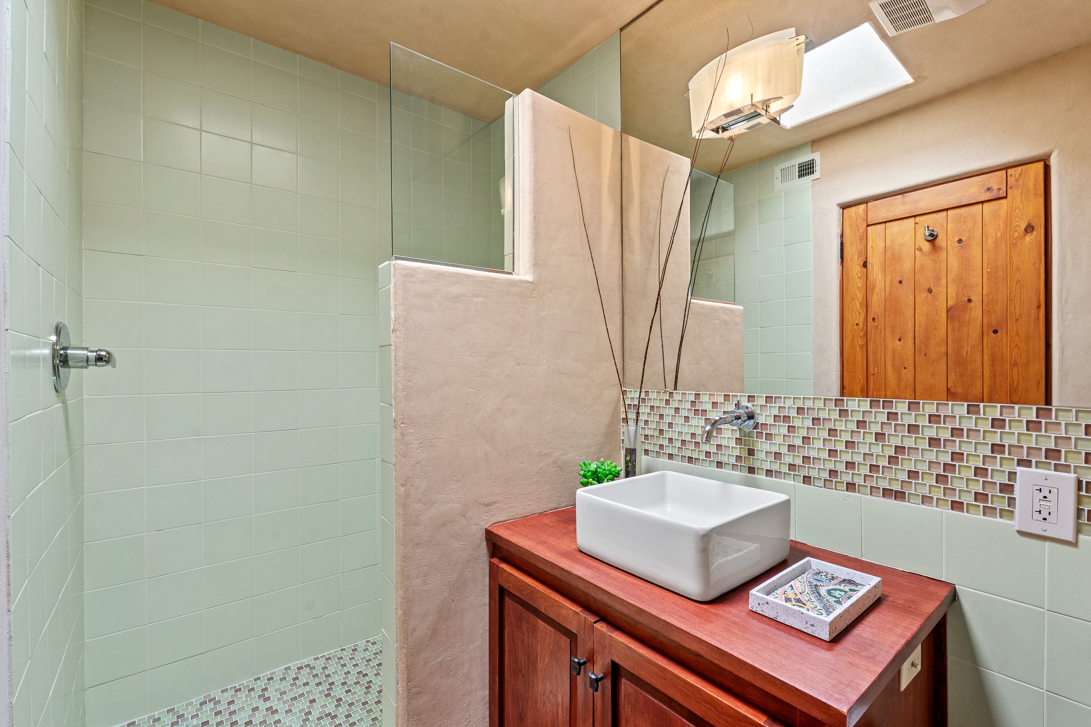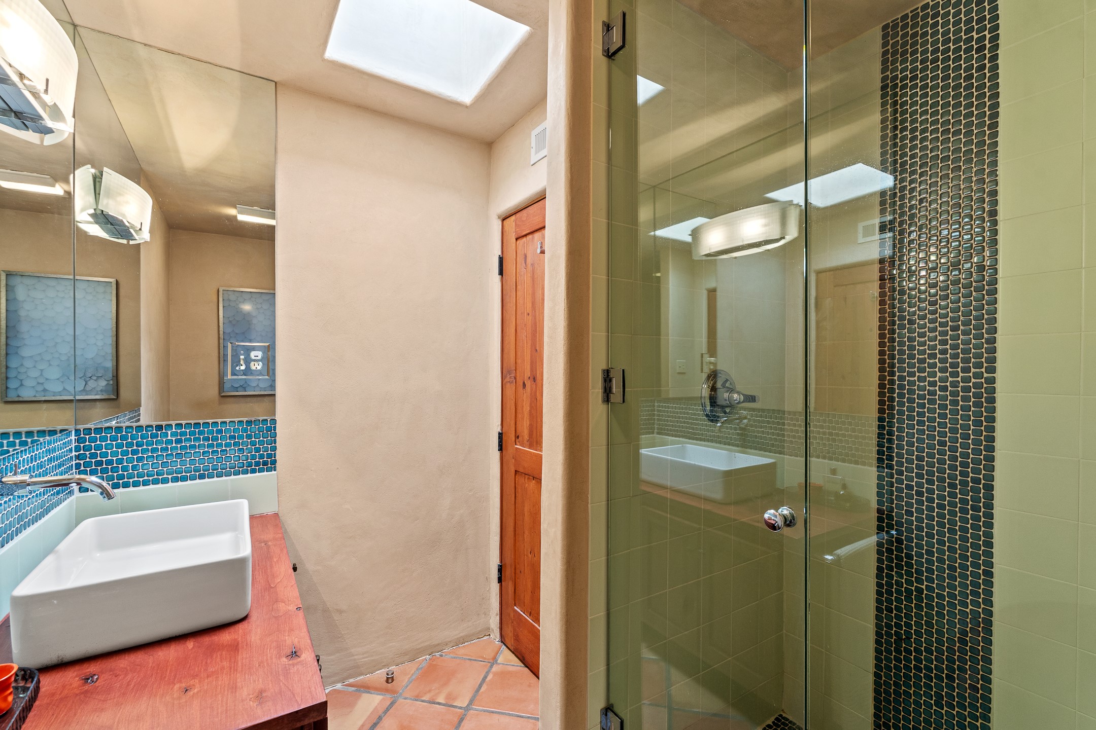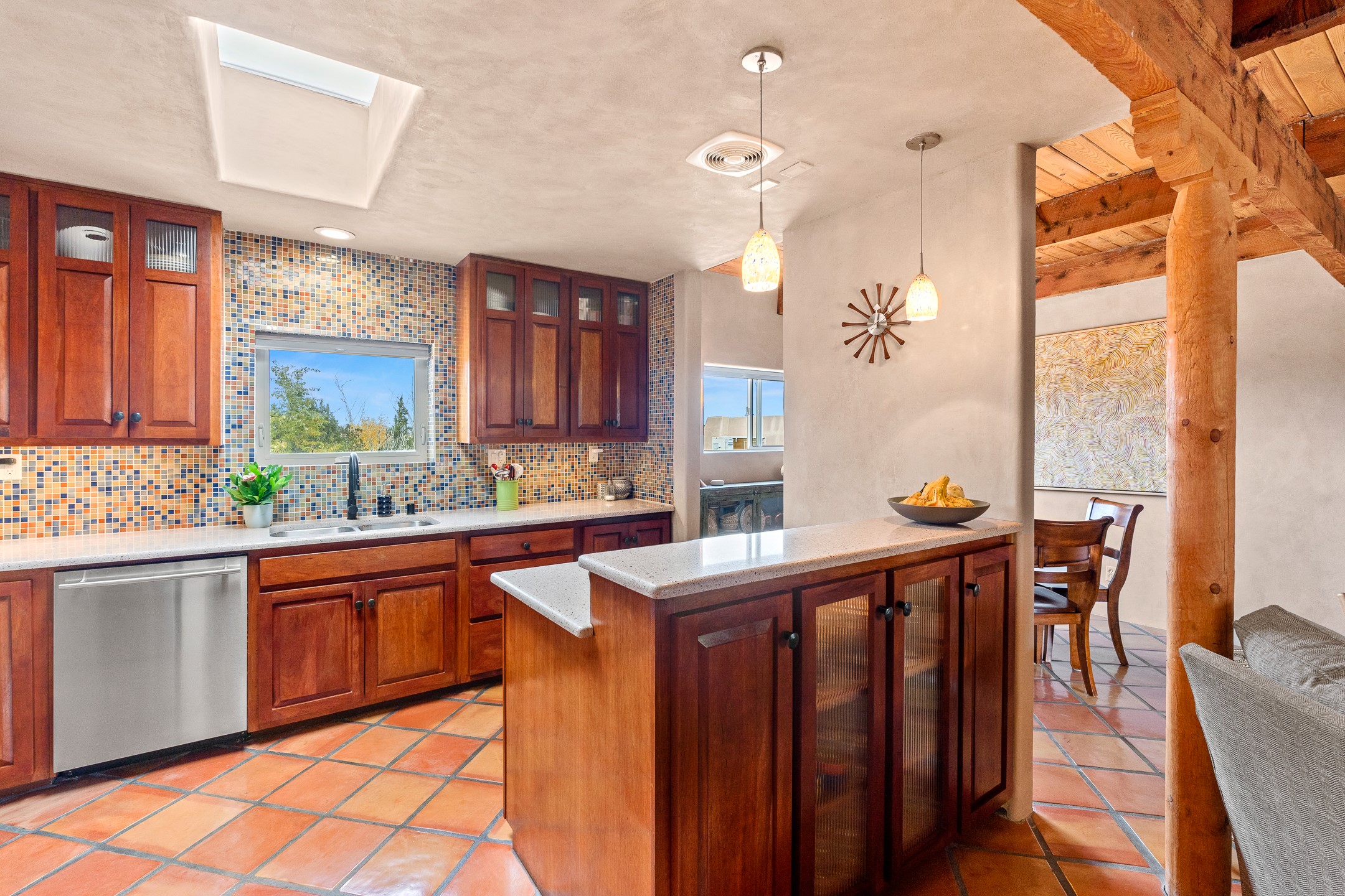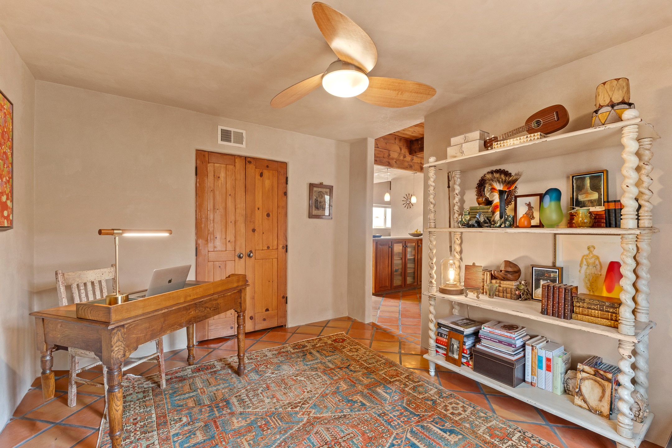 This charming 2 bedroom, 2 bathroom single-level condominium is ideally located just 6 blocks from the vibrant heart of downtown Santa Fe and only 1 block from the scenic road to Ski Santa Fe, with access to numerous hiking and biking trails. Nestled within the coveted Fort Marcy Compound, this beautifully updated home offers a quiet setting with minimal passersby. The HOA does not place restrictions on rentals, making this a perfect candidate for a short-term rental property, a vacation home for when you want to visit Santa Fe, or a full-time residence as it has been for the current owners! The spacious interior features Saltillo tiles laid on an angle, American Clay walls, and exposed natural beams. Enjoy cozy evenings by the Kiva fireplace and the convenience of an office space that opens into the living area for better flow. The modern kitchen boasts a new induction stove, a low-profile fridge, custom cabinetry with a bar, and full pantry storage. With two windows showcasing stunning sunset views and a beautifully landscaped garden area, this condo is the perfect blend of comfort and style. Don't miss your chance to experience the best of Santa Fe living! The on-site management company operates a vountary STR propram. Ask listing broker for details. Amenities include an indoor swimming pool and hot tub, a popular attraction for vacationers in the summer and winter months! Call for your showing today, before it's gone!