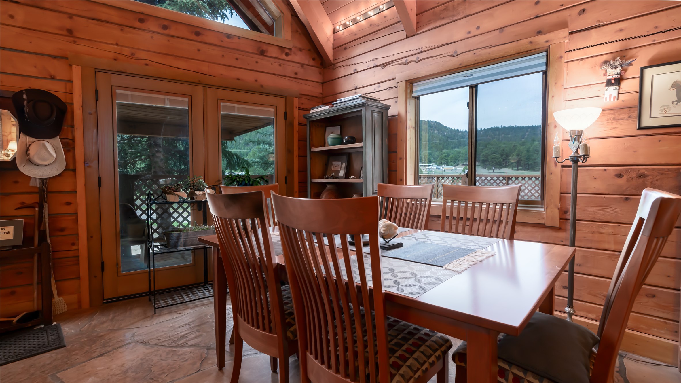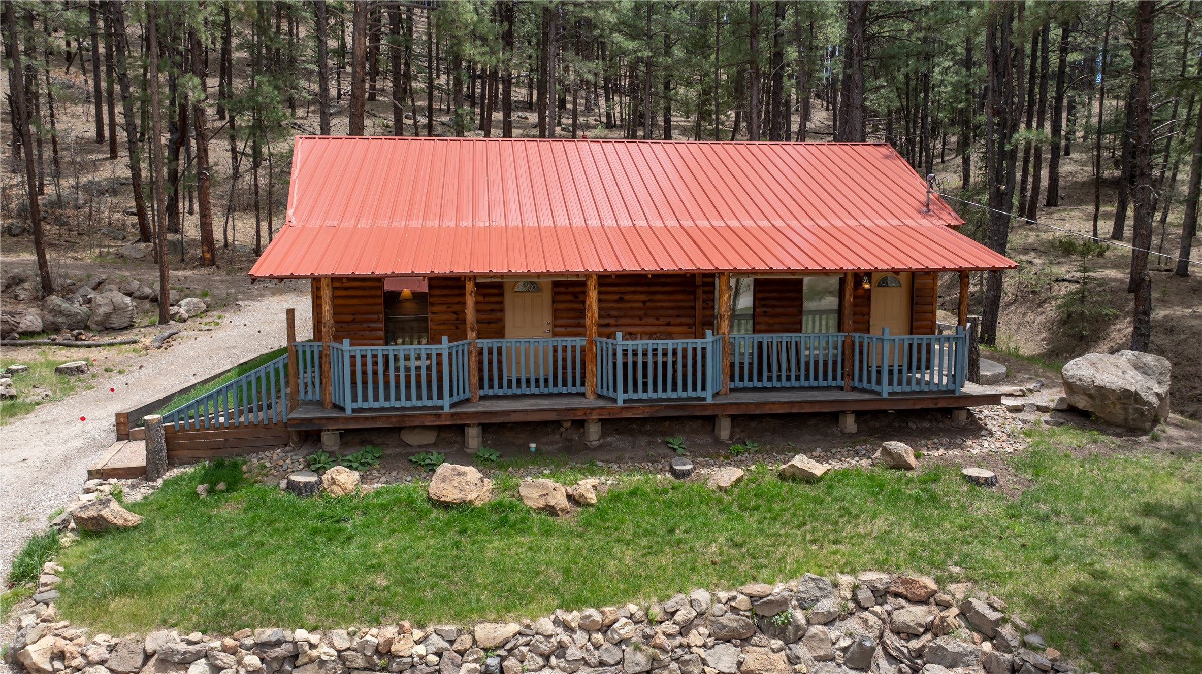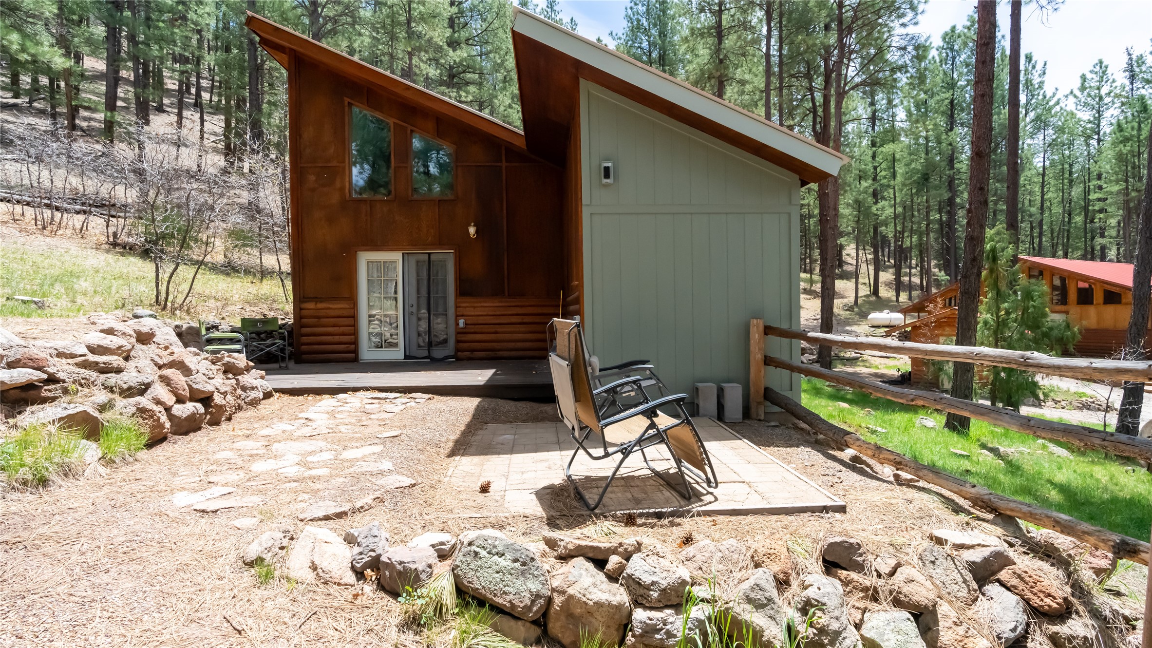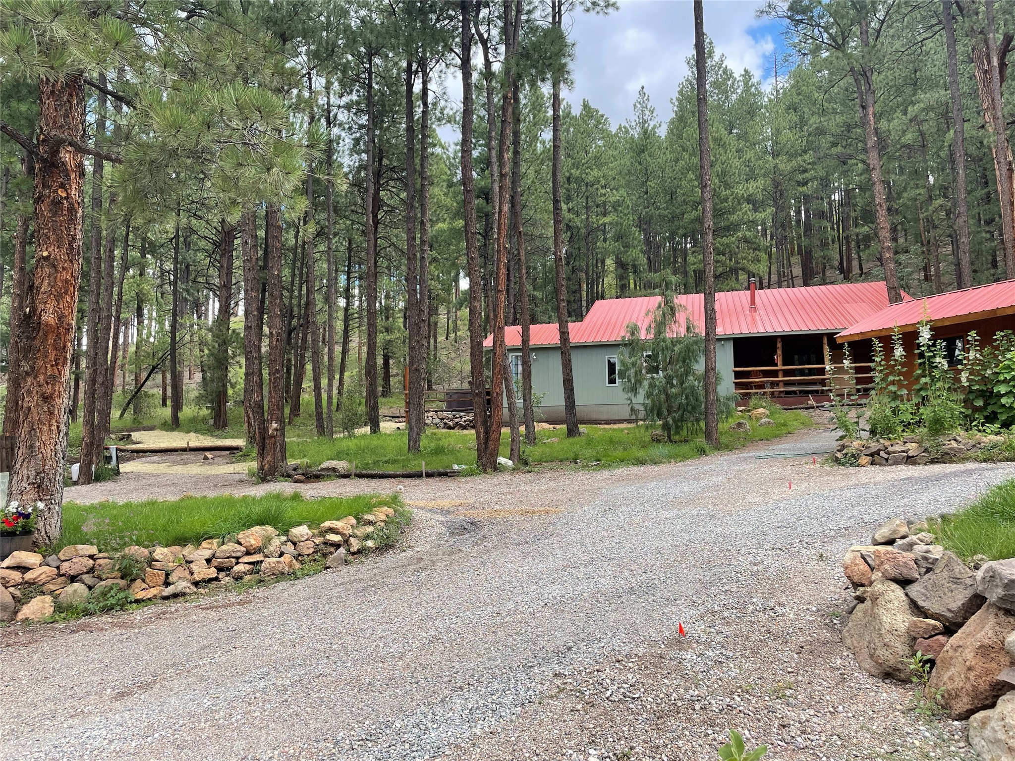 Situated on 3.08 acres encompassing two lots, this former Bed and Breakfast offers endless potential as a home or business venture. The main house has 1868 sq feet of lovely living space with an open-concept great room that showcases beautiful flagstone floors, natural log walls, knotty-pine ceilings and a wall of windows framing the breathtaking views of the Jemez Mountains. The two additional cabins provide potential business opportunities, studio workspaces or a family retreat. The 16X20 garage provides ample space for vehicles and storage. The property borders Santa Fe National Forest, where you can enjoy the Hot Springs, Valles Caldera, Bandelier, Hiking, Skiing and Mountain Biking. Only 45 minutes to Los Alamos, 1.5 hours to Albuquerque and 1.25 hours to Santa Fe.