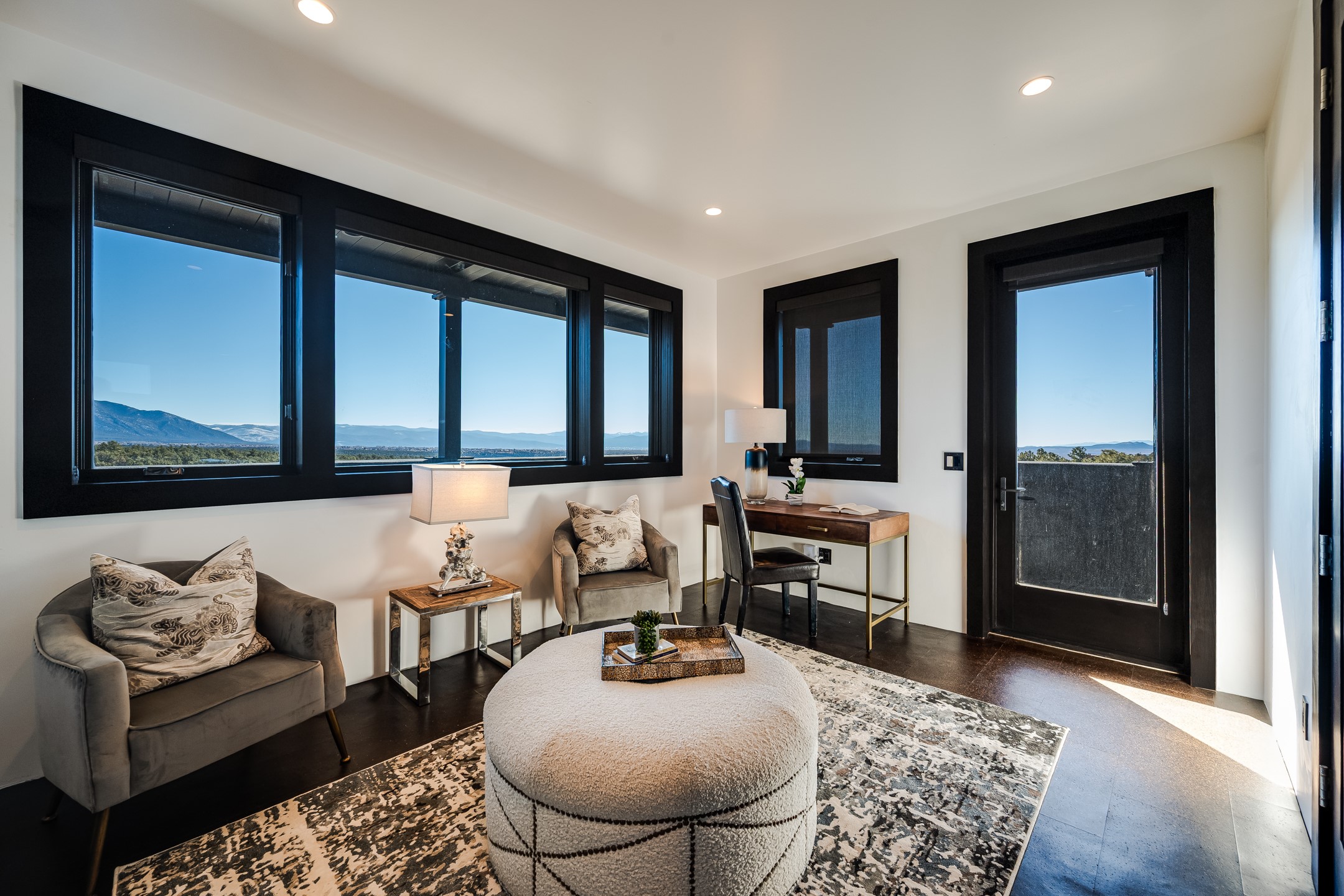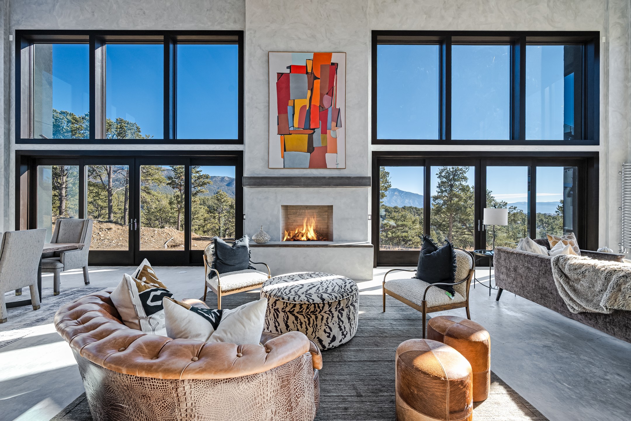 An exquisite home and true work of art, Raven's View is a rare and exceptional offering in Taos, New Mexico. Often described as unparalleled, incomparable, distinctive, and rare, this once-in-a-lifetime property delivers an extraordinary living experience immersed in nature. Nestled on 10 private acres, the residence offers approximately 7,000 square feet, featuring 4 bedrooms and 3.5 baths, along with breathtaking 360-degree million-dollar views of the El Salto Mountains, Pueblo Peak, and the Truchas Peaks. The setting provides a remarkable sense of peace, comfort, and tranquility, where one feels both protected and elevated above the world. The home was built by highly regarded Taos builder Don Pennington, known locally for his sculptural, custom homes and exceptional craftsmanship. The design was created by owner Mala Mukherji, an author, designer, and healer, who synthesized her life's work into a physical space deeply interconnected with the harmony and majesty of the surrounding landscape. Intentional design defines every area of the home. Thoughtfully created spaces allow for both solitude and gathering, seamlessly entwined with pine, cedar, and pion forest, expansive skies, abundant sunlight, and endless views. Private retreats invite rest and contemplation while maintaining a strong connection to the natural beauty outside. The construction and infrastructure reflect the strength and presence of the five sacred peaks surrounding the property. Built with solid metal (STEEL) and (2' x 8') wood framing, along with substantial insulation, the home offers exceptional comfort throughout all four seasons. The infrastructure was designed with longevity, efficiency, and comfort in mind, sparing no expense. As Mala states, "One thousand thoughts are behind every inch of this house." The result is a luxurious yet effortless experience of living in harmony with nature. The home is named for the two ravens believed to have guided and protected each step of its creation. Located at the top of the secluded and exclusive Turley Mill subdivision, the property borders the Carson National Forest, providing endless hiking and trail opportunities. Wildlife is abundant, including elk, mule deer, bobcat, and wild turkeys. Additional features include a private owners' wing separated from the guest wing by a sheltered upper deck, outdoor hot tub deck, expansive outdoor recreation deck, chef's kitchen with custom appliances, radiant in-floor heating, extensive storage areas, and an oversized three-car garage. Raven's View is more than a home--it is a sanctuary, a sculptural masterpiece, and a rare opportunity to own an extraordinary property in Taos. Taos is known for its vibrant art scene, rich Native American and Spanish history, stunning high-desert landscapes (like the Rio Grande Gorge), world-class skiing at Taos Ski Valley, and unique cultural blend, particularly the ancient, inhabited adobe Taos Pueblo, a UNESCO World Heritage Site. It's a haven for artists, photographers, outdoor enthusiasts, and those seeking unique architecture and Southwestern culture.