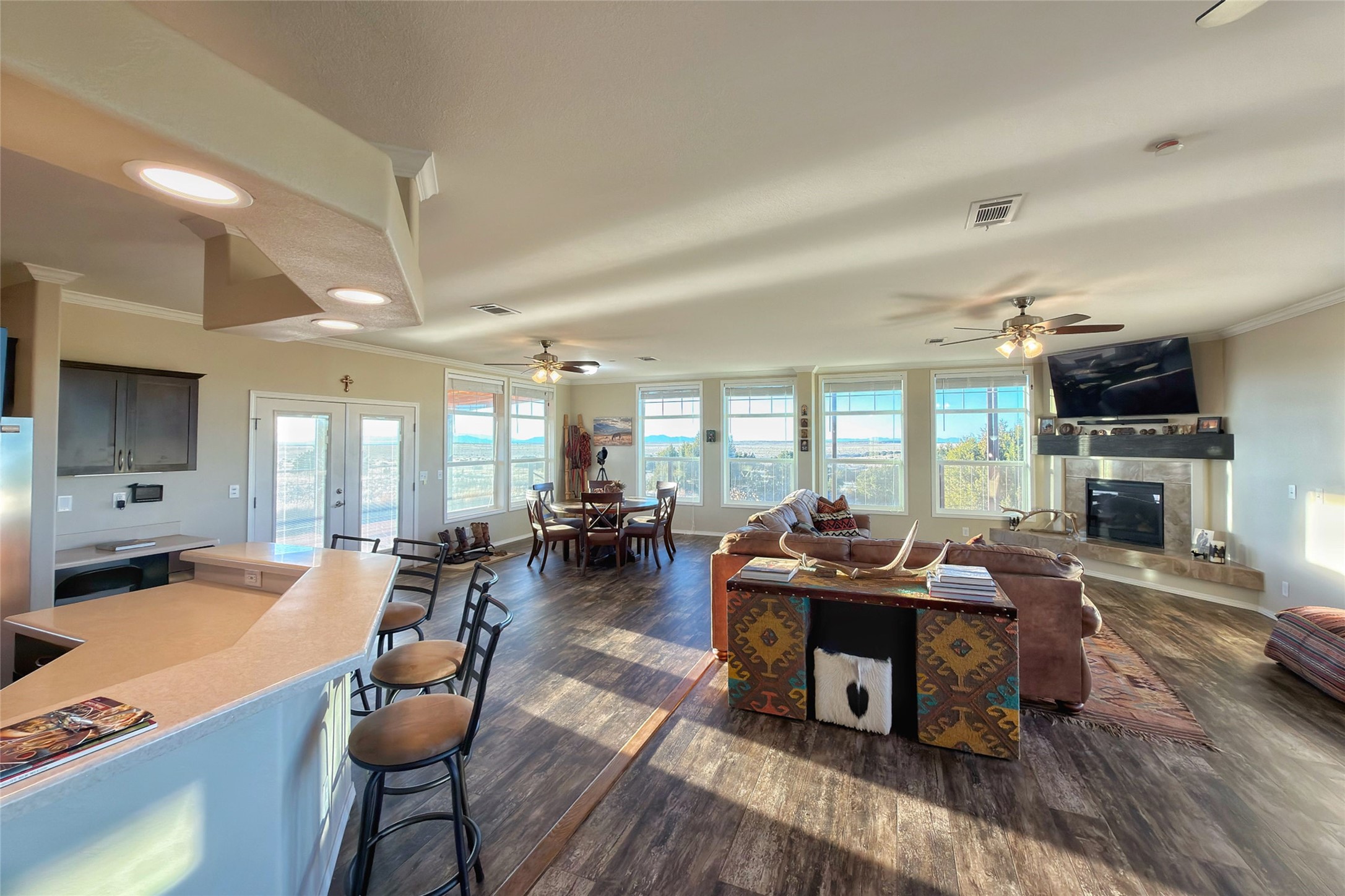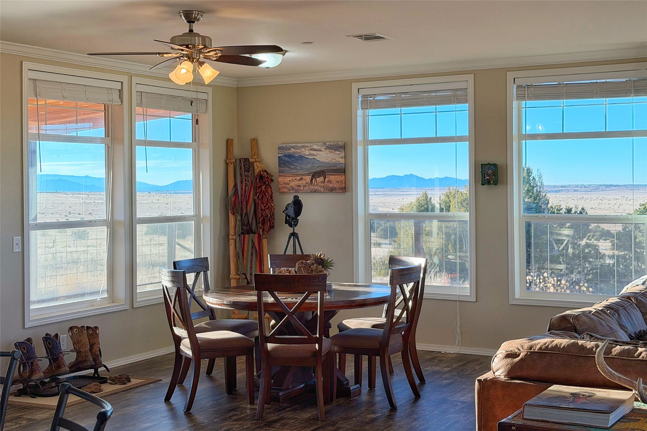 Discover El Sueno, a remarkable ~10,000-acre working cattle ranch just 35 minutes from downtown Santa Fe, New Mexico. Situated in the coveted Unit 43, this extraordinary property seamlessly blends productive ranch operations with stunning high-desert beauty and the convenience of nearby Santa Fe amenities.The ranch is currently fenced and thoughtfully divided into 16 pastures, El Sueno supports conservative grazing operations for approximately 350 head of yearling cattle from May through October. Five dependable wells ensure reliable water across the property, while sweeping mountain views provide a breathtaking backdrop to daily ranch life. Wildlife enthusiasts will appreciate frequent visits from antelope, elk, and deer that share these pristine grasslands.The property includes a main residence with 3 bedrooms and 2 bathrooms, along with a functional barn to support ranch operations. An approved 8,000-square-foot building pad offers the opportunity to construct a new ranch headquarters, allowing buyers to design their ideal operational center or dream home while maintaining the existing structures.Protected by a conservation easement, El Sueno will remain undivided and preserved for agricultural use in perpetuity--ensuring the ranch's natural beauty and productive capacity for generations to come. While currently operating as a cattle ranch, the property's infrastructure and scale make it equally suited for equestrian operations, diversified livestock enterprises, or other agricultural pursuits.This is a rare opportunity to own a significant working ranch that offers both solitude and accessibility. Whether you're seeking to continue the cattle tradition, establish an equestrian estate, or create your own agricultural vision, El Sueno provides the land, infrastructure, and proximity to Santa Fe that serious ranchers and land stewards dream about.