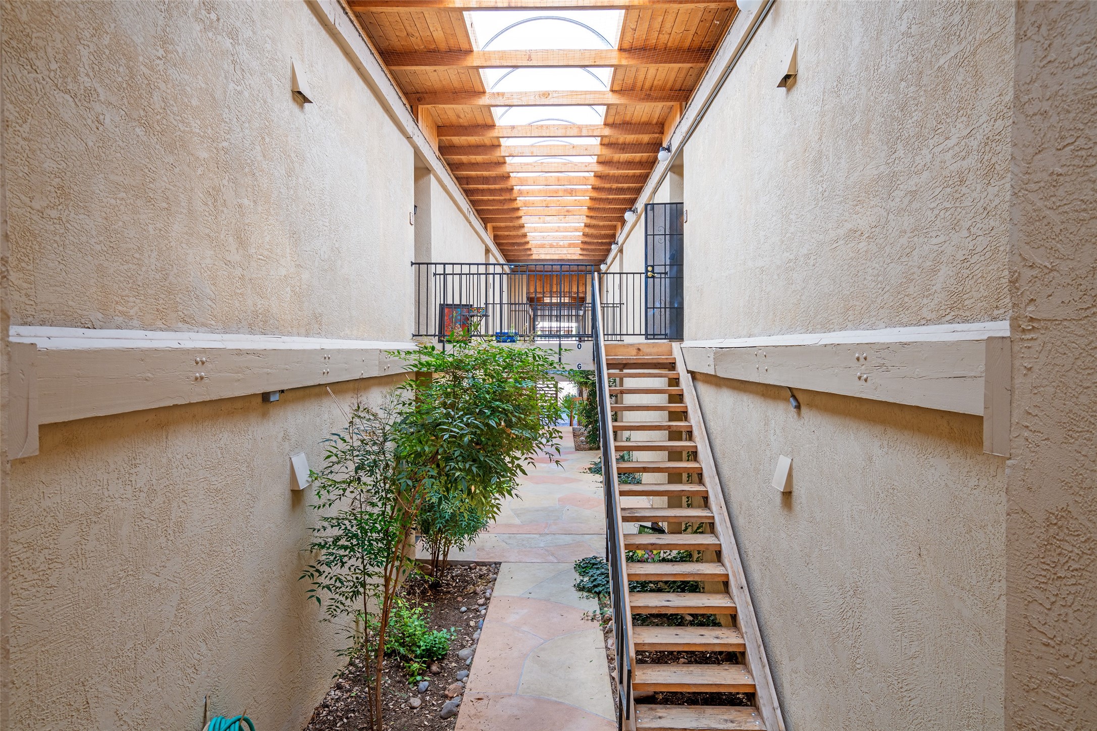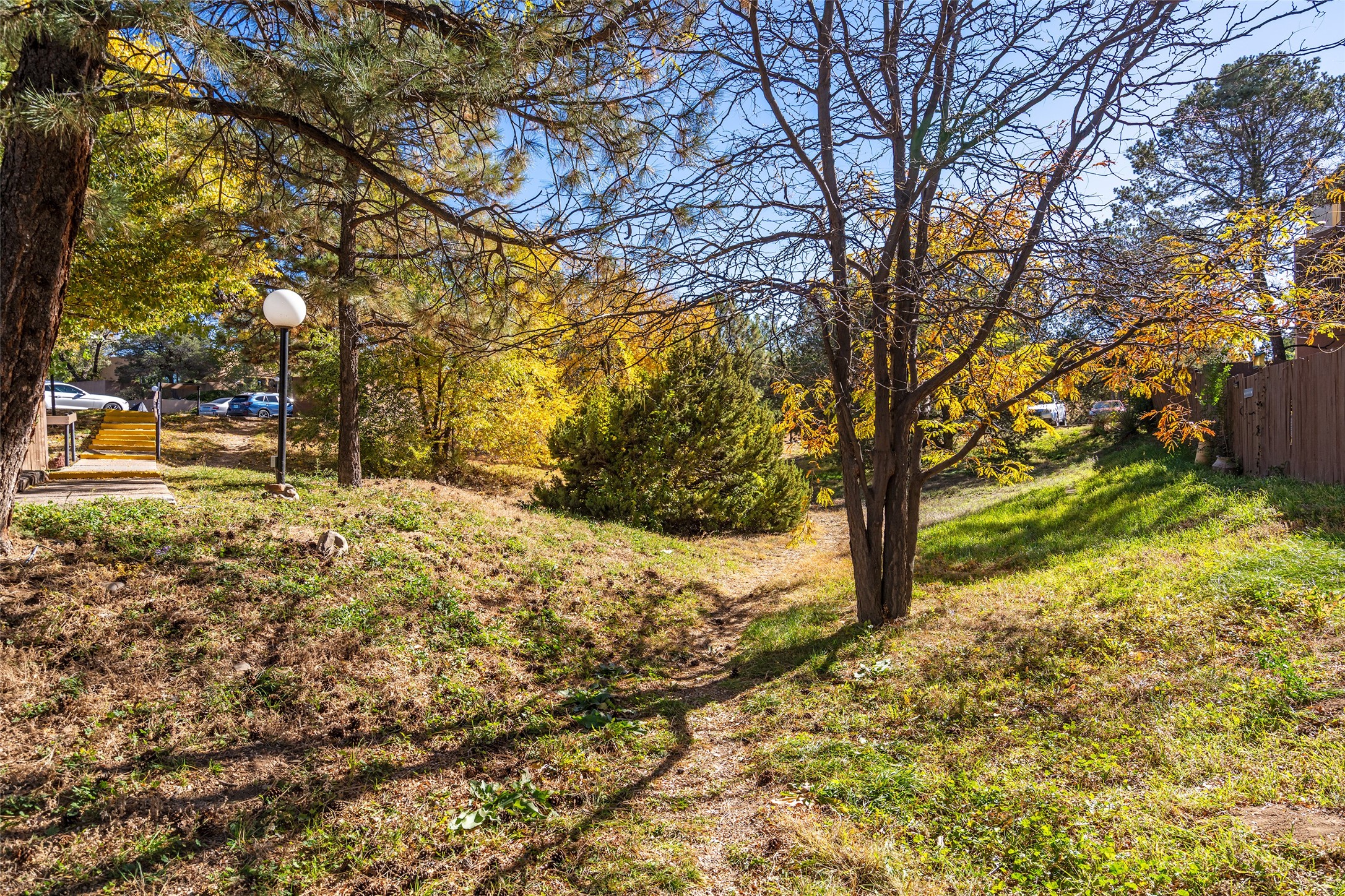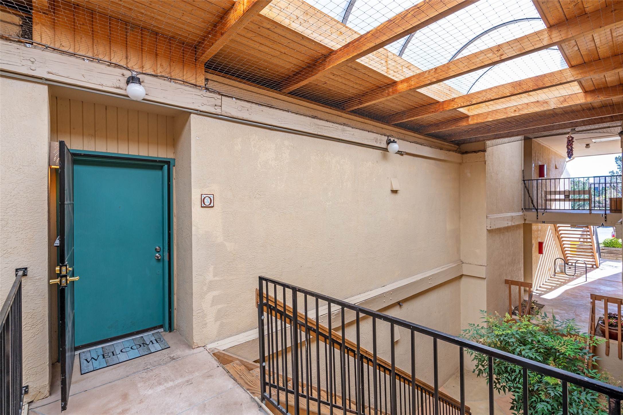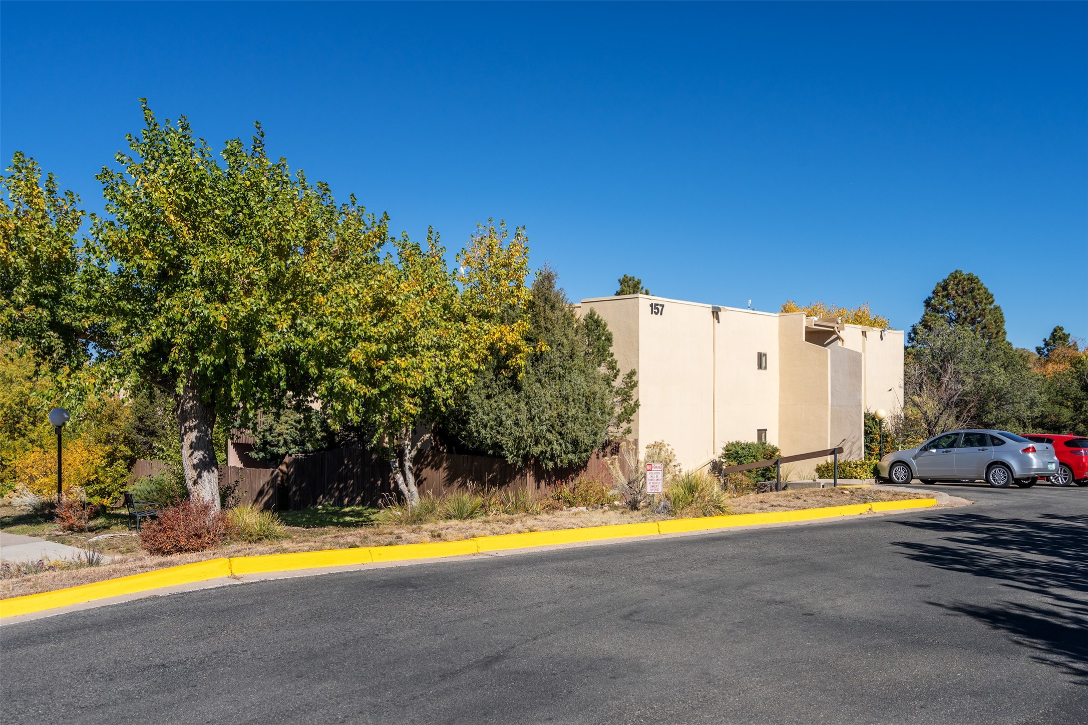 This spacious second-story condominium in the desirable Los Arroyos community offers comfort, convenience, and Santa Fe charm. Centrally located near the hospital and many of the city's premier amenities, this home is one of the larger units in the complex, featuring two bedrooms, one full bath, one bath, and a dedicated laundry room.The bright and open living and dining areas feature easy-care laminate flooring, while the kitchen and baths are finished with tile and the bedrooms offer cozy carpeting. A generous northeast-facing deck provides a lovely outdoor retreat with seasonal mountain views in winter-- perfect for relaxing or entertaining. Residents enjoy a wealth of community amenities, including a clubhouse, indoor swimming pool, sauna, and tennis courts, along with nearby walking trails. The home includes one assigned parking space plus additional guest parking. The association includes roof and exterior maintenance, heating, water, and common areas, ensuring low-maintenance living in one of Santa Fe's most convenient neighborhoods. Your Santa Fe comfort awaits!
