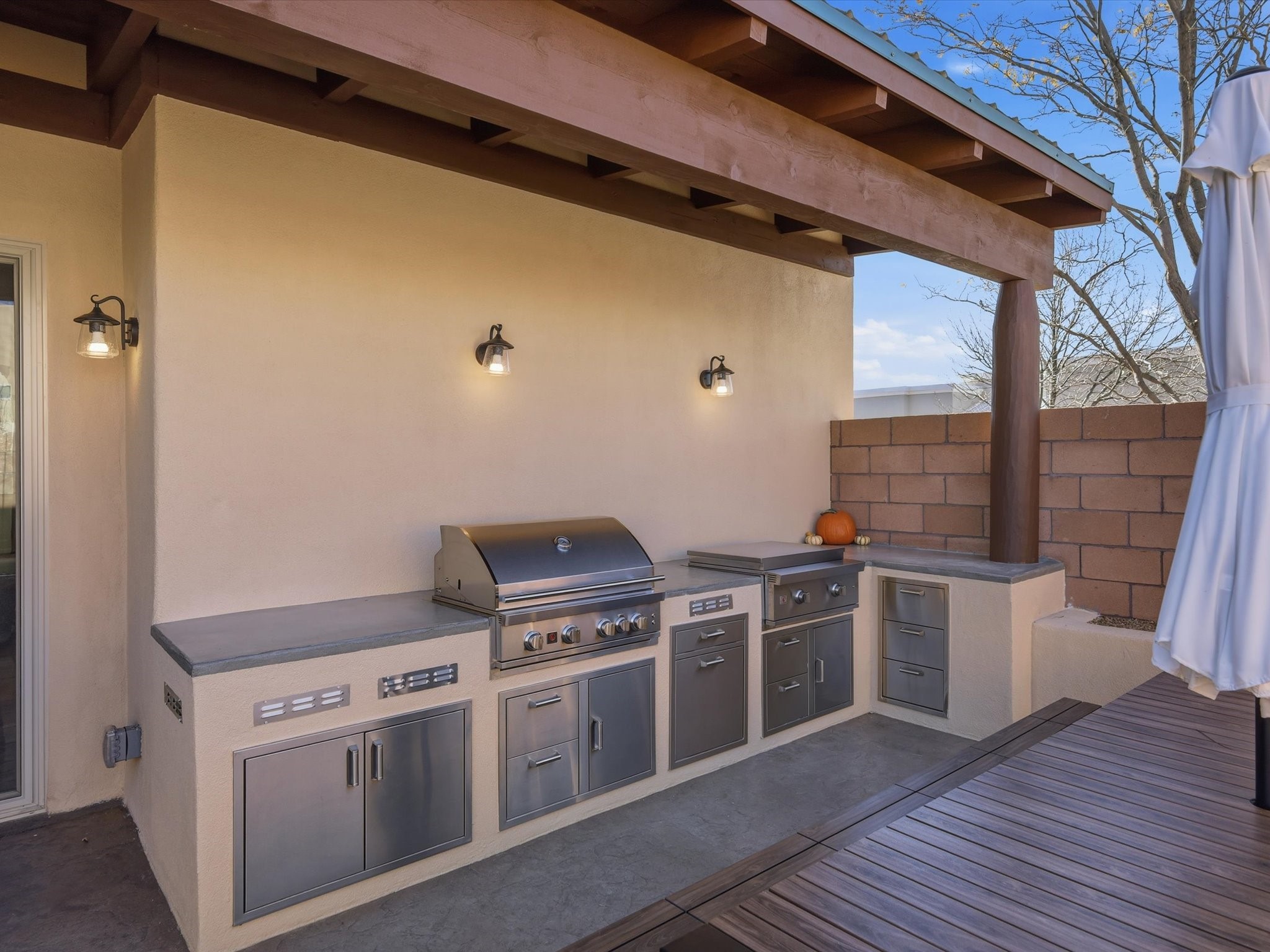 This beautiful property offers a stunning blend of indoor luxury and outdoor entertaining space, perfect for gatherings or family luxury living. The recently completed (November 2025) outdoor kitchen patio and overhead awning, enhance the outdoor experience with built-in Summerset stainless steel appliances, including a BBQ/rotisserie grill, flat top griddle, and customizable lighting via Phillips Hue.Inside, the home features all LG stainless steel appliances--washer, dryer, fridge, gas range oven, dishwasher, and microwave--creating a modern and efficient kitchen environment. The house is also equipped with new (2024) Anlin double-glazed insulated UV-rated windows and sliding doors, providing abundant natural light and energy efficiency. Foam roof (2020) comes with transferable warranty.Luxurious comfort is assured with radiant heat flooring throughout and a gas Kiva fireplace. Security and convenience are integrated with Google Nest video and audio doorbells. The tiled floors paired with Berber carpet offer both style and comfort. Situated in a prime location, the house enjoys mountain views, access to expansive nature trails, and a well-lit, naturally bright setting. This property is ideal for buyers seeking a move-in ready home with impressive outdoor amenities, contemporary upgrades, and scenic surroundings.