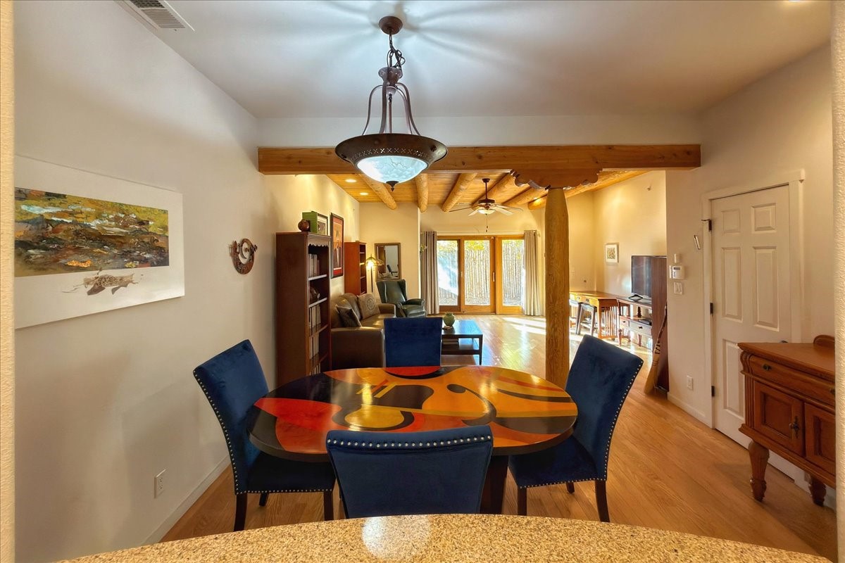 Tucked into one of the community's most desirable lanes, this rare and **oversized townhouse** delivers an effortless blend of style, comfort, and Santa Fe living. These are upgraded units from the standard sized Townhouse.Offering 2 bedrooms and 2 baths, the flexible floorplan is designed for easy everyday living with room to entertain.The main level features an open kitchen, dining, and oversized living space anchored by a welcoming gas fireplace. Glass doors lead to a private garden courtyard--your own outdoor retreat for quiet mornings, alfresco dinners, or relaxed evenings with friends.Upstairs, the primary suite includes an **oversized bedroom**, and **oversized walk-in closet**, full bath, and a balcony perfect for savoring the day's last light. The second bedroom offers its own ensuite bath and eastern views. High ceilings, vigas, Pella windows, and stainless steel appliances bring classic Santa Fe character to the modern layout.The community rounds out the experience with thoughtful amenities: a clubhouse, fitness center, and seasonal pool surrounded by beautifully maintained grounds, lush landscaping, and open green space.Step outside and you're moments from neighborhood favorites--Iconik Coffee, Backroads Pizza, Midtown Bistro, Chocolate Maven, Anytime Fitness, and more. Prefer the outdoors? The Santa Fe Rail Trail sits just half a mile away, ideal for biking, running, or a leisurely stroll.Practical perks include strong cell service, optional carport rentals, and a lock-and-leave lifestyle that suits first-time buyers, downsizers, or anyone seeking a comfortable Santa Fe home base.This isn't just a townhouse--it's a vibrant, convenient, easygoing way of life.