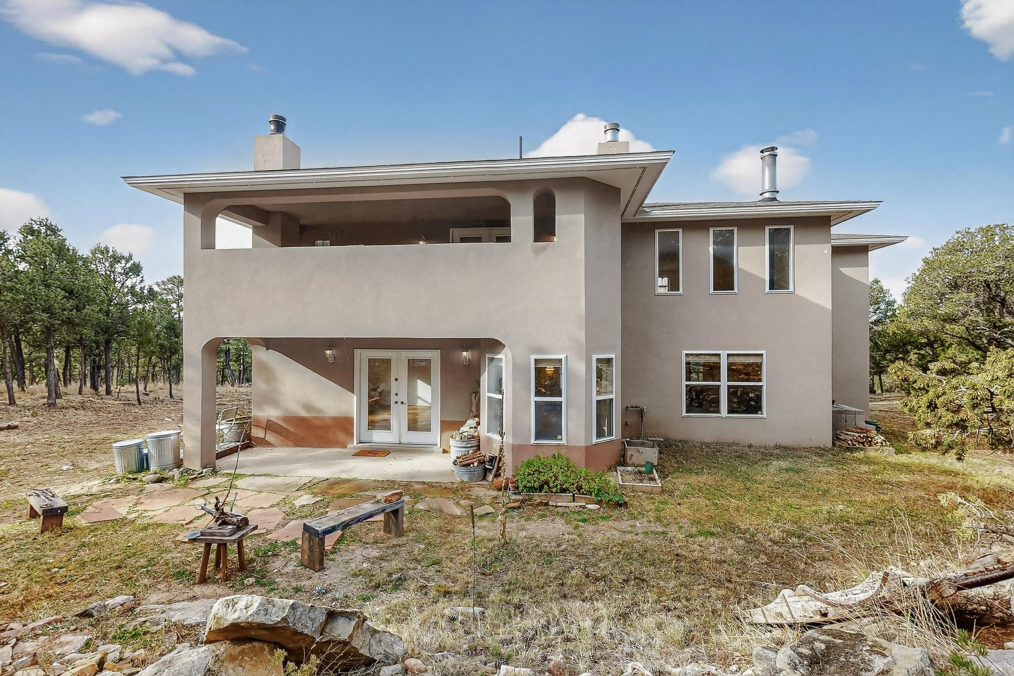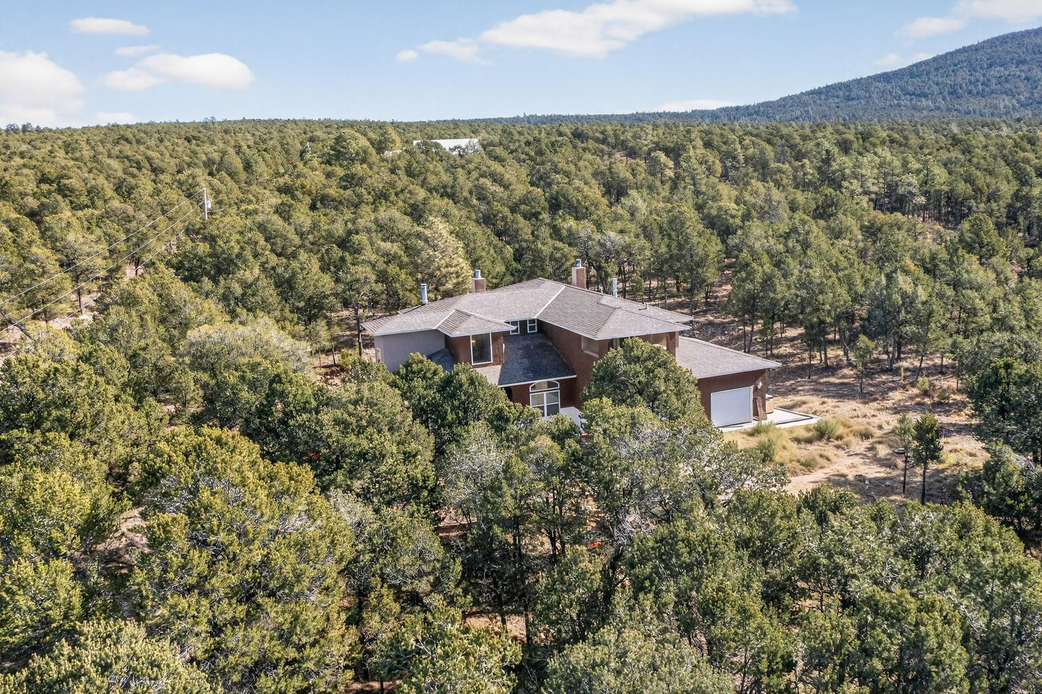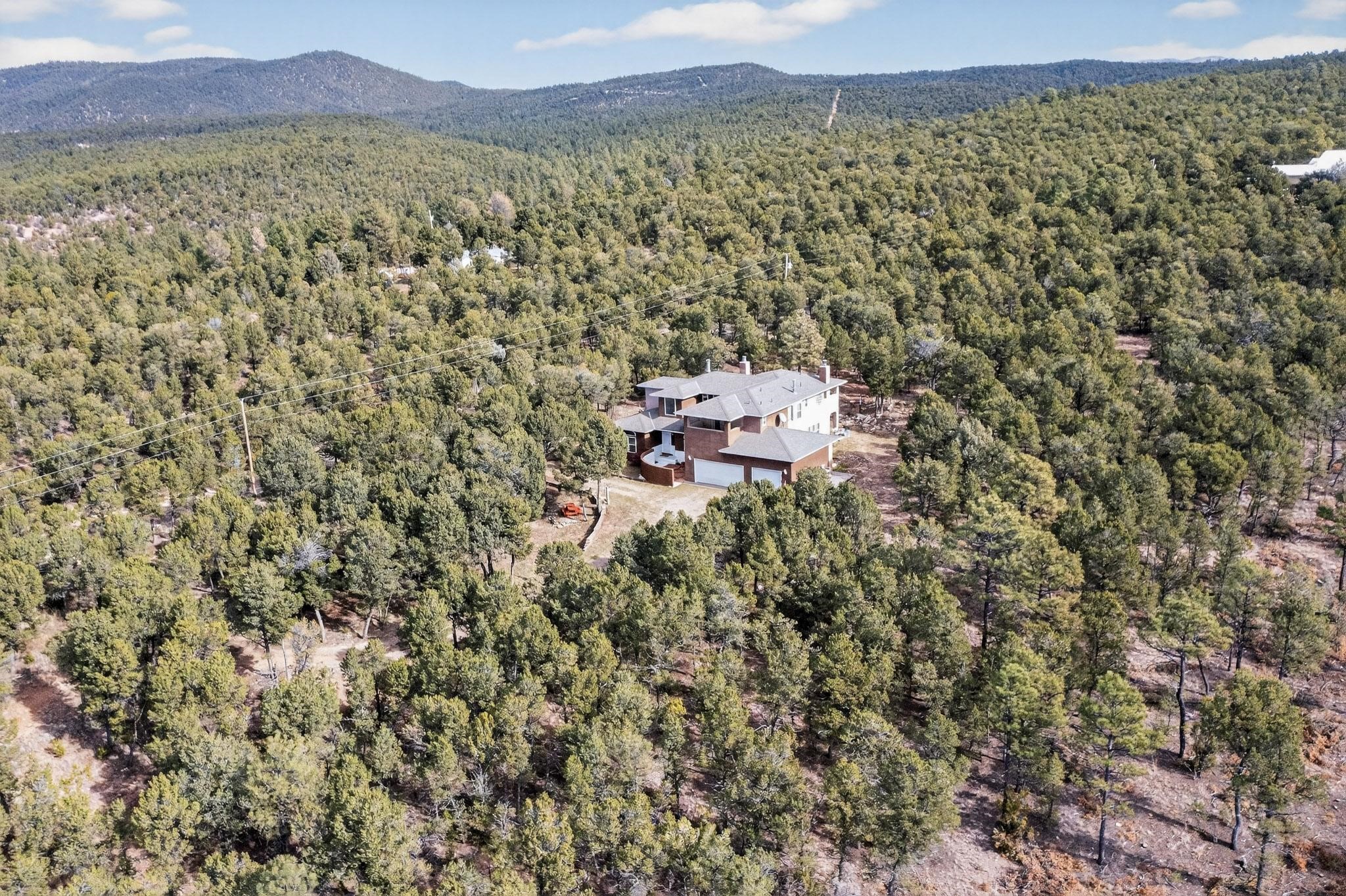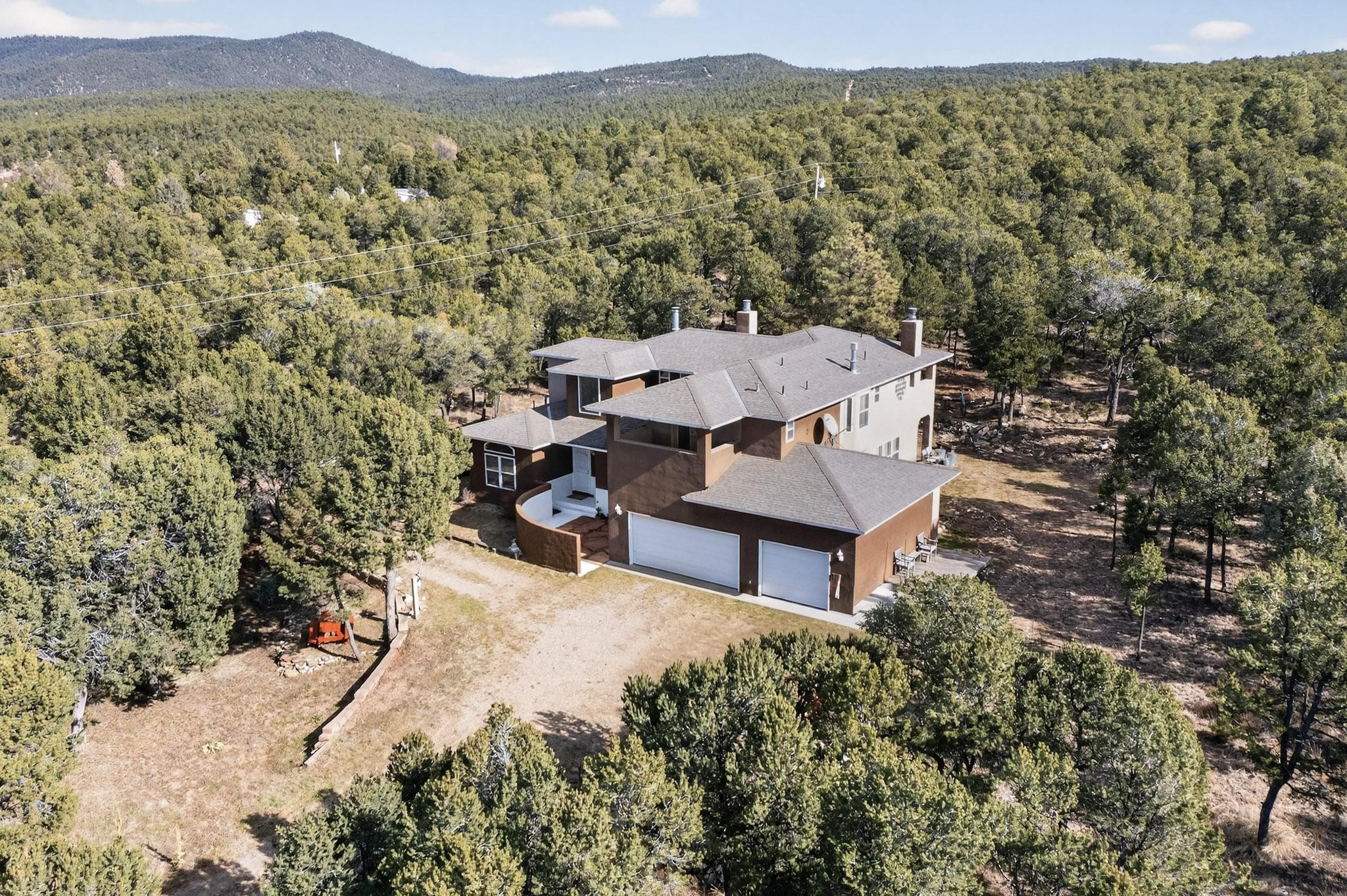Custom 2-story home sited on 2.32 +/- fully fenced acres. The expansive floorplan includes great room with wood burning stove and tall ceilings, Chef's kitchen with breakfast nook, family room with Kiva fireplace, bonus room, 2 full baths and 3/4 bath, laundry room and oversize and finished 3 car garage. All 3 bedrooms are up stairs, primary has wood burning fireplace and view balcony, 2nd bedroom has a second view deck facing to the north with views to the Santa Fe National Forest, 2nd and 3rd bedrooms share "jack n jill" bathroom. The home boosts extensive closets, all appliances included - refrigerator, stove/oven, washer, dryer, dishwasher, French doors to back patio, 2 fireplaces and 1 wood stove, granite kitchen counters. The 2.32 +/- acres includes a circle driveway, are nicely maintained with Juniper, Pinon and a large Ponderosa Pine tree, block retaining wall, private well with 3 acre feet of domestic water rights, buried and owned propane tank, and picnic area with a picnic table. Located just beyond the Village of Pecos the property at 16 Coyote Lane has much to offer buyers.