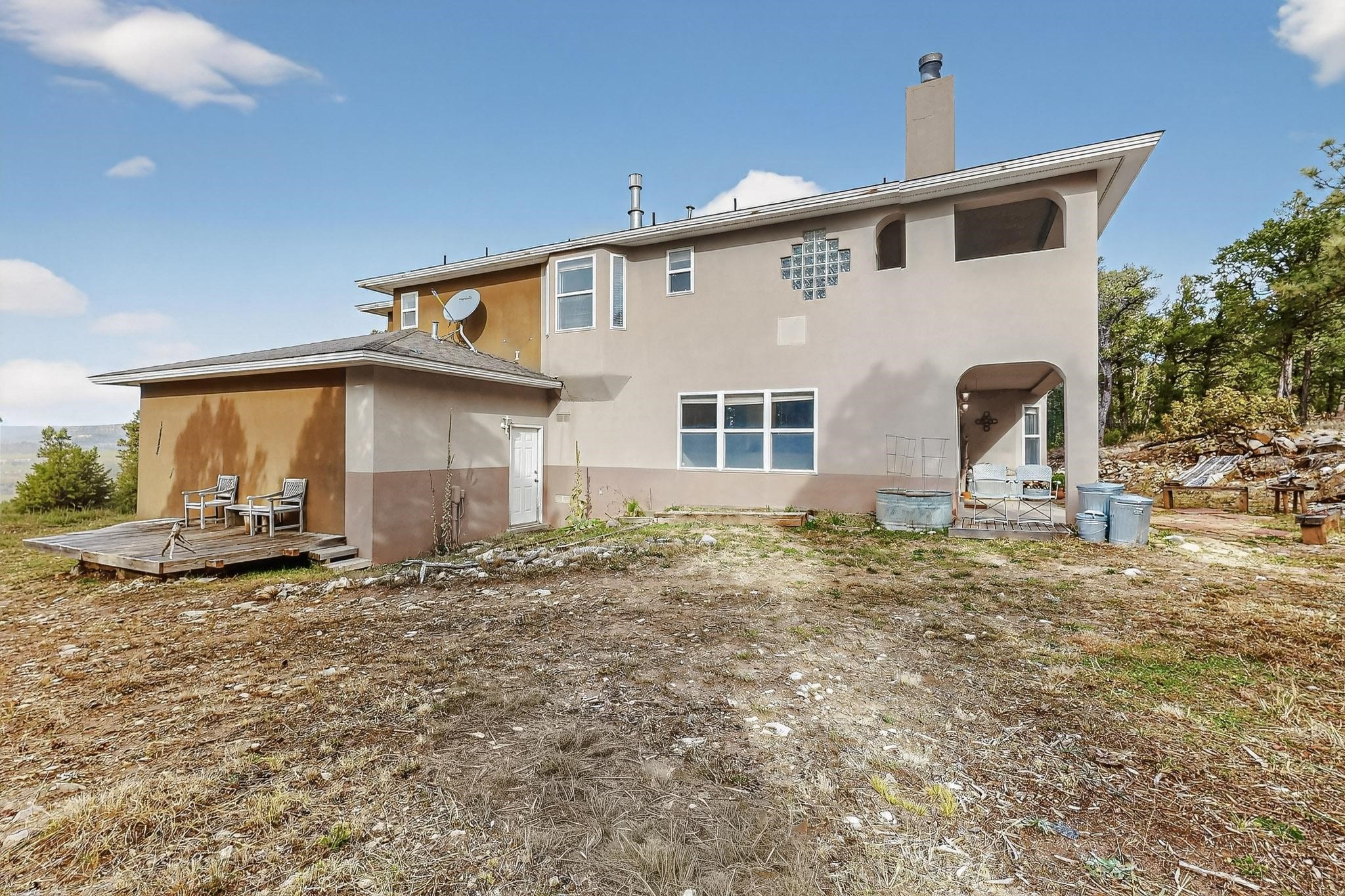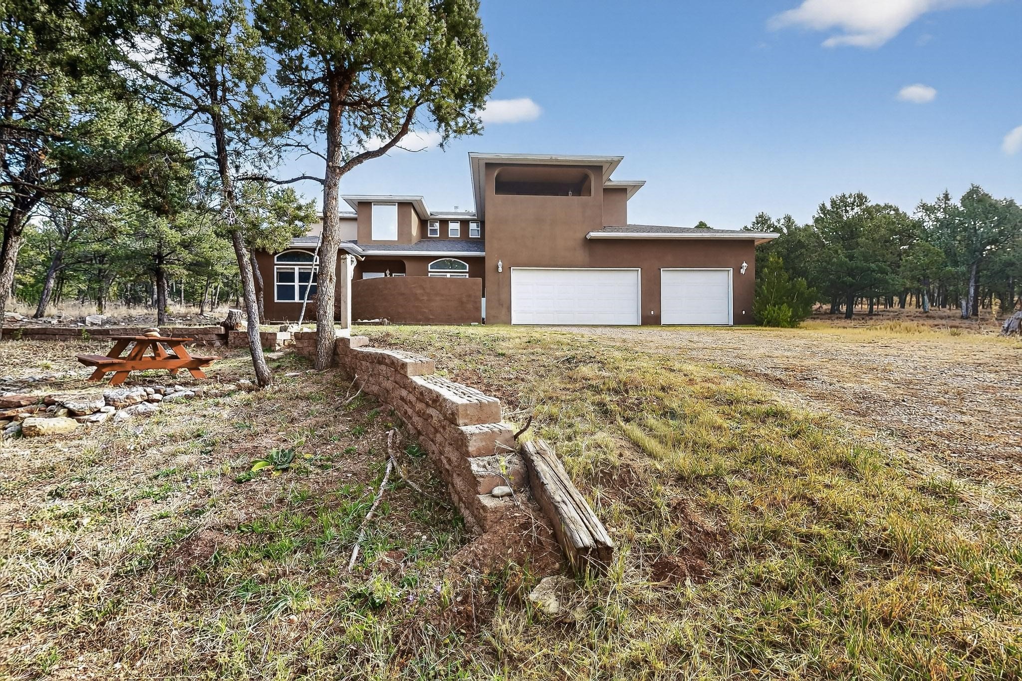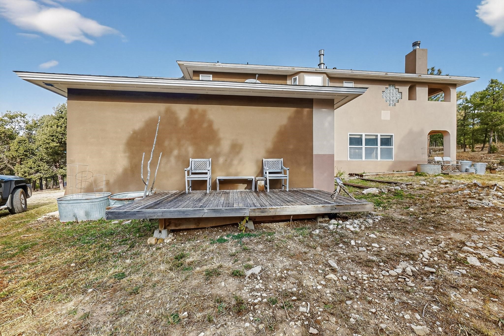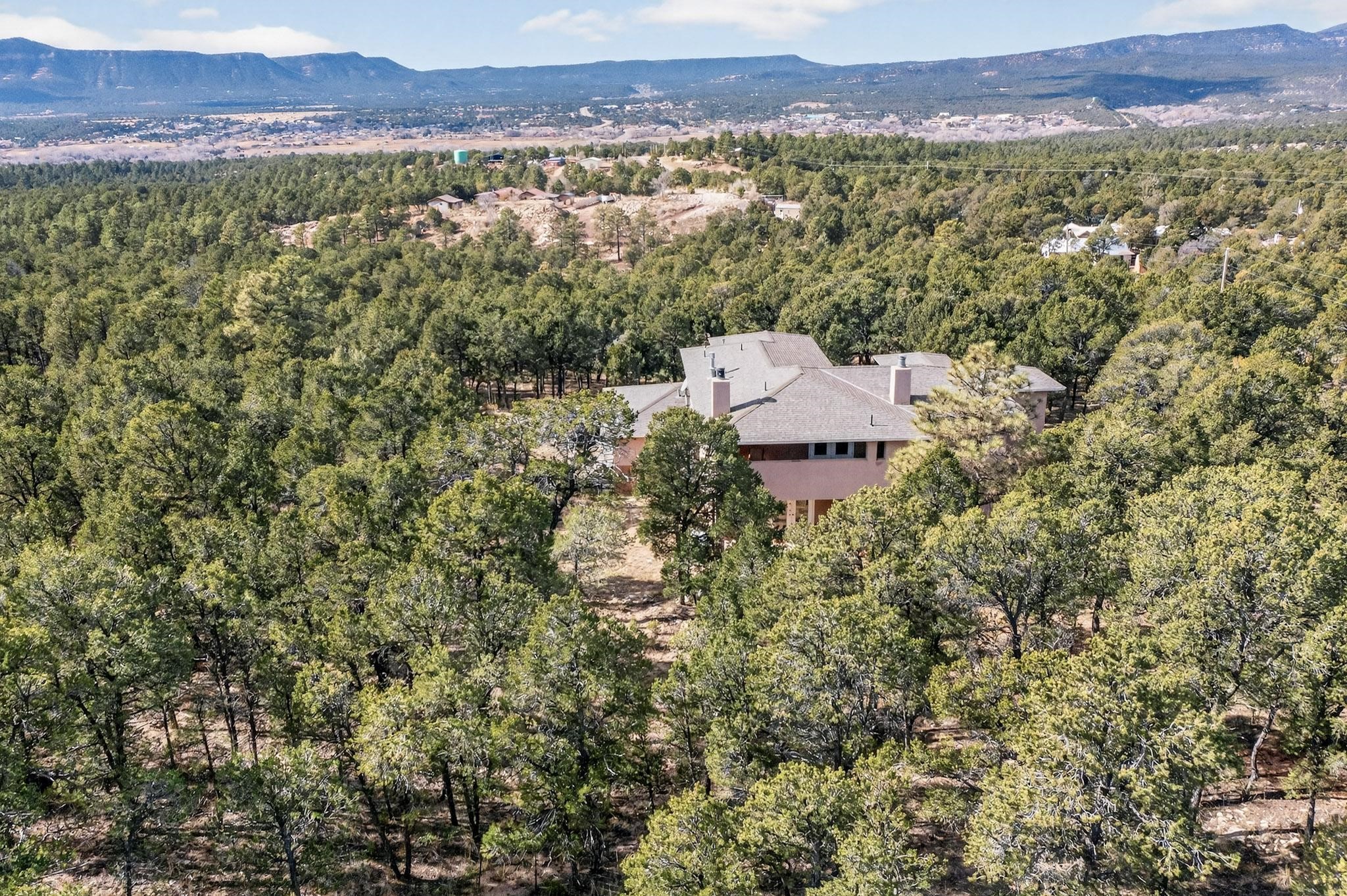 Custom 2-story home sited on 2.32 +/- fully fenced acres. The expansive floorplan includes great room with wood burning stove and tall ceilings, Chef's kitchen with breakfast nook, family room with Kiva fireplace, bonus room, 2 full baths and 3/4 bath, laundry room and oversize and finished 3 car garage. All 3 bedrooms are up stairs, primary has wood burning fireplace and view balcony, 2nd bedroom has a second view deck facing to the north with views to the Santa Fe National Forest, 2nd and 3rd bedrooms share "jack n jill" bathroom. The home boosts extensive closets, all appliances included - refrigerator, stove/oven, washer, dryer, dishwasher, French doors to back patio, 2 fireplaces and 1 wood stove, granite kitchen counters. The 2.32 +/- acres includes a circle driveway, are nicely maintained with Juniper, Pinon and a large Ponderosa Pine tree, block retaining wall, private well with 3 acre feet of domestic water rights, buried and owned propane tank, and picnic area with a picnic table. Located just beyond the Village of Pecos the property at 16 Coyote Lane has much to offer buyers.