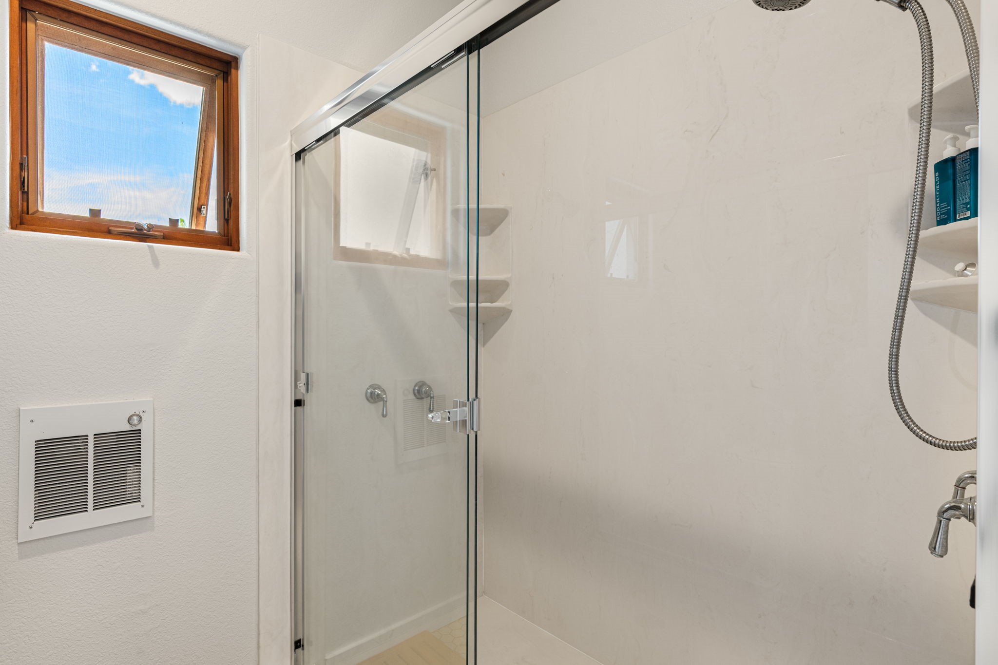 This updated home situated on 4.68 acres & 2 lots, zoned A-2, NO HOA & additional 820 sq. ft Bunker like basement is one of the most unique in the east mountains. It features an oversized 33.9x24 tandem style garage, automatic gate, vaulted ceilings, natural light, exposed wood beams, large casement windows, multiple outdoor seating areas, hot tub purchased 11/1/24, community water-no well. 3 sources of heat: Radiant baseboard, 6 Mini Splits& Wood stove. Solar panels that will be paid off by the Seller with acceptable offer. The views are stunning! The home is open & inviting. The property will take your breath away. Outdoor features include an oversized chair facing the Sandias for a beautiful sunset view, access through back gate, chicken coop and goat pen and much more