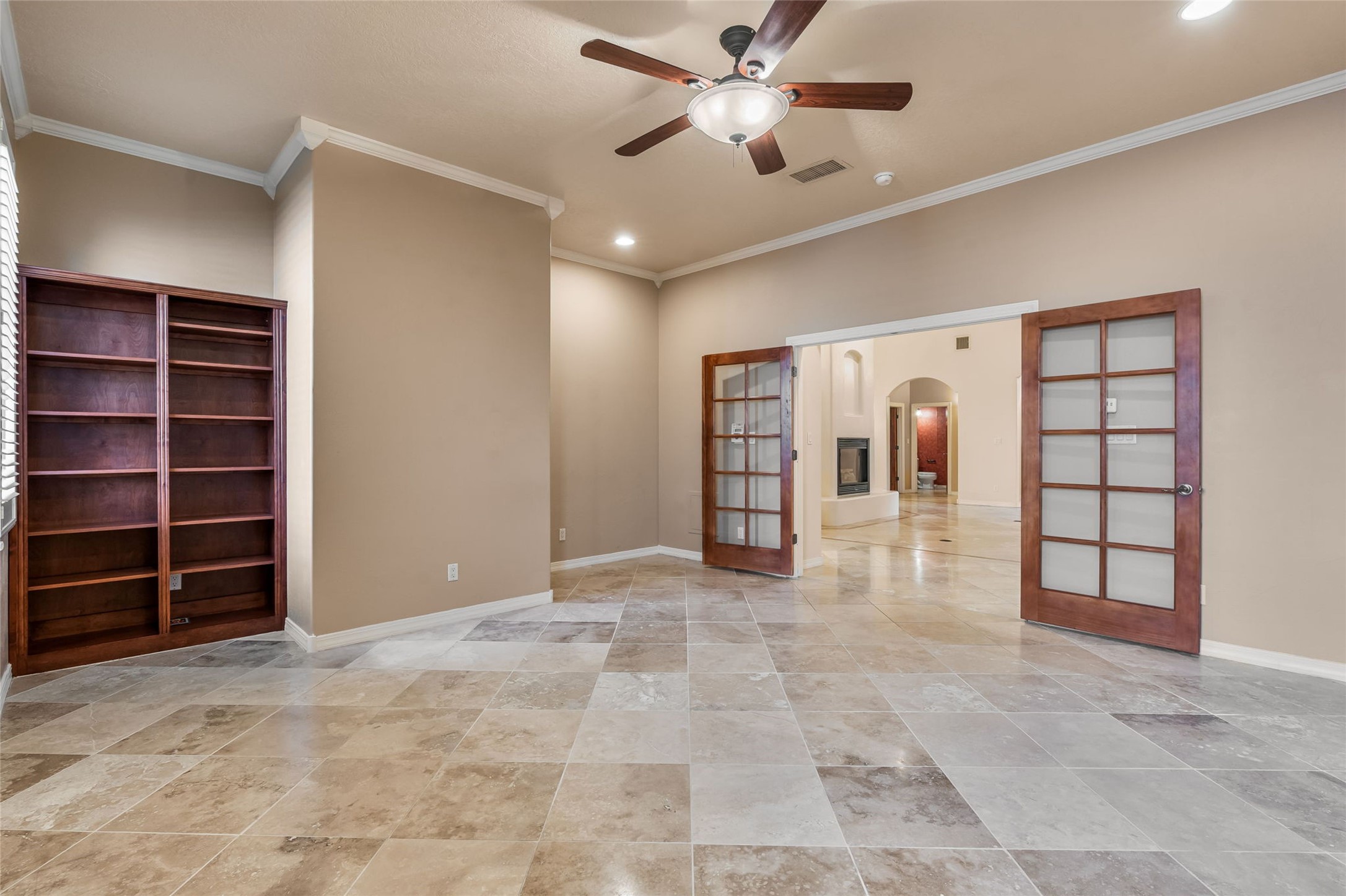 One level, 3,514 sq. ft. 3 bed + home office, Separate Dining, Living + Den. Meticulously maintained with 3-car Garage. Brand new HEIL HVAC package units for heat and refrigerated air January 2026. Roof tune up December 2025. Ready to move in! Located in the gated Gardens on the Rio Grande community in the heart of Old Town, this beautifully maintained single-story ADA friendly home offers a rare blend of comfort, quality, and timeless style. The floorplan flows easily from room to room, giving each space purpose while still creating an open, welcoming feel.Travertine flooring runs throughout the home and sets a warm, upscale tone. The living room and separate den give you two distinct gathering spaces--perfect for entertaining or simply spreading out. A dedicated home office provides a quiet place to work. while the formal dining room is designed for dinners, celebrations, and everyday enjoyment.The kitchen sits at the center of it all with great connectivity to the main living spaces, making hosting effortless. Natural light fills the rooms, and the thoughtful layout gives the home a calm, spacious character.The primary suite rests in its own private wing and offers generous space and direct access to the lush backyard. Two additional bedrooms are well-sized and separate from the main suite, giving guests or family members their own privacy. Indoor outdoor dining on the extended covered backyard patio. Tiled flooring brings an elevated experience to outdoor living while the well designed landscape adds visual colorful appeal.This property has had only one owner and it truly shows in the level of care. Recent improvements such as the newer TPO roof and updated stucco add modern reliability to the home's classic charm. The oversized three-car garage is a standout feature.Premium lot designed with direct access to the neighborhood's open-space park, a special amenity for daily walks or easy outdoor relaxation.