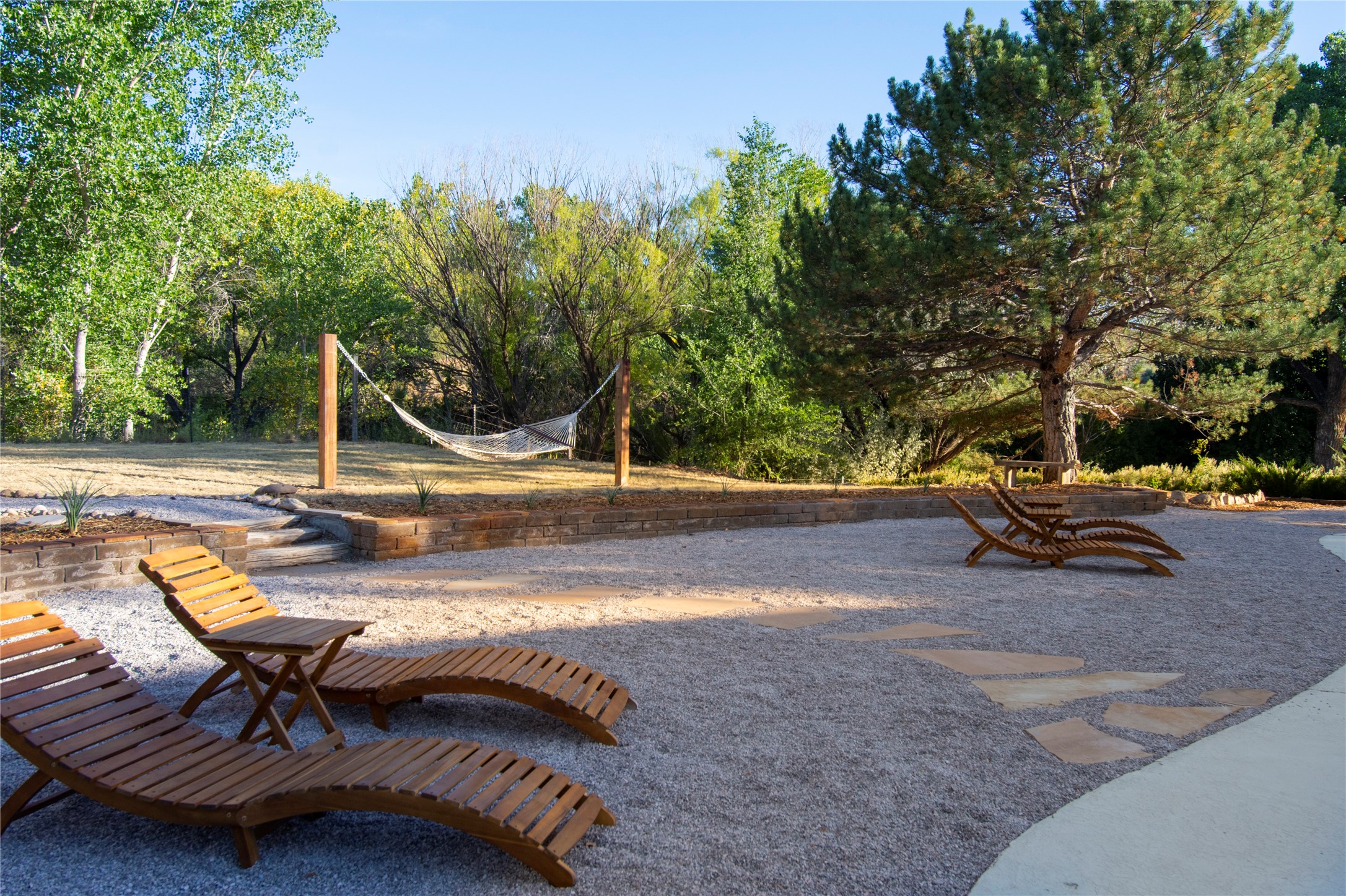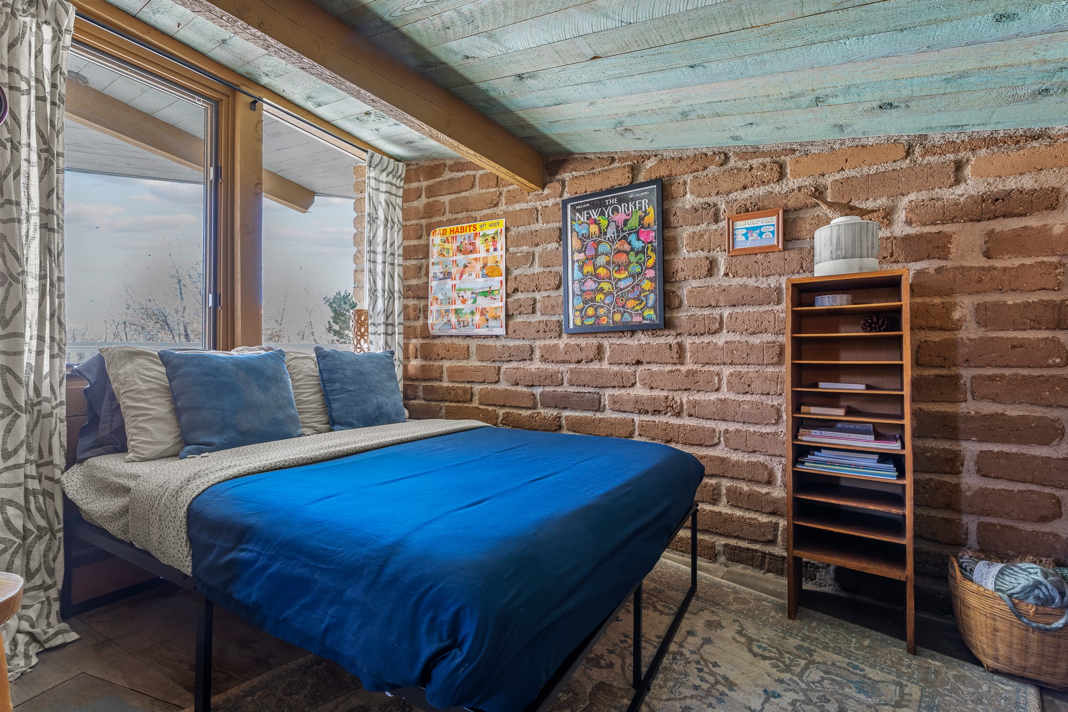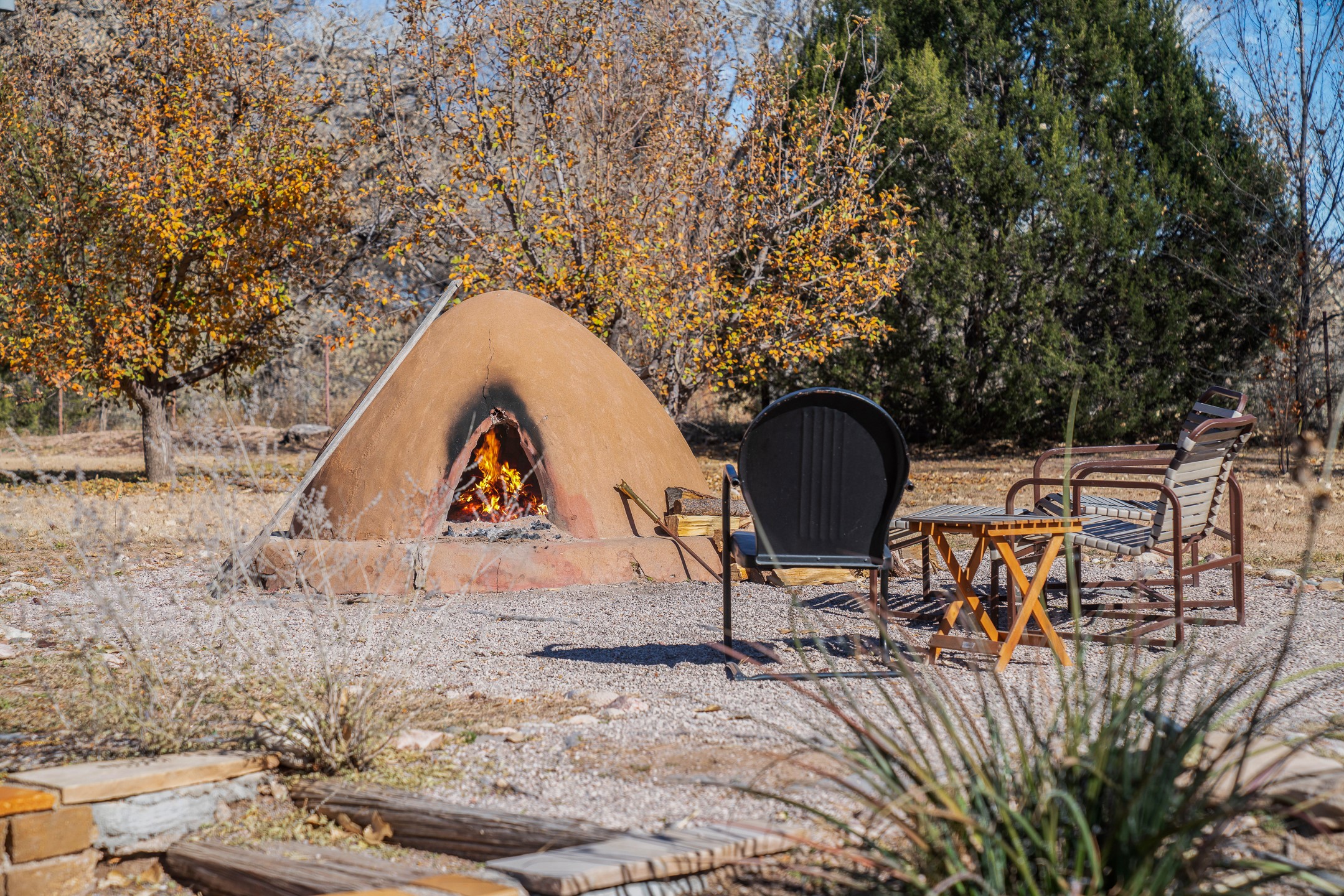 El Caracol Court | 34 State Road 503 is a truly distinctive riverfront property located along the Rio Nambe in the lush Nambe Valley. Designed by renowned local architect Allen L. McNown, a University of Oregon trained architect who settled in Pojoaque in the 1950s and became known for his contemporary adobe work with undulating forms and tinted-light interiors, including the modern church at Namb Pueblo. The home combines artistic design, functionality, and nature in an extraordinary way. Its form is inspired by the spiral geometry of a nautilus shell, a motif McNown used in other celebrated "snail" houses in the valley, and this architectural concept defines a flowing interior that celebrates light, water, and organic space. Set on approximately 2.10 acres, the property is fully fenced and offers both privacy and usability. It benefits from surface water rights off the Rio Nambe as well as a shared well, providing flexibility for landscaping and irrigation. The grounds include mature trees, gardens, a swimming pool, storage shed, and a separate workshop--a combination rarely found in this corridor.The residence itself measures roughly 4,000 square feet with three bedrooms and three bathrooms. Key design features include adobe and frame construction, dramatic curving walls, exposed wood beams, a lava-rock fireplace, and a sweeping staircase that centers the home's open plan. Additional amenities include: 40' Private swimming pool with adjacent lounge area, covered portal, sunroom with glass enclosure, solar improvements, mechanical system updates, maintained roof and gutters, radon mitigation system, updated appliances, and enhanced irrigation infrastructure. Exceptional maintenance and stewardship, upgrades over recent years that have modernized systems while preserving the artistic integrity of the home. The property has also been operated as a short-term rental, generating consistent income and showing strong demand as a retreat or vacation destination.