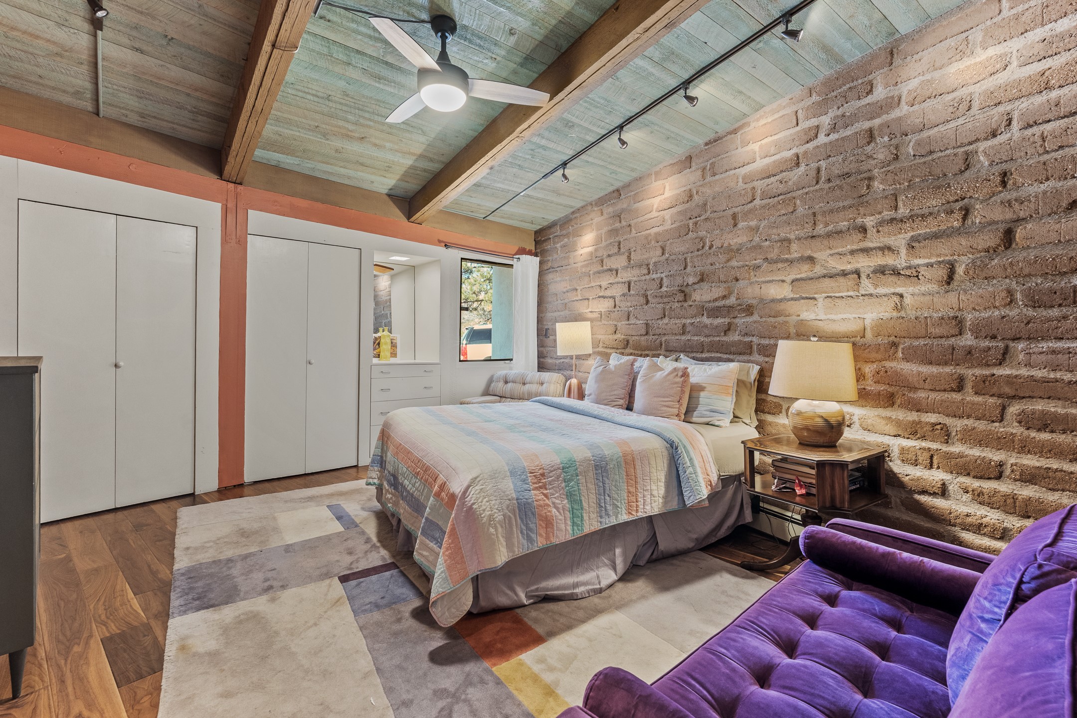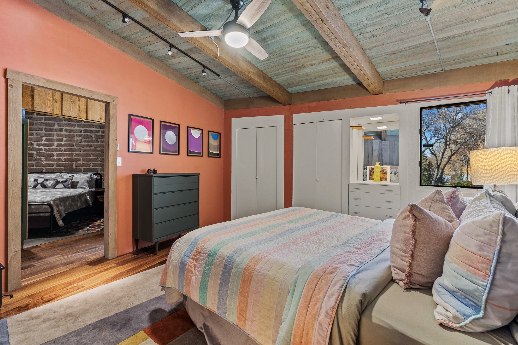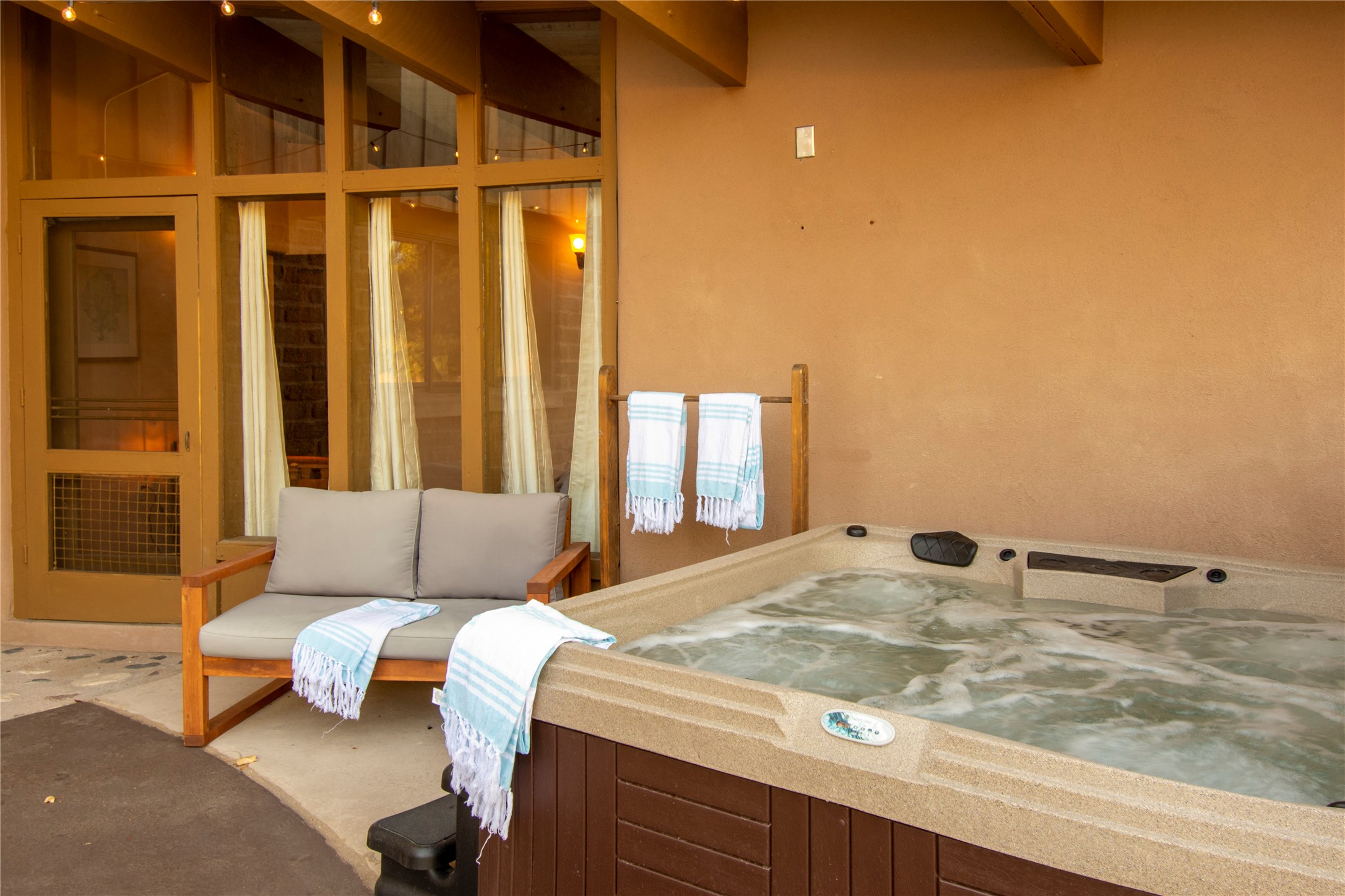El Caracol Court | 34 State Road 503 is a truly distinctive riverfront property located along the Rio Nambe in the lush Nambe Valley. Designed by renowned local architect Allen L. McNown, a University of Oregon trained architect who settled in Pojoaque in the 1950s and became known for his contemporary adobe work with undulating forms and tinted-light interiors, including the modern church at Namb Pueblo. The home combines artistic design, functionality, and nature in an extraordinary way. Its form is inspired by the spiral geometry of a nautilus shell, a motif McNown used in other celebrated "snail" houses in the valley, and this architectural concept defines a flowing interior that celebrates light, water, and organic space. Set on approximately 2.10 acres, the property is fully fenced and offers both privacy and usability. It benefits from surface water rights off the Rio Nambe as well as a shared well, providing flexibility for landscaping and irrigation. The grounds include mature trees, gardens, a swimming pool, storage shed, and a separate workshop--a combination rarely found in this corridor.The residence itself measures roughly 4,000 square feet with three bedrooms and three bathrooms. Key design features include adobe and frame construction, dramatic curving walls, exposed wood beams, a lava-rock fireplace, and a sweeping staircase that centers the home's open plan. Additional amenities include: 40' Private swimming pool with adjacent lounge area, covered portal, sunroom with glass enclosure, solar improvements, mechanical system updates, maintained roof and gutters, radon mitigation system, updated appliances, and enhanced irrigation infrastructure. Exceptional maintenance and stewardship, upgrades over recent years that have modernized systems while preserving the artistic integrity of the home. The property has also been operated as a short-term rental, generating consistent income and showing strong demand as a retreat or vacation destination.