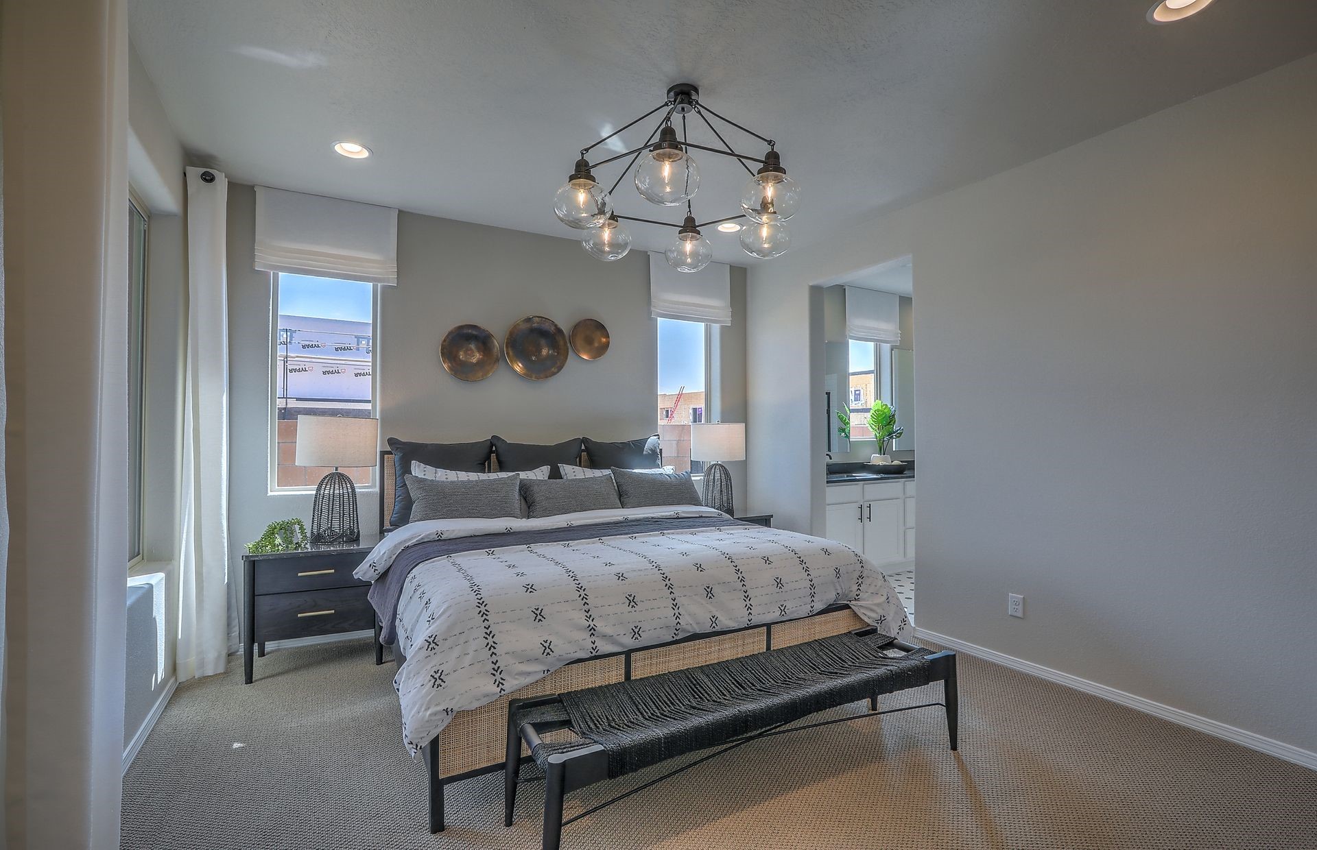 This never lived in new construction home will be complete and ready in February! Our very popular Ocotillo home features the owner's suit on the main level. 2 nice-sized secondary bedrooms upstairs as well as a loft area. Enjoy your morning breakfast or evening dinner on the large, covered patio. Low maintenance living so you feel like you can lock and go. Plant your fruits or vegetables at the community garden. Close to all conveniences with 7 minutes to the mall and 3 minutes to the highway for an easy commute.