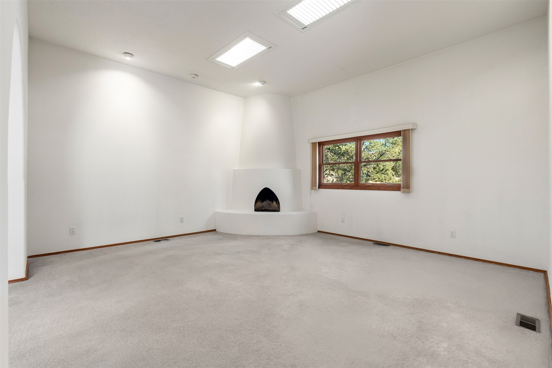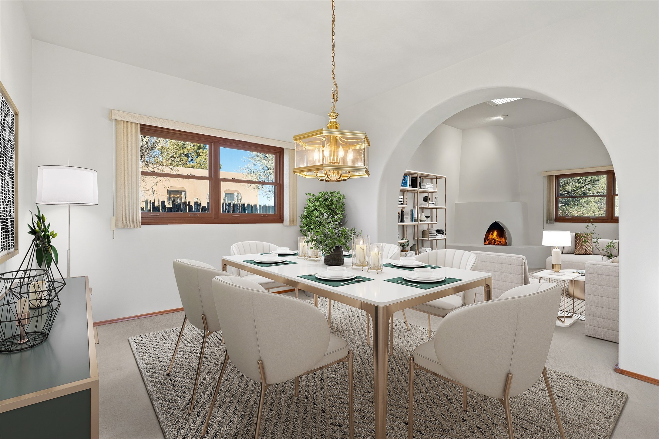 A wonderful opportunity to own a single-level home, perfectly situated in the highly desirable DeVargas Heights neighborhood. This property is an ideal canvas, ready for your personal touches to make it truly your own. Its prime location offers exceptional convenience, being close to downtown Santa Fe, various medical services, and a host of other local amenities. The home itself features a generously sized backyard with established trees, providing a private and serene side portal and courtyard. Inside, the primary suite encompasses a spacious bathroom designed with wheelchair access, ensuring comfort and accessibility. Additionally, the primary bedroom includes a dedicated sitting/office area, perfect for remote work or a quiet study space. Further enhancing this property's appeal are a three-car garage and potential RV parking in the side yard, offering ample space for vehicles and storage.This home combines an excellent location with practical features and the potential for customization. The type of cooling and its operation will need to be verified.