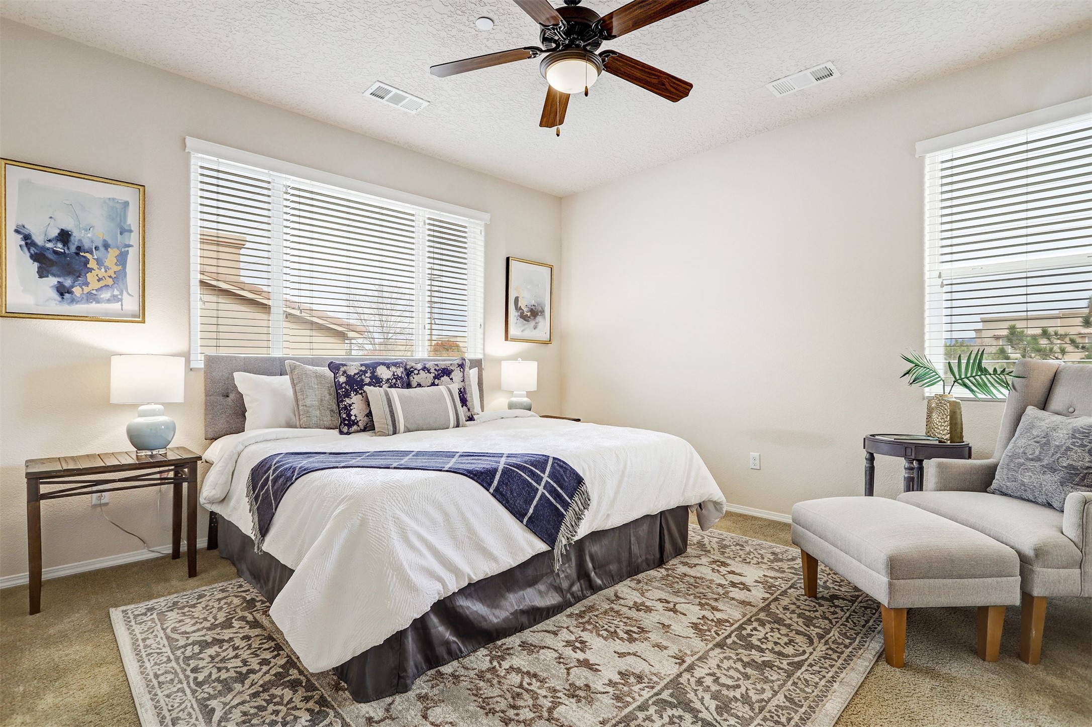 **Open House Sunday 11/23 from Noon - 2PM if still available** Discover the vibrant Santa Fe lifestyle in this centrally located condominium just minutes from shopping, dining, the historic plaza, and commuter routes. Priced for a quick sale, this home captivates from the moment you step inside! Enjoy modern comforts with a new furnace and ref air (2024), stylish downstairs tile flooring upgrade, outside patio, and a modern kitchen featuring 42-inch cabinets, solid granite slab countertops, stainless steel appliances, and a spacious pantry. Each of the three baths has shower svc, while the upstairs laundry includes a granite-topped folding counter. The expansive primary suite offers dual sinks, a built-in medicine cabinet, and a walk-in closet. Making this an ideal lock-and-leave unit, the worry-free HOA covers building exteriors and common areas.