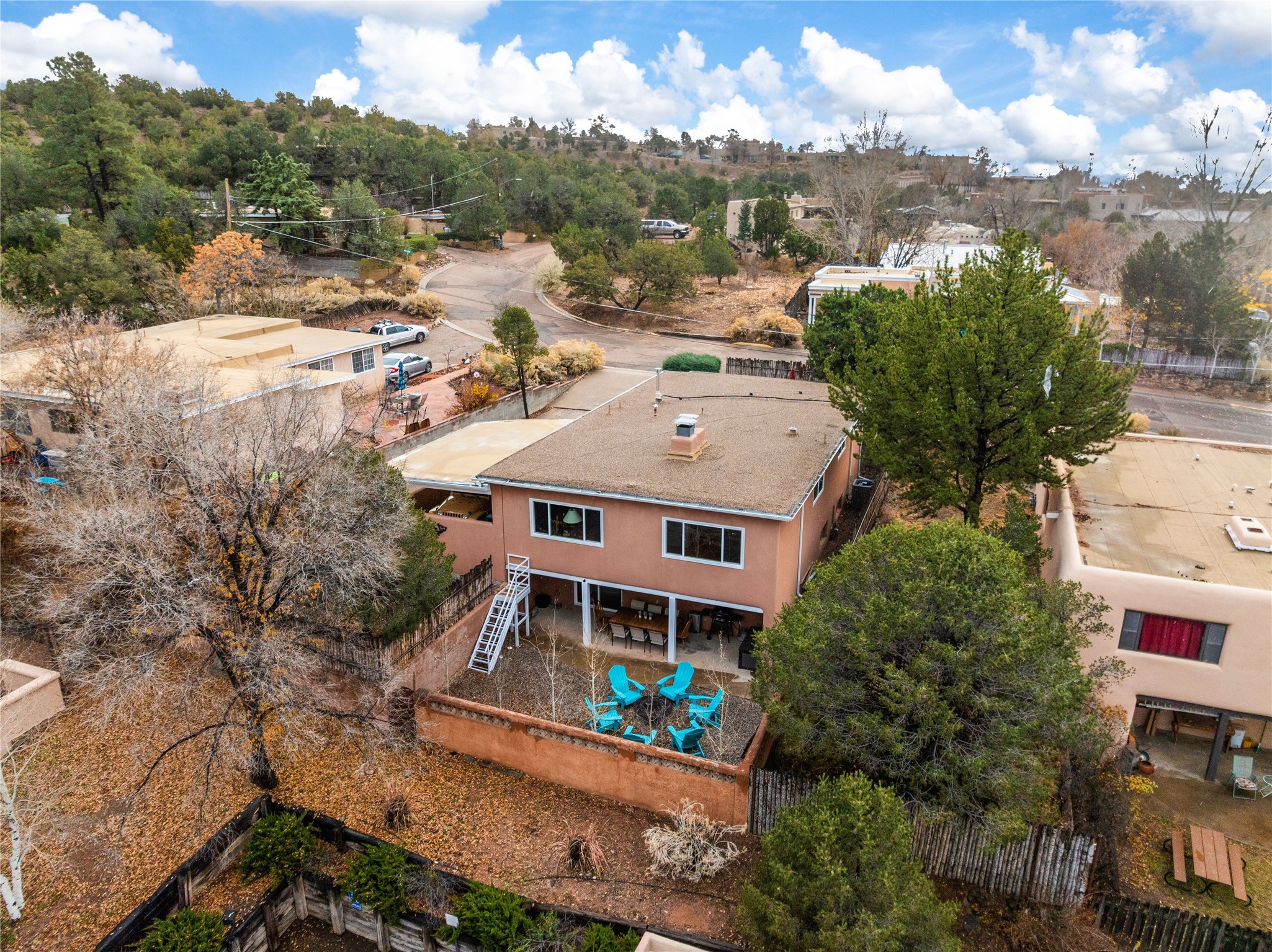 Centrally located, 5-bedroom 3 bath classic mid-century home and attached guesthouse close to Ft. Marcy Park Recreation Complex and Santa Fe Plaza. Recently updated with the retention of original (retro) design with hardwood floors, Saltillo tile and a dramatic, brick see-through fireplace. Entry foyer leads into a light-filled living room. Kitchen is appointed with butcher block counters and colorful tiles. Bathrooms have been modernized and carry over the delightful tile motif from the kitchen. Downstairs casita includes living area with fireplace, galley kitchen, 2 bedrooms and bath with access to outdoor patio. Fenced in backyard expands living and entertaining space. Central air and heat and newer windows. One car carport plus off-street parking. During the summers, enjoy easy access to the International Folk Art Market, the Traditional Spanish Market, and the SWAIA Indian Market, and in winters, ride New Mexico Ski Bus from Ft. Marcy Park to Santa Fe Ski Basin and Ten Thousand Waves.