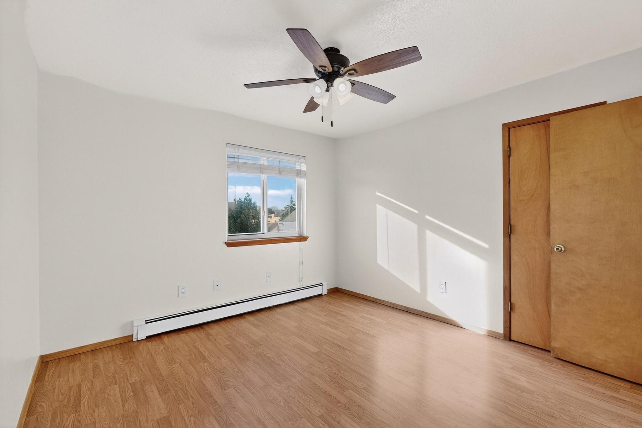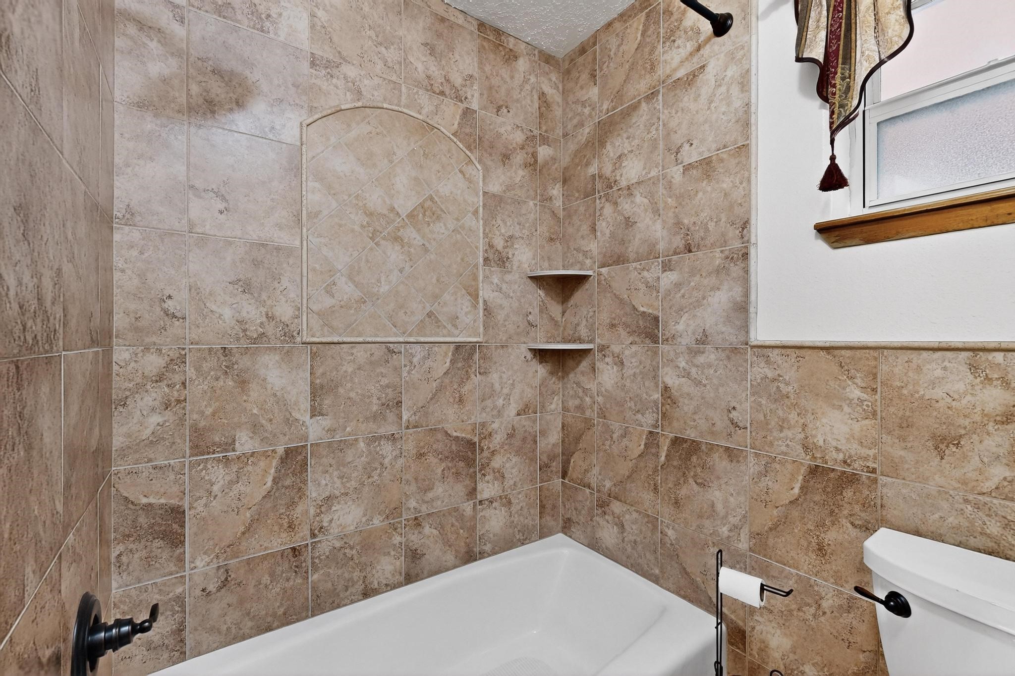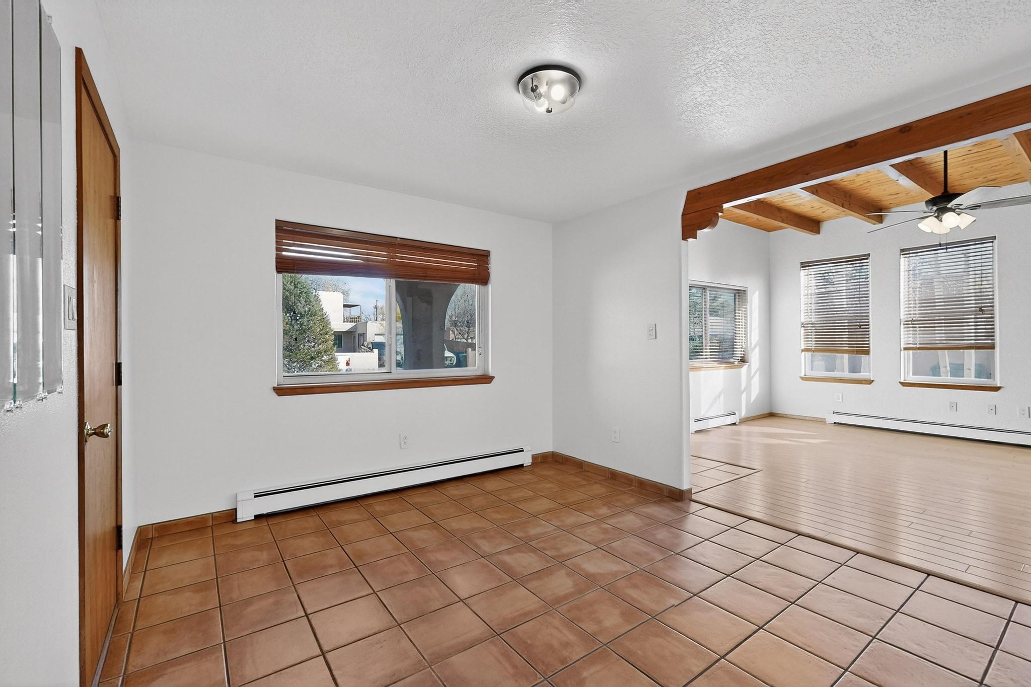 This home is filled with abundant natural light, creating a warm and inviting atmosphere throughout, making it a truly exceptional place you'll want to call your own. This property features 3 bedrooms PLUS an office. 2 full bathrooms, each with custom cabinets, beautifully tiled bathtubs and granite countertops. The living room boasts a cozy wood stove and high beamed tongue-and-groove ceilings, adding Santa Fe charm to the home. Retreat to the main bedroom suite, which offers its own fireplace and a private balcony with a mountain top view--ideal for unwinding after a long day. The kitchen is complete with a brand-new gas stove/oven, custom-made cabinets, granite countertops and tile backsplash. Step outside to enjoy the fully landscaped front and back yards, featuring tranquil water fountains and mature landscaping maintained with drip irrigation. The backyard also includes a flagstone covered portal, perfect for outdoor entertaining and relaxation. Home includes a one car finished garage, large storage shed and a laundry room with a large basin sink and ample upper cabinets. Tiled and wood flooring adds the extra touch.Don't miss the opportunity to make this exceptional property your new home!