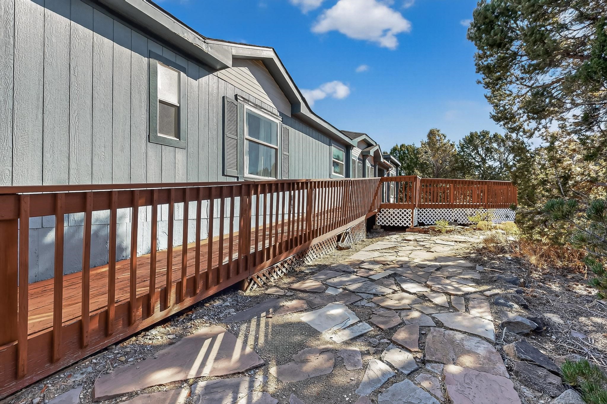 PRICED TO SELL - Discover the perfect blend of country living and modern convenience at 103 Hidden Valley Ranch Road, Ilfeld. The centerpiece of this expansive acreage is a well-maintained 2001 4 bedroom, 3 bath Oak Creek manufactured home, boasting a generous 2,418 square feet. This layout offers flexibility of living spaces with living room, family room, open concept kitchen, primary bedroom with adjacent study/large bathroom, split bedroom design with 3 additional bedrooms on the other end of the home. With 10.02 fully fenced acres at your disposal, the property is ideally suited for horse lovers, outdoor aficionados, hiking lovers, and star gazers. There is an existing small corral and a hitching post as in the past horses were present. Imagine waking up to the stunning sunrise over your own valley, with your horses grazing peacefully nearby. Additional features include marble window sills throughout, woodburning fireplace, large well house containing 2500 gallon storage tank servicing the private well, brand new GE refrigerator and electric stove/oven. Used washer, dryer, dishwasher, refrigerated air conditioning, 2 water heaters and flagstone patio with firepit and benches. Utilities are underground and fiber optic cable for fast internet are in place. For folks seeking a destination, rural property, please consider 103 Hidden Valley Ranch Road.