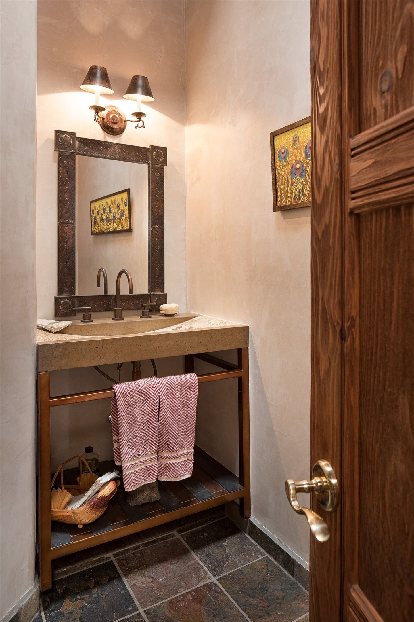Las Campanas- Beautiful Classic Santa Fe Style on an elevated homesite with Sangre de Cristo & Sandia mountain views! Plenty of room in the developable area to add a casita with easy access from the circle driveway. Approximately 4235 sq ft & an oversized 3 car garage w/ a lot of extra storage. Throughout the home find beautiful hard plastered walls, traditional treatments with vigas, latillas, & coved ceilings, wood & travertine stone floors. Primary suite with an exquisite bath w/ timeless Talivera Tile, 2 water closets, 2 vanities, a large tub and separate shower and 2 walk-in closets. Guest bedrooms are spacious, en-suite, all with doors to the outside courtyards. Handsome office with Kiva FP & built-in bookshelves. Expansive Great Room with a large fireplace and dining area, awash in natural light, flowing to the inviting kitchen w/ bar area & connected family room w/ FP & French doors opening to the back portal-sure to become one of your favorite spots-with Sangre mountain views & outdoor fireplace. Radiant in-floor heat & central forced air AC. This home has a prime location in Estate 2- close to the Santa Fe Plaza & shopping. Membership to the Club at Las Campanas is optional, it is an additional investment, by invitation, & handled through The Club. Amenities are numerous & World Class. Come see this blend of privacy, grace, and beauty! 24hr security & paramedics. Look at video!