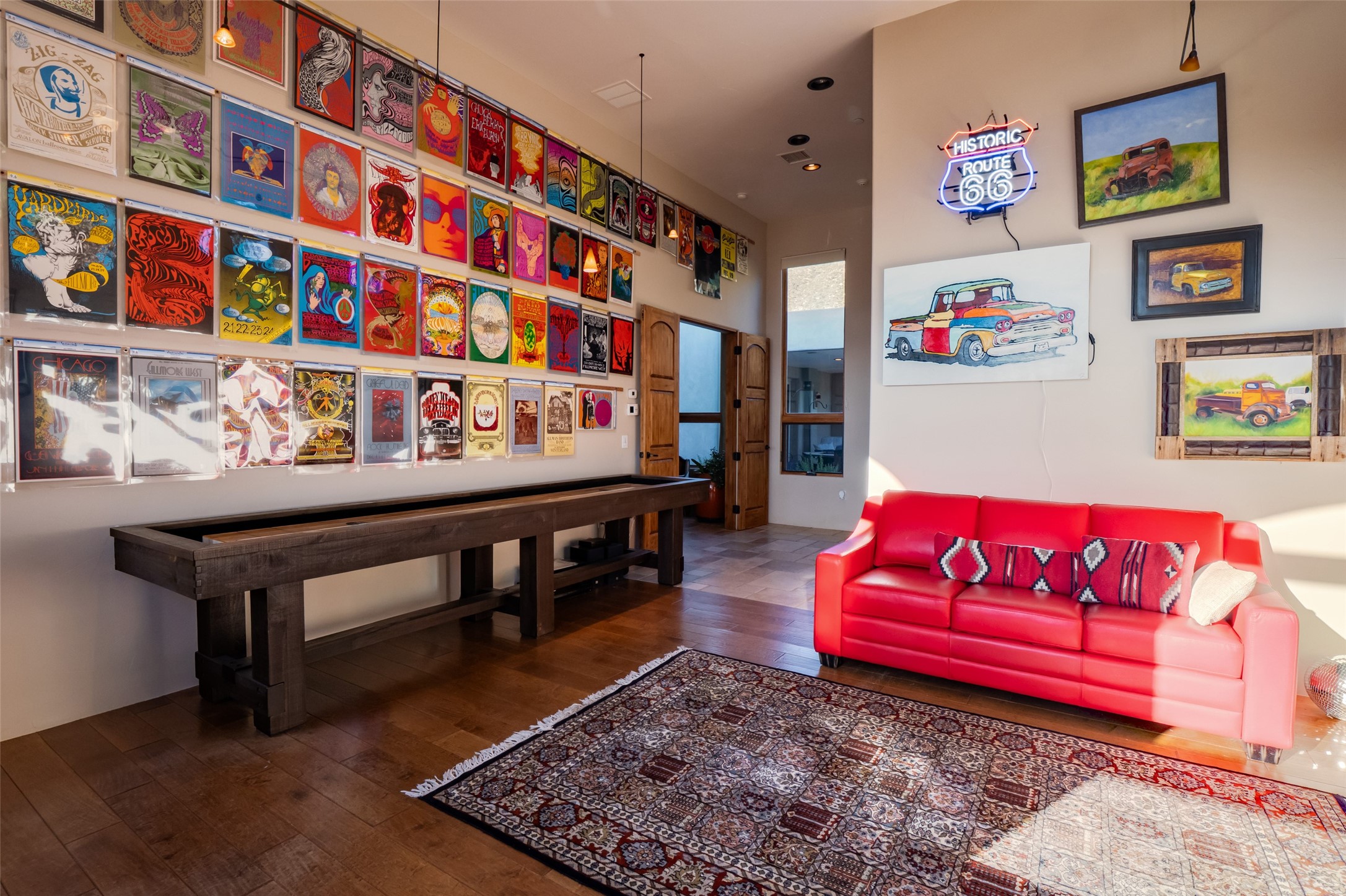Fronting to National Forest land with forever views of the sunsets, twinkling city light like a jewel box below and endless mesa tops beyond, the special retreat awaits. Custom built with special, quality materials, this home is special. Enter to a view of Sandia Peak and a private Zen garden. To your right, you will find a tremendous guest suite with a large sitting room or fun flex space with windows to enjoy the city lights, a bedroom with private bath with a no step walk-in shower and patio access. To your left from the entry, follow the travertine floors to a spacious kitchen with huge island, gas cooktop, double ovens, warming drawer, walk-in pantry w/dumb waiter to garage level, and generous dining area overlooking the mountains. In the southwest, our weather is so beautiful that the patios become some of our favorite rooms of the house! From the great room, access two patios, one with a fireplace and mounain views and one protected, private patio with garden view. This room includes a wood burning fireplace, scraped wood floors, soaring ceiling and plaster walls. In private wings you will find a luxurious primary suite with gas fireplace, sitting room or workout space, HUGE closet, patio access, and spa like bath with soaking tub, multi head shower, separate steam shower and access to outdoor hot tub to enjoy the starry night skies. In the opposite wing, find bedroom, bath, and second living area with endless vistas. Each bedroom wing includes a sitting rm beside which is great for multi-generational living. Oversized 3 car garage with storage. Owned solar panels. Geothermal heating and cooling. 1.19 acre lot with community water. Truly remarkable home.