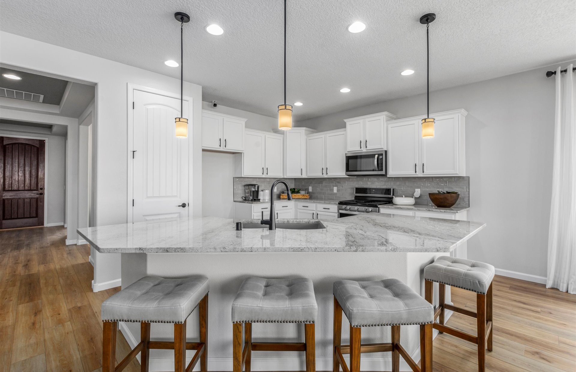 Welcome to this beautifully designed single-story home that blends comfort, function, and style. Featuring a thoughtful split-bedroom layout, this cozy home features 3 bedrooms, 2 baths and a spacious 2.5 car tandem garage. The open-concept kitchen features a large island, upgraded 42" cabinets, and gorgeous granite countertops. Beautiful tile flooring throughout . Enjoy the Santa Fe weather on the covered patio in back. You will love this home!