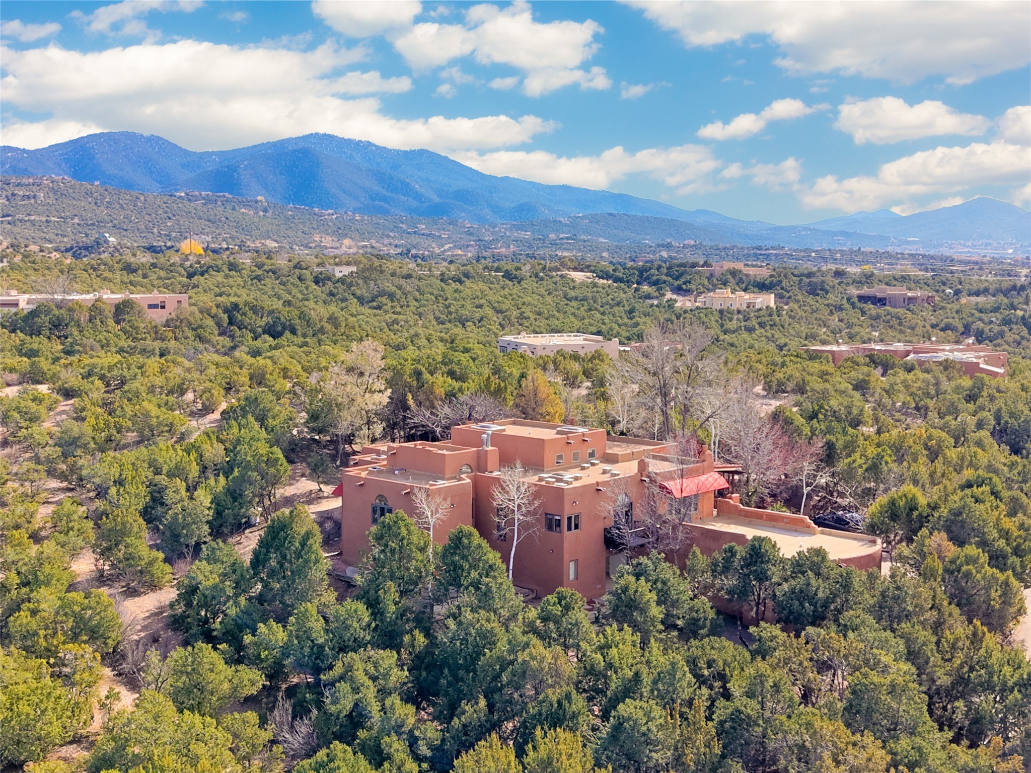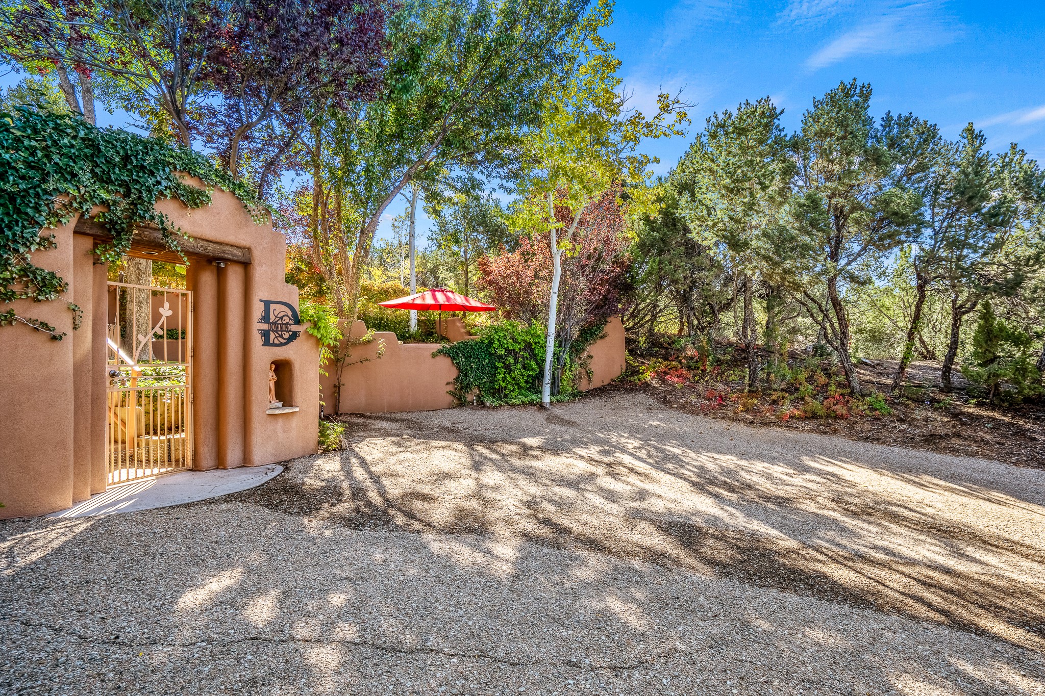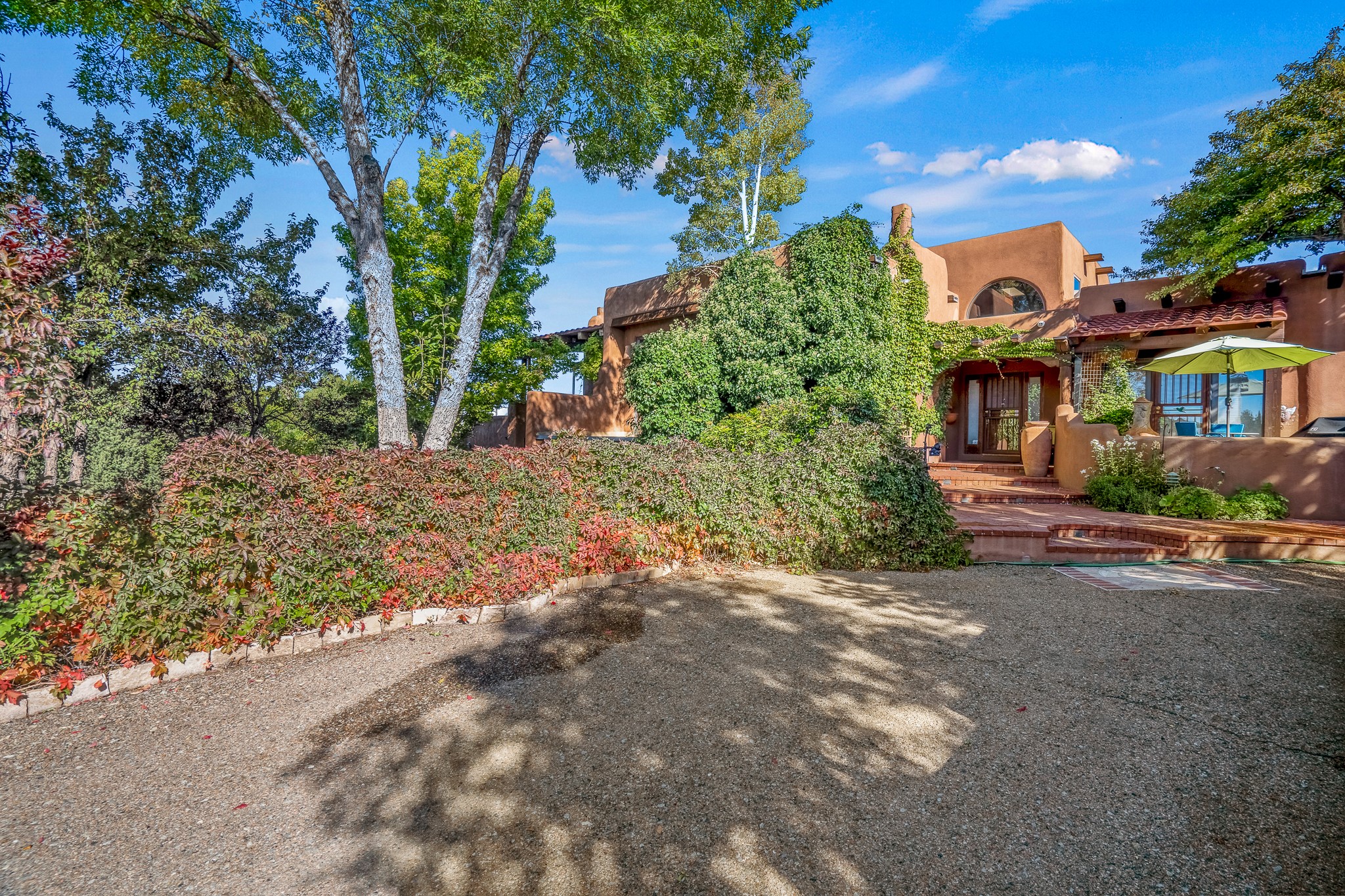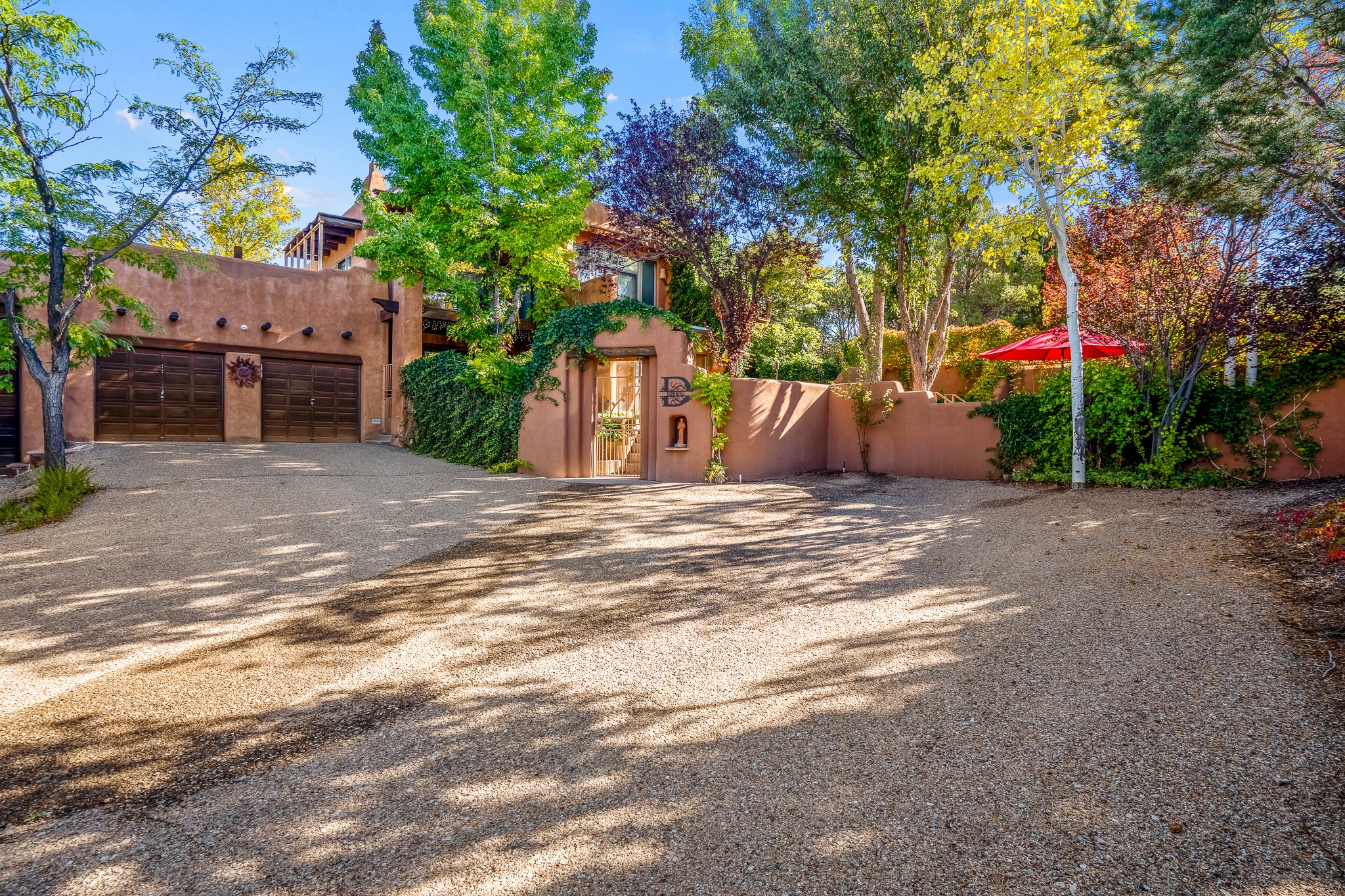 This is a fabulous opportunity to live in a great area and location of the NE side of town that is just minutes to the Plaza and downtown area. Fabulous and long westerly views which includes a beautiful main house, attached guest house, plus attached studio. A large RV Garage plus 3 additional garage bays and lots of additional parking spaces. Private Security entry gate. This home does need some minimal TLC to make it the pristine and cozy home that it is now. The natural light that it has is rarely found in many homes and adds so much to it's charm and character. Easy fit for an on the go professional couple, artist, crafts person, gardener, writer and certainly perfect for entertaining, On City water and has its own Private Well on site.