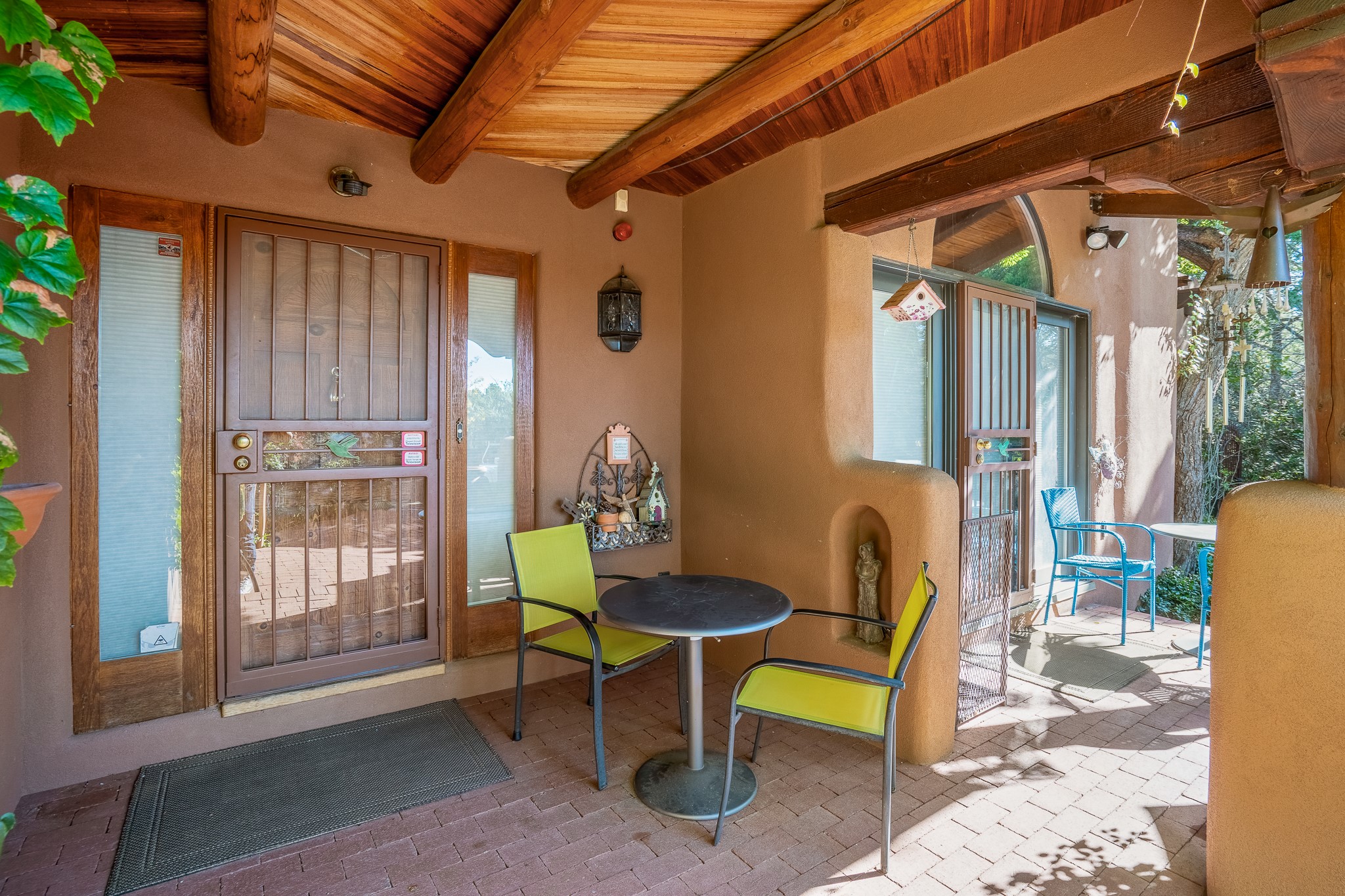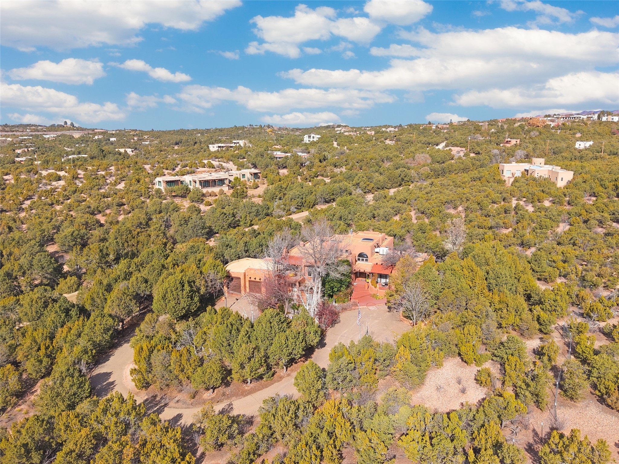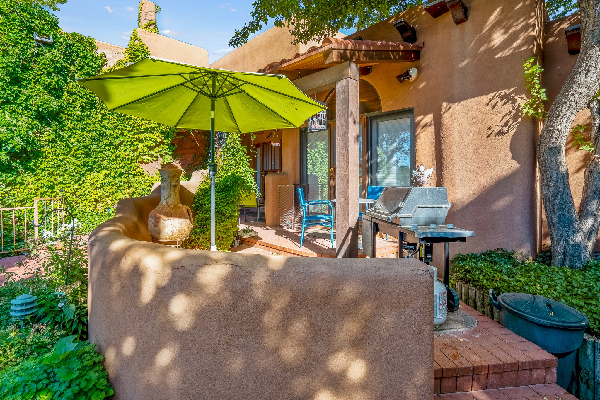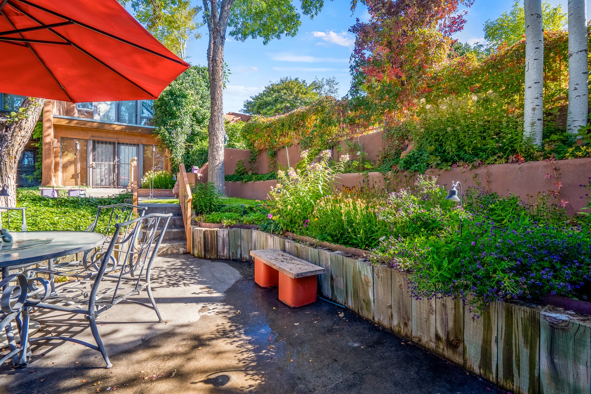 This is a fabulous opportunity to live in a great area and location of the NE side of town that is just minutes to the Plaza and downtown area. Fabulous and long westerly views which includes a beautiful main house, attached guest house, plus attached studio. A large RV Garage plus 3 additional garage bays and lots of additional parking spaces. Private Security entry gate. This home does need some minimal TLC to make it the pristine and cozy home that it is now. The natural light that it has is rarely found in many homes and adds so much to it's charm and character. Easy fit for an on the go professional couple, artist, crafts person, gardener, writer and certainly perfect for entertaining, On City water and has its own Private Well on site.