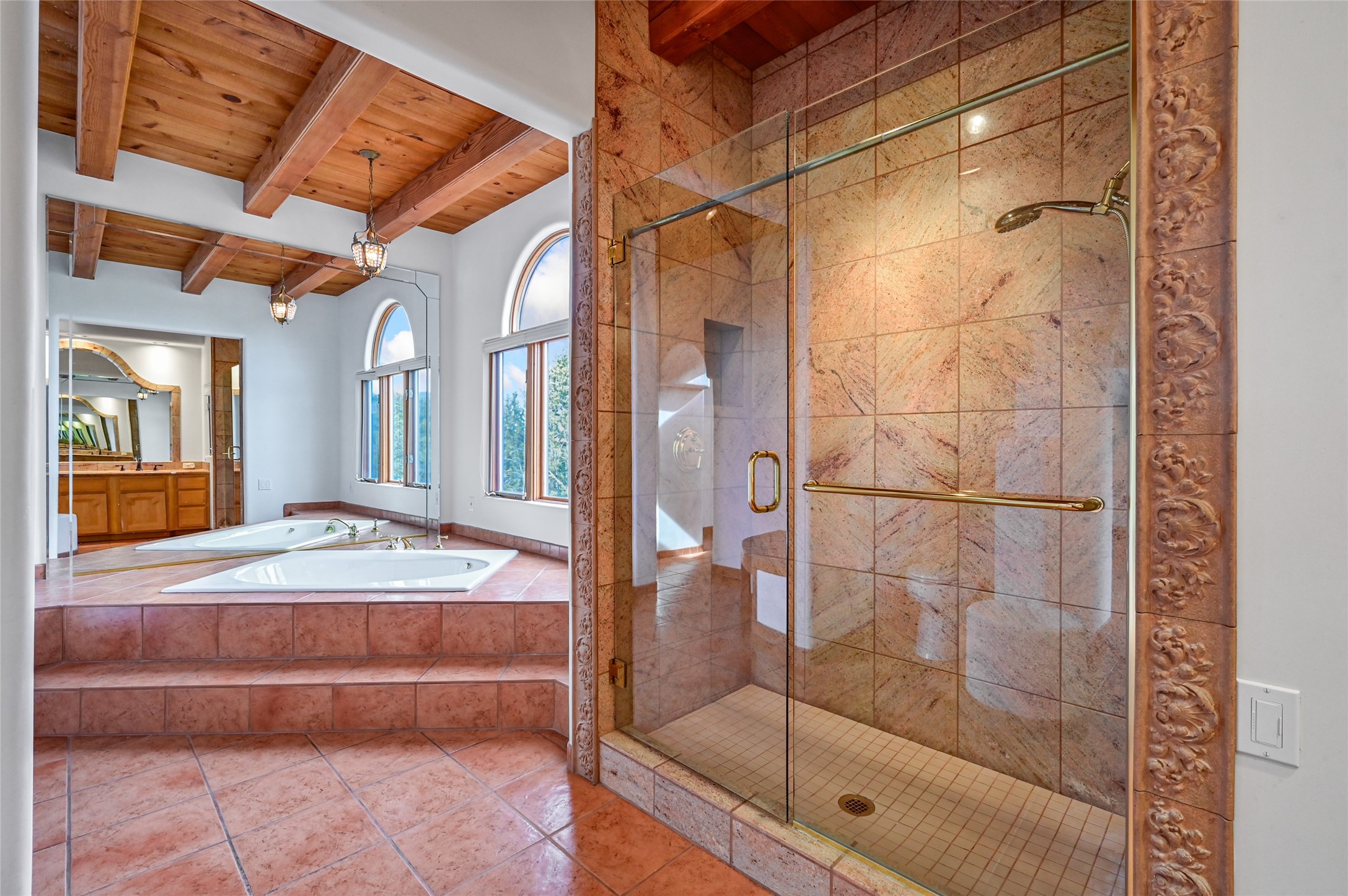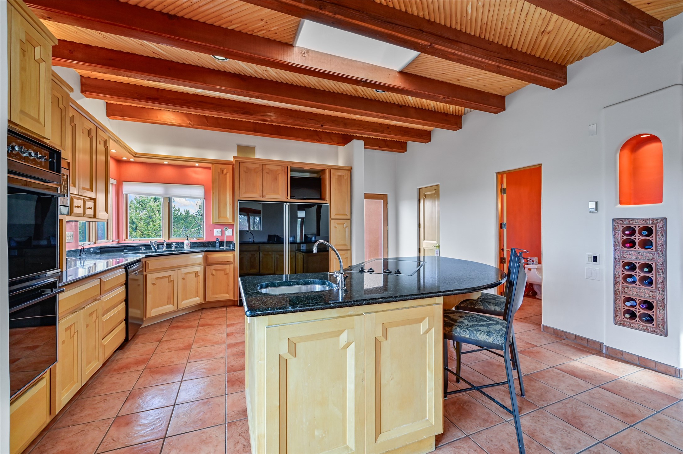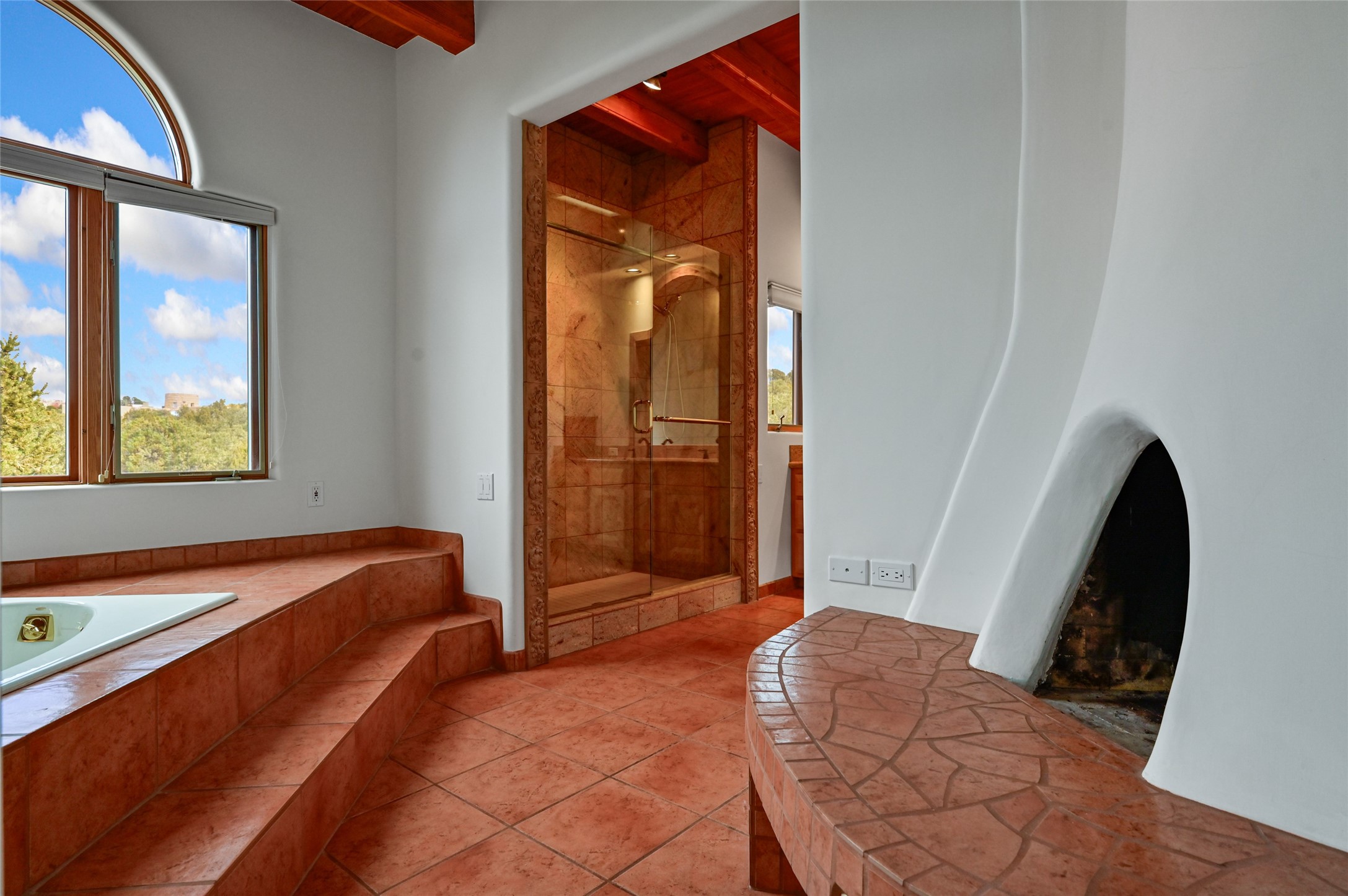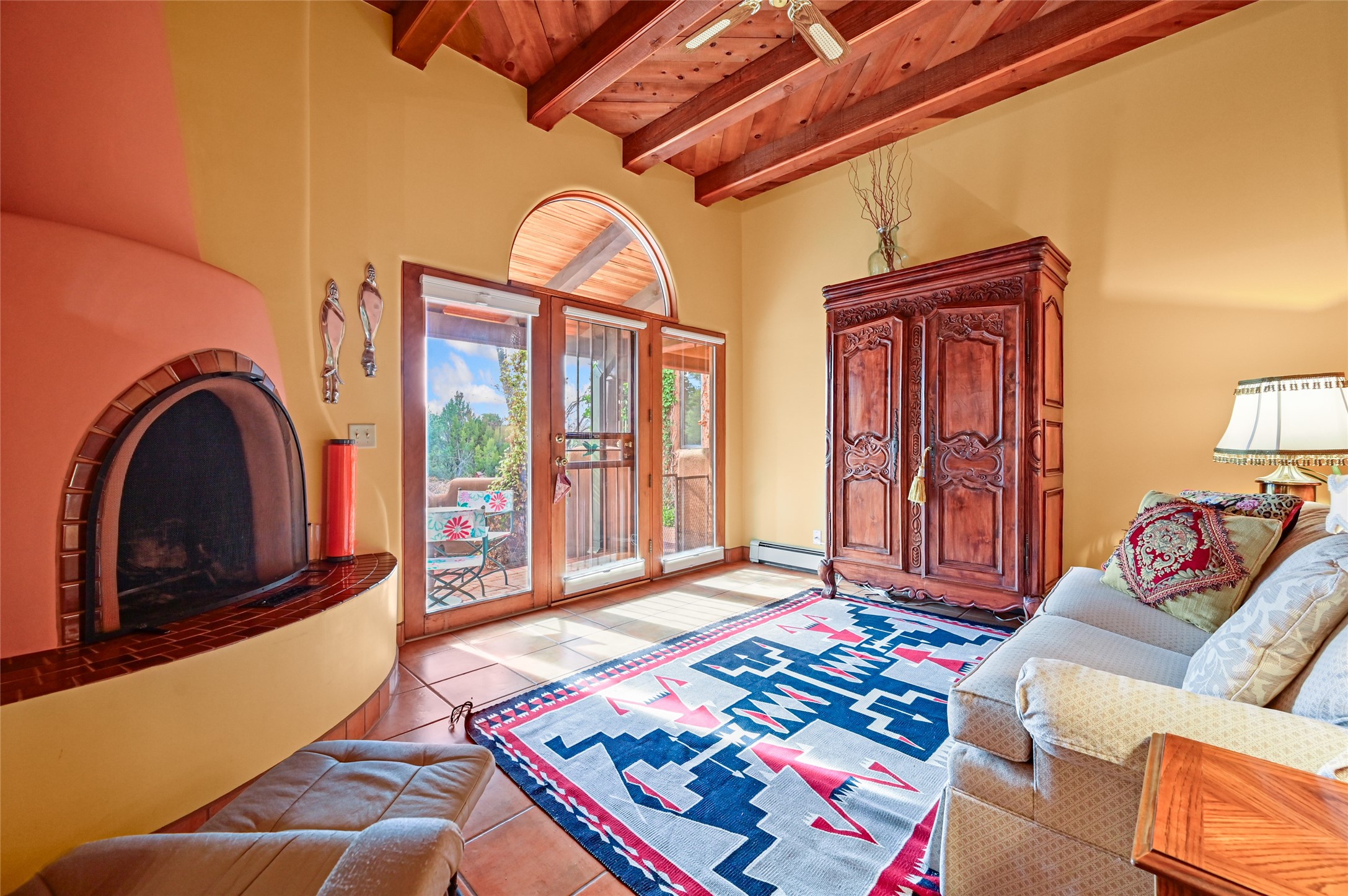 This is a fabulous opportunity to live in a great area and location of the NE side of town that is just minutes to the Plaza and downtown area. Fabulous and long westerly views which includes a beautiful main house, attached guest house, plus attached studio. A large RV Garage plus 3 additional garage bays and lots of additional parking spaces. Private Security entry gate. This home does need some minimal TLC to make it the pristine and cozy home that it is now. The natural light that it has is rarely found in many homes and adds so much to it's charm and character. Easy fit for an on the go professional couple, artist, crafts person, gardener, writer and certainly perfect for entertaining, On City water and has its own Private Well on site.