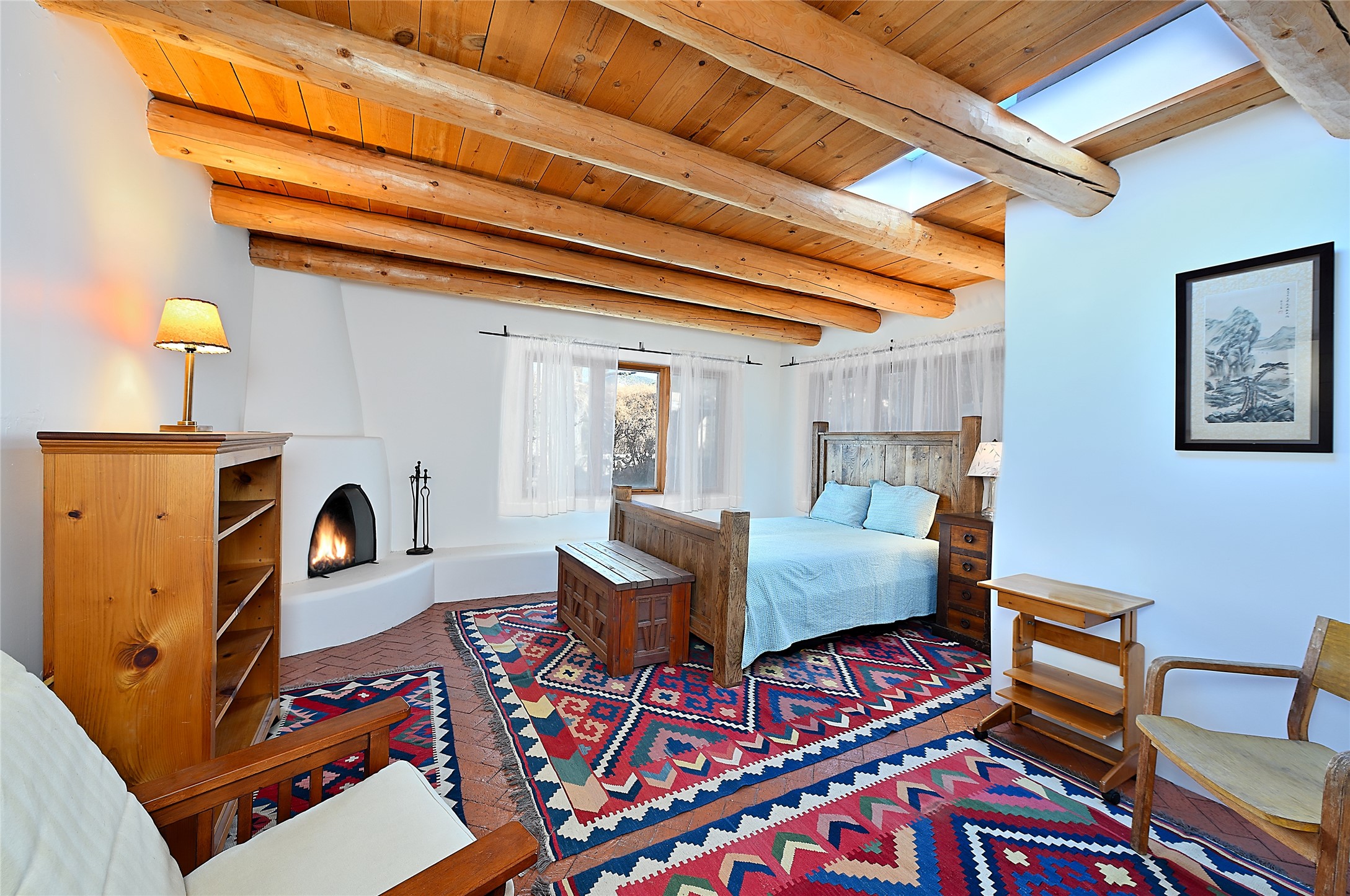 A gated driveway leads to wide pastoral views, with a open Sangre de Cristo mountain backdrop. The french doors and widow banks intake outside''s grandeur within quiet adobe walls. It's a pleasant, short stroll on "The Camino" to Canyon Road, plus all that downtown Santa Fe has to offer. Prime location with authentic Santa Fe style.
