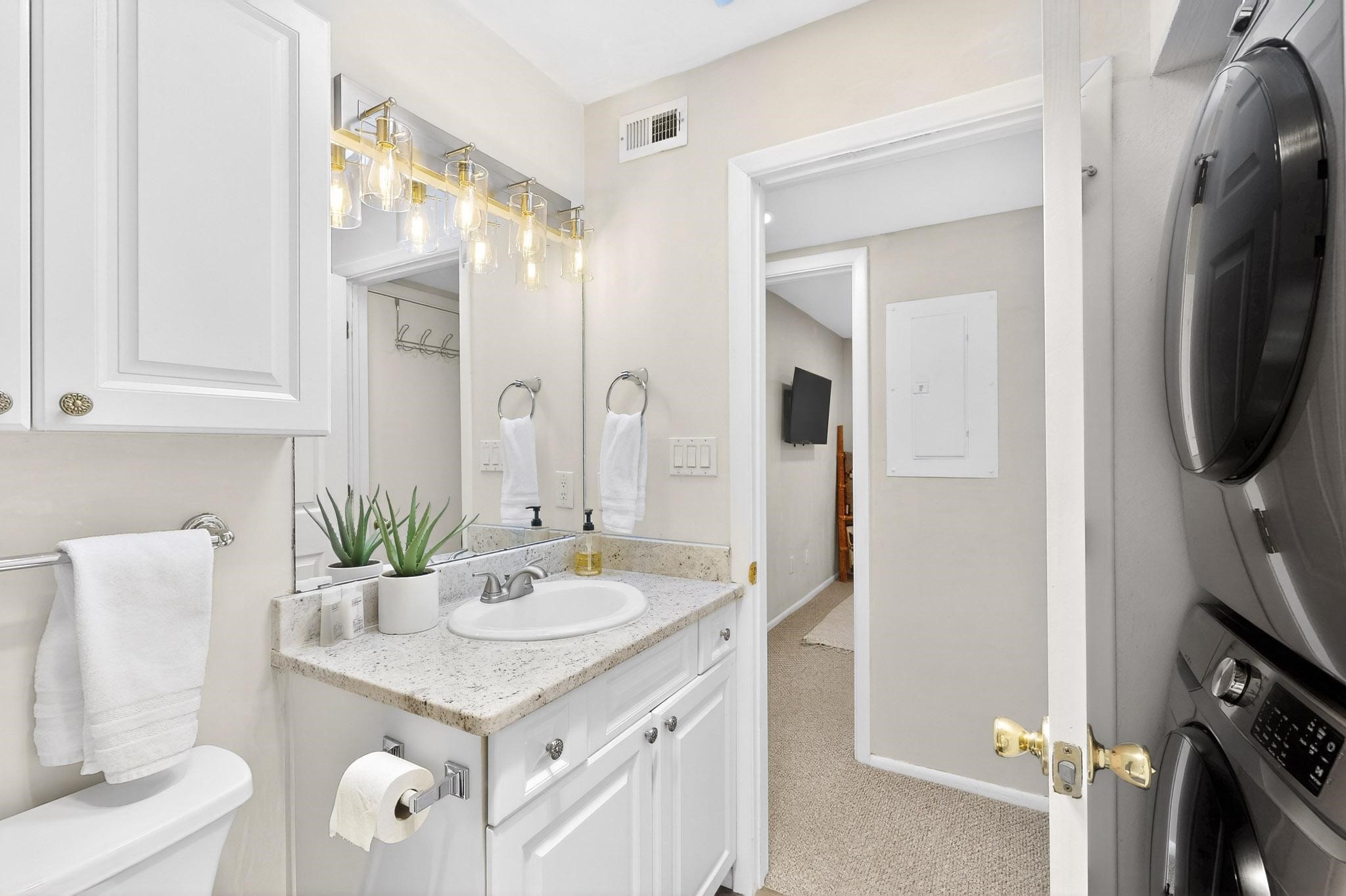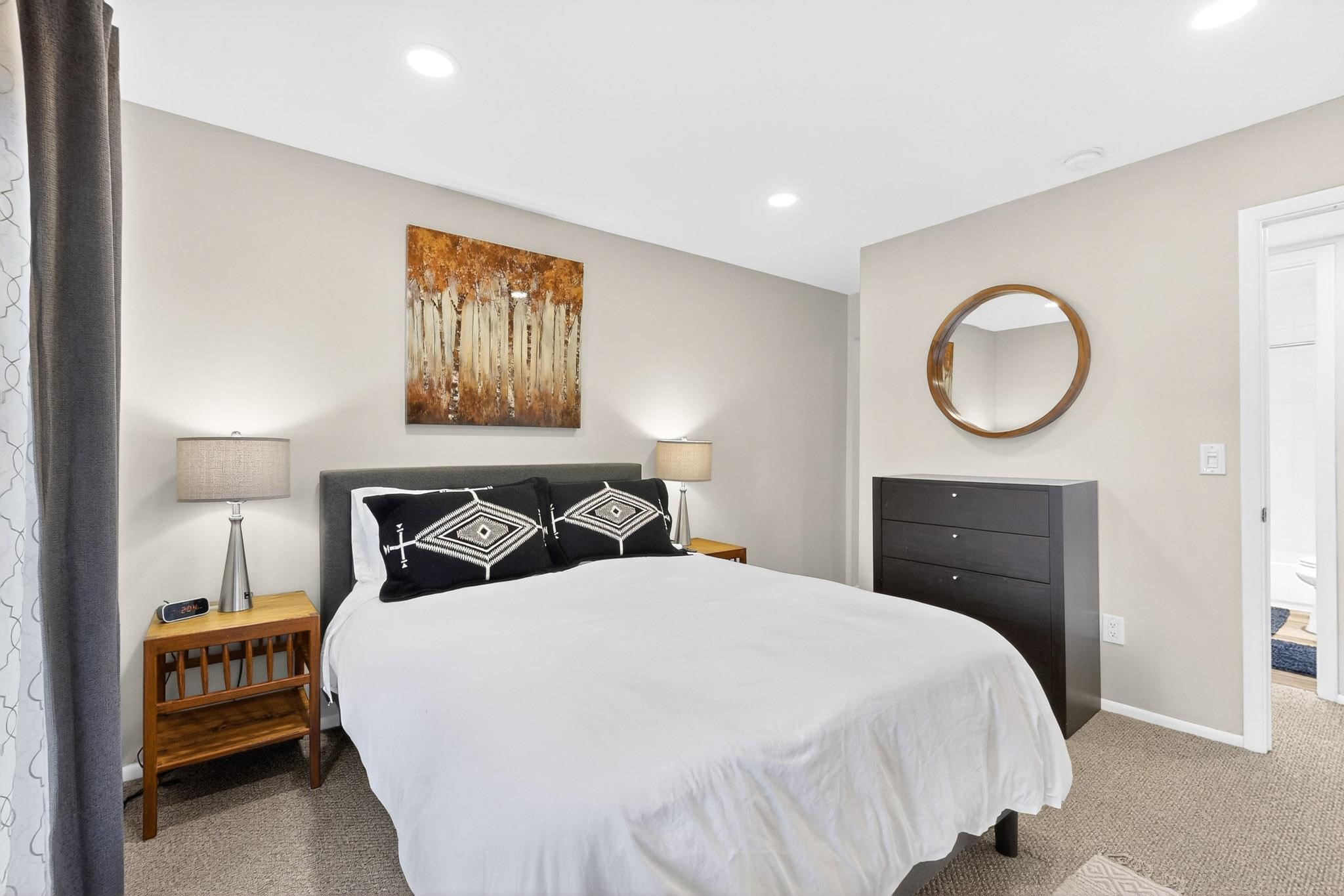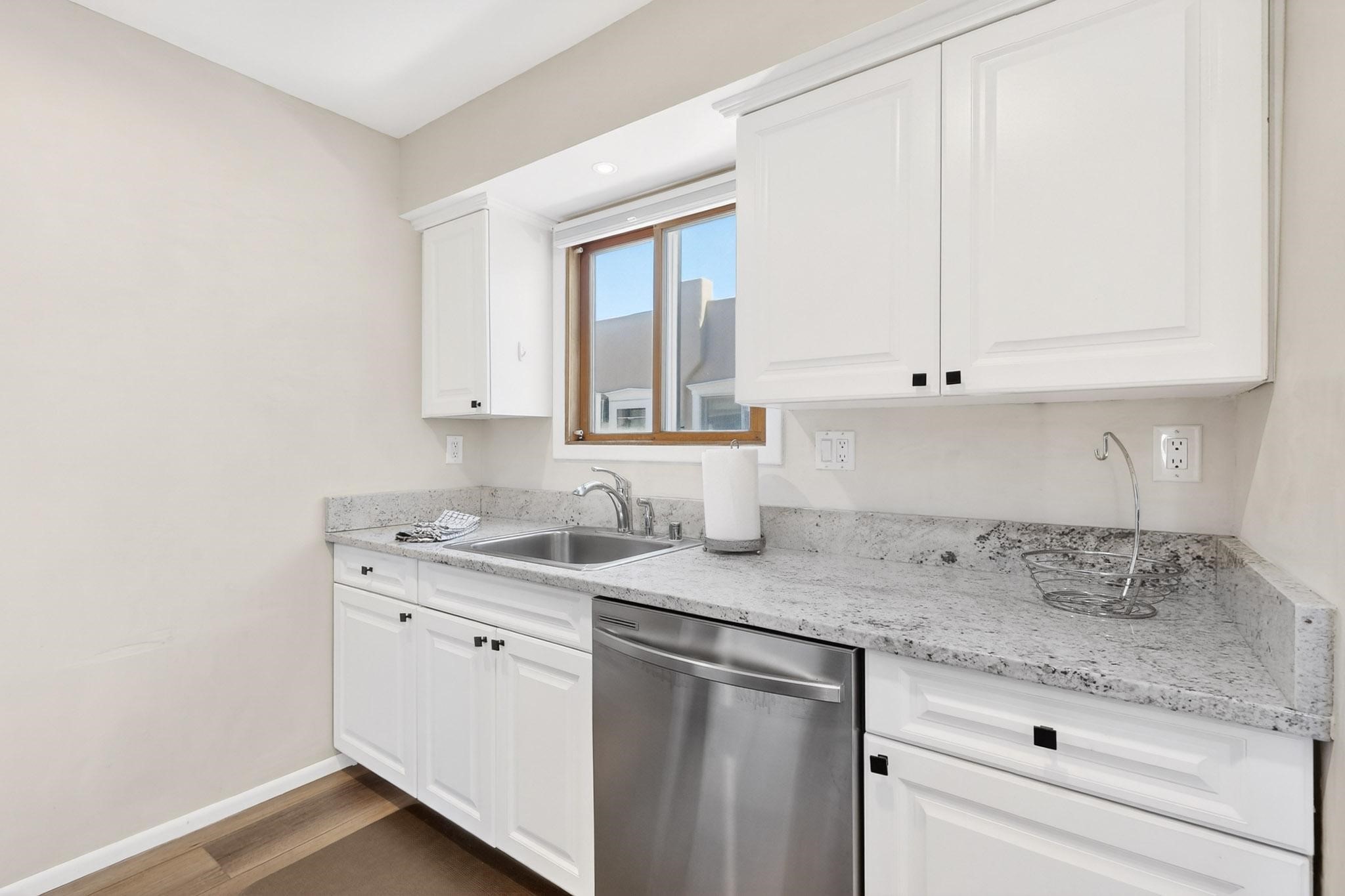 Just in time for the holidays in Santa Fe! Ideally located just six blocks from the Santa Fe Plaza, this spacious one-bedroom, one-bath condominium offers rare walkability paired with privacy and quiet. Situated on the second floor at the back of the complex, this corner unit enjoys a peaceful setting along with a covered, dedicated parking space. Thoughtfully upgraded throughout, the home features granite countertops, stainless steel appliances, new wood flooring in the kitchen and bath, diamond plaster walls, and updated lighting. Built-in bookcases flank the cozy gas fireplace, adding both charm and function. French doors open to a tranquil patio with two private storage closets, creating an inviting indoor-outdoor flow. Additional highlights include central heating and air conditioning, a second balcony, and an HOA that covers exterior maintenance, landscaping, and gated security, making this an easy full-time residence or a perfect Santa Fe lock-and-leave. A furniture package is available with a satisfactory offer, allowing for a seamless move-in experience.