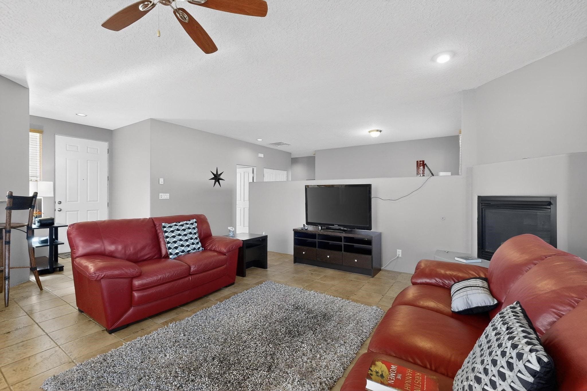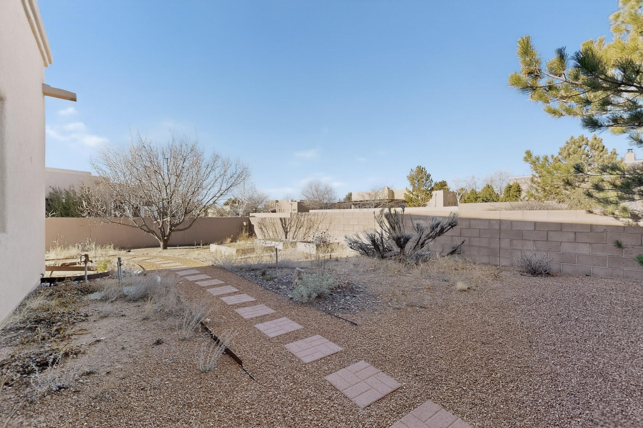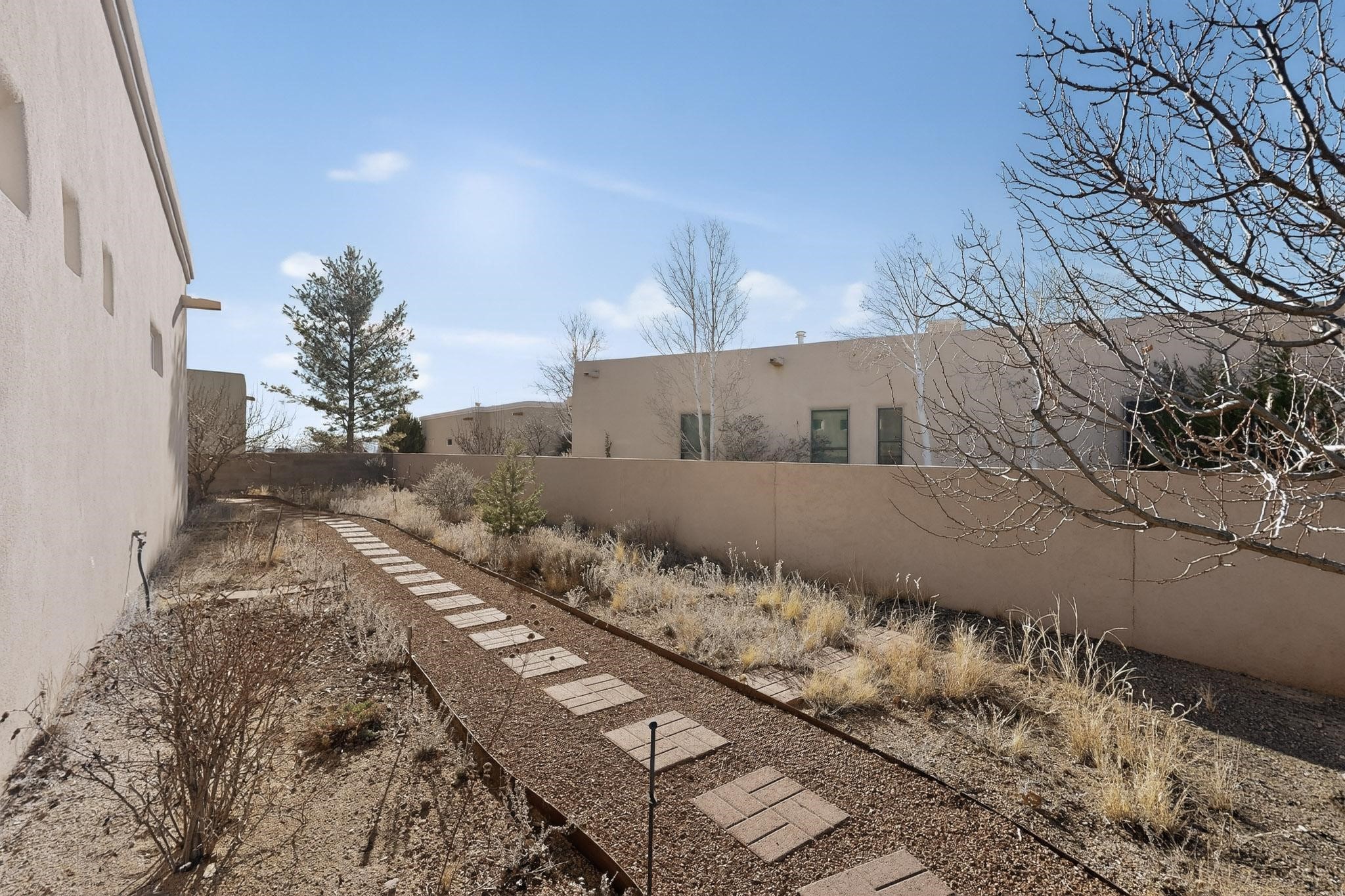 Welcome to this delightful single-level home, thoughtfully cared for and gently lived in. As you step into the inviting foyer, you'll be greeted by an open, airy layout that immediately creates a sense of warmth and comfort. The living area offers a cozy fireplace and a view to the back patio, making it the perfect spot to unwind and enjoy your time at home. The home's neutral color palette compliments tile flooring throughout the main spaces. Adjacent to the living area, you'll find a flexible office or den, ideal for working from home or relaxing with a good book. Home has two well-separated bedrooms plus an office or sitting room. The spacious kitchen features a cozy eat-in nook, perfect for casual meals and morning coffee. Step outside to the beautifully landscaped, low-maintenance yard. The private patio offers a serene outdoor retreat to savor wonderful summer days and evenings. Conveniently located to Santa Fe Community College, dining and shopping amenities. Just a short drive to Highway 599--this location is perfect for commuters to Los Alamos. Santa Fe Downtown Plaza is only about 20 minutes away.