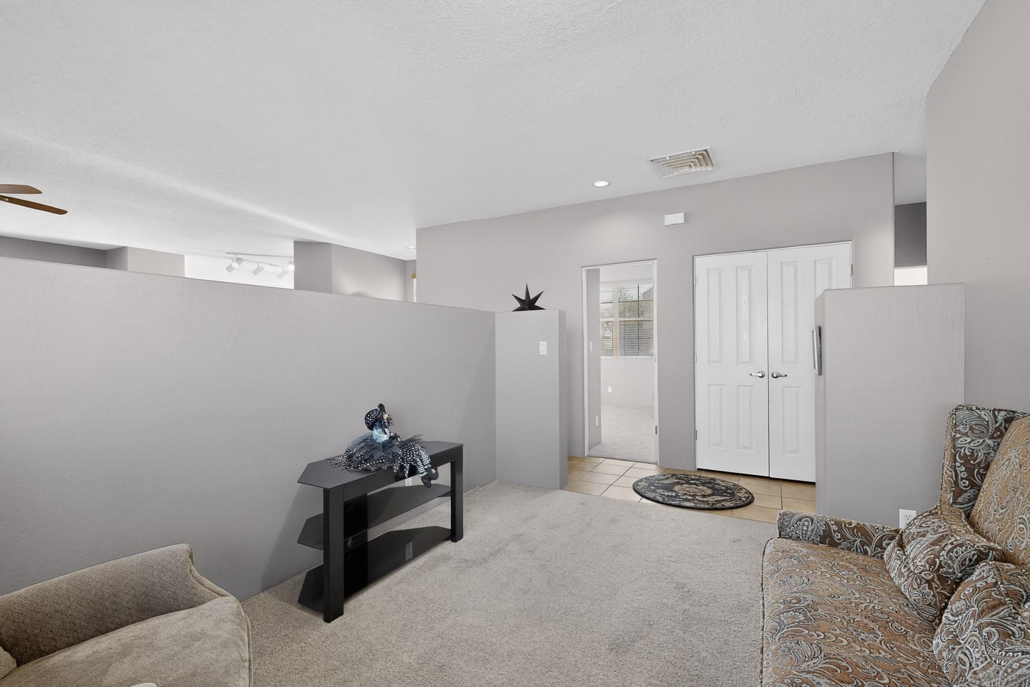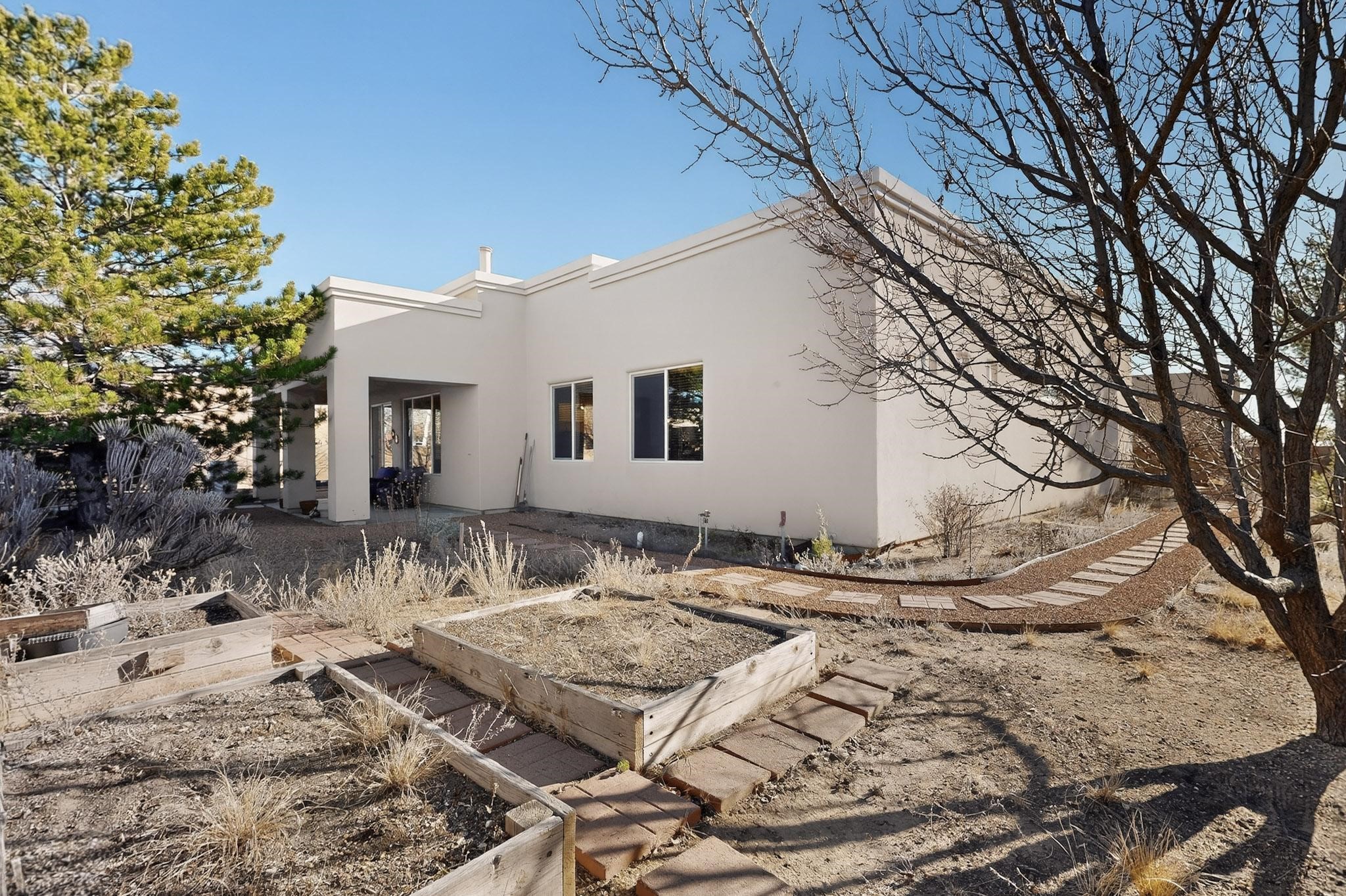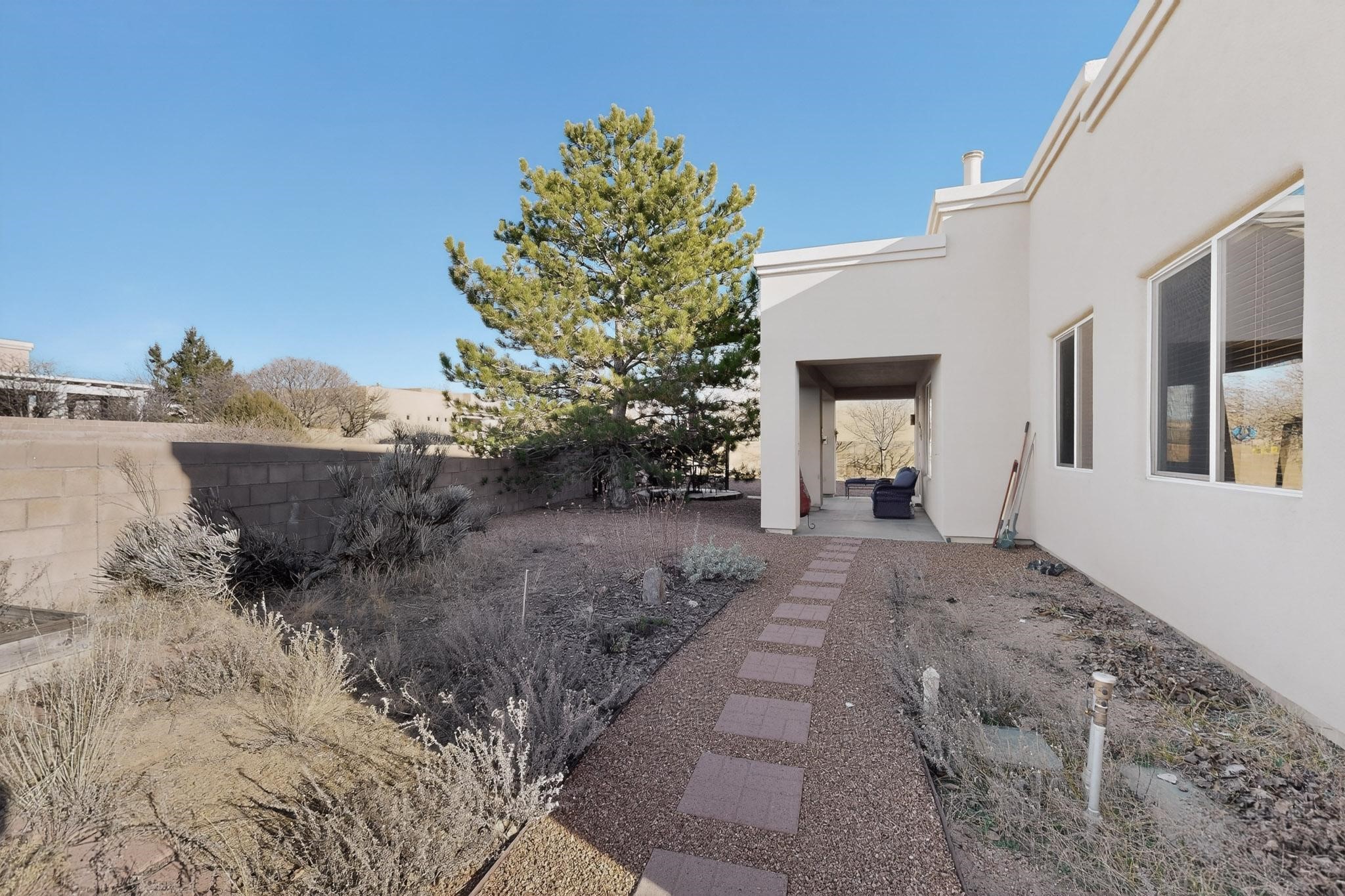 Welcome to this delightful single-level home, thoughtfully cared for and gently lived in. As you step into the inviting foyer, you'll be greeted by an open, airy layout that immediately creates a sense of warmth and comfort. The living area offers a cozy fireplace and a view to the back patio, making it the perfect spot to unwind and enjoy your time at home. The home's neutral color palette compliments tile flooring throughout the main spaces. Adjacent to the living area, you'll find a flexible office or den, ideal for working from home or relaxing with a good book. Home has two well-separated bedrooms plus an office or sitting room. The spacious kitchen features a cozy eat-in nook, perfect for casual meals and morning coffee. Step outside to the beautifully landscaped, low-maintenance yard. The private patio offers a serene outdoor retreat to savor wonderful summer days and evenings. Conveniently located to Santa Fe Community College, dining and shopping amenities. Just a short drive to Highway 599--this location is perfect for commuters to Los Alamos. Santa Fe Downtown Plaza is only about 20 minutes away.