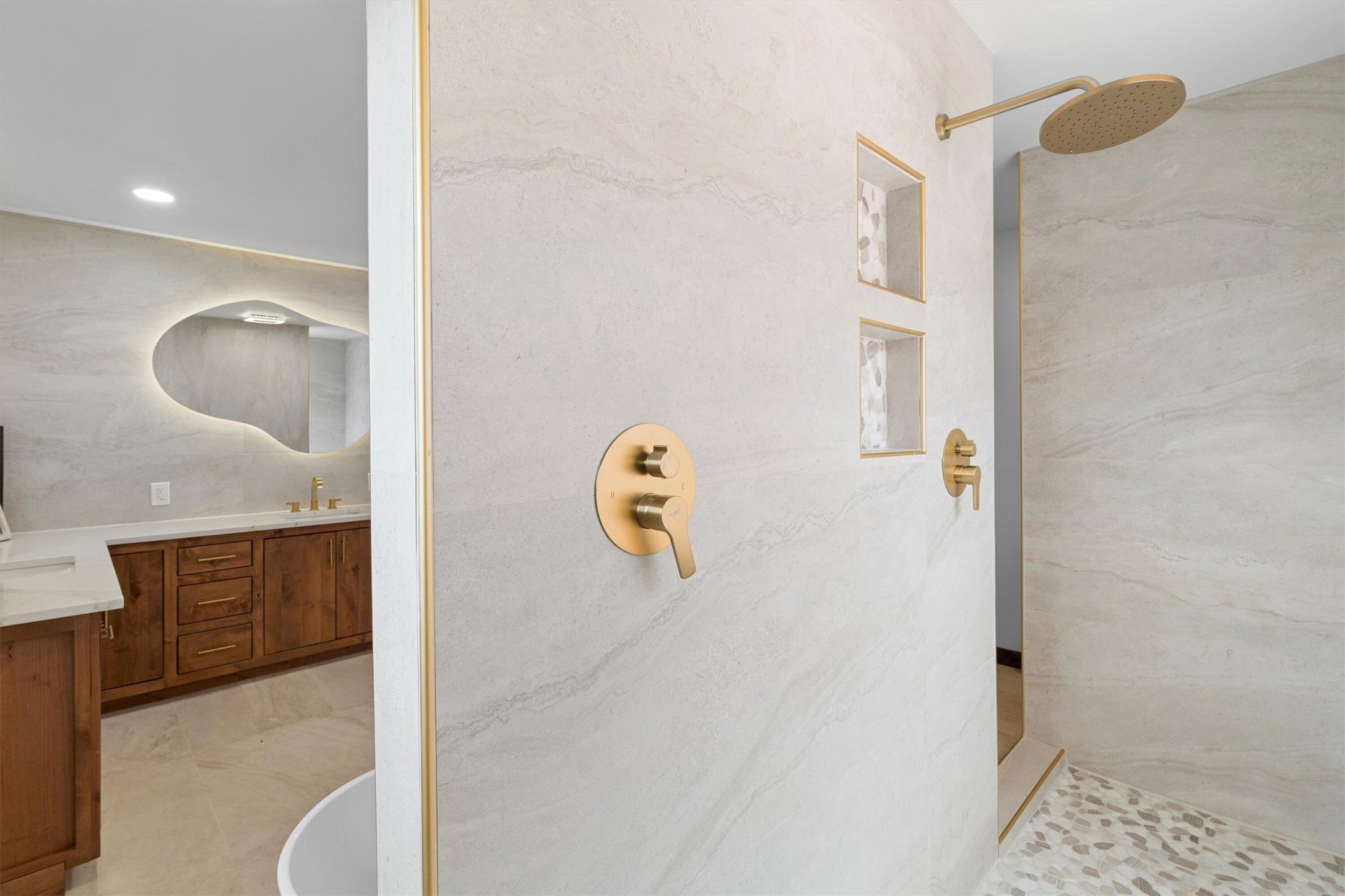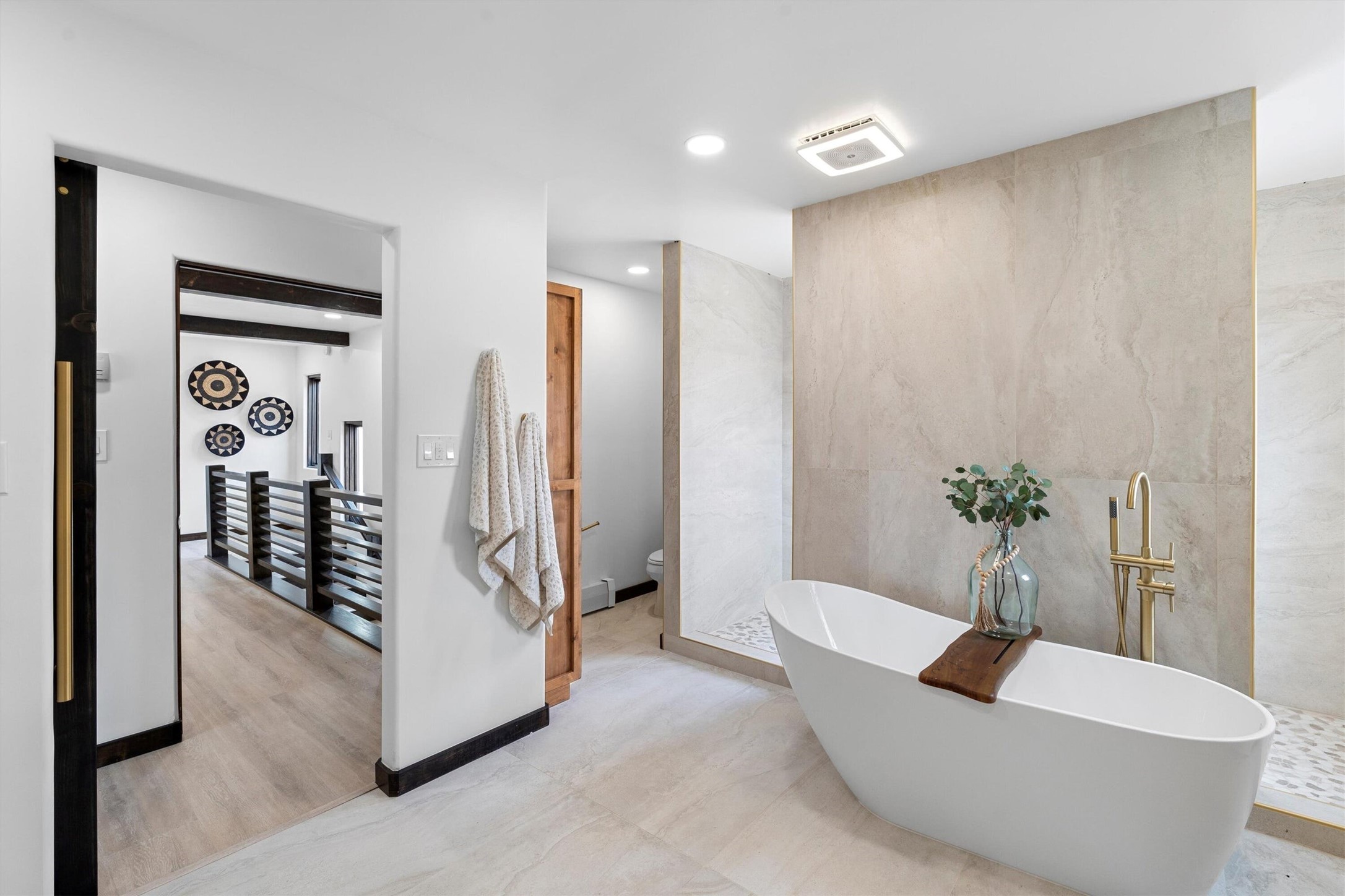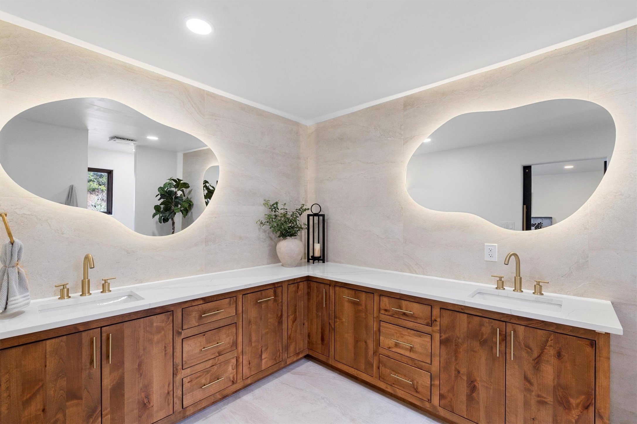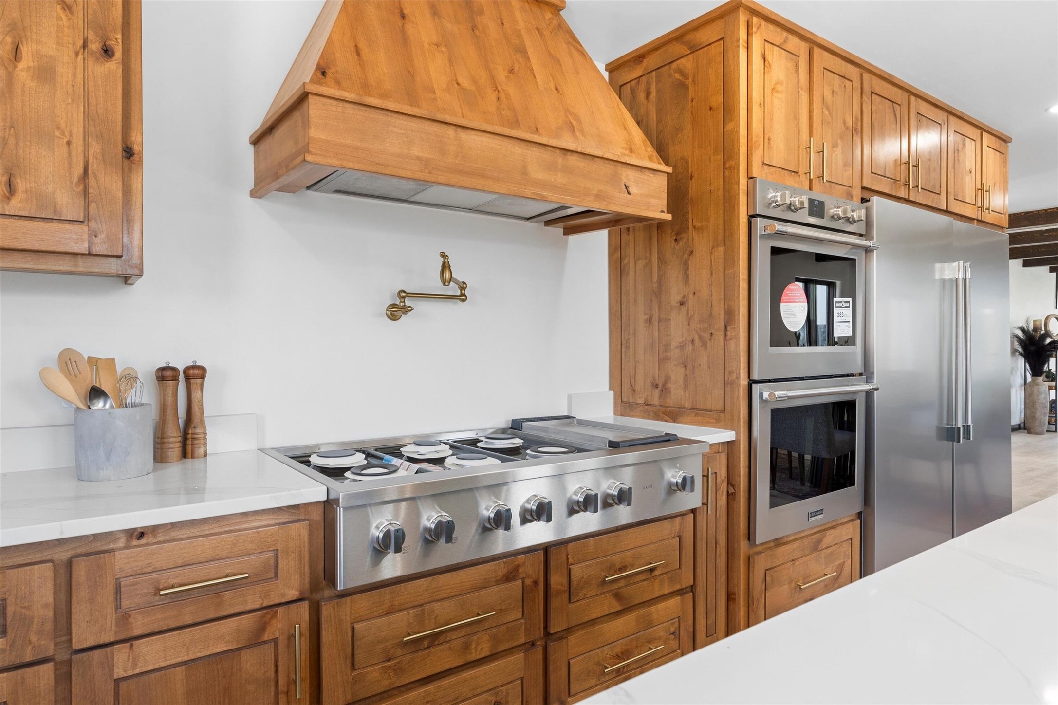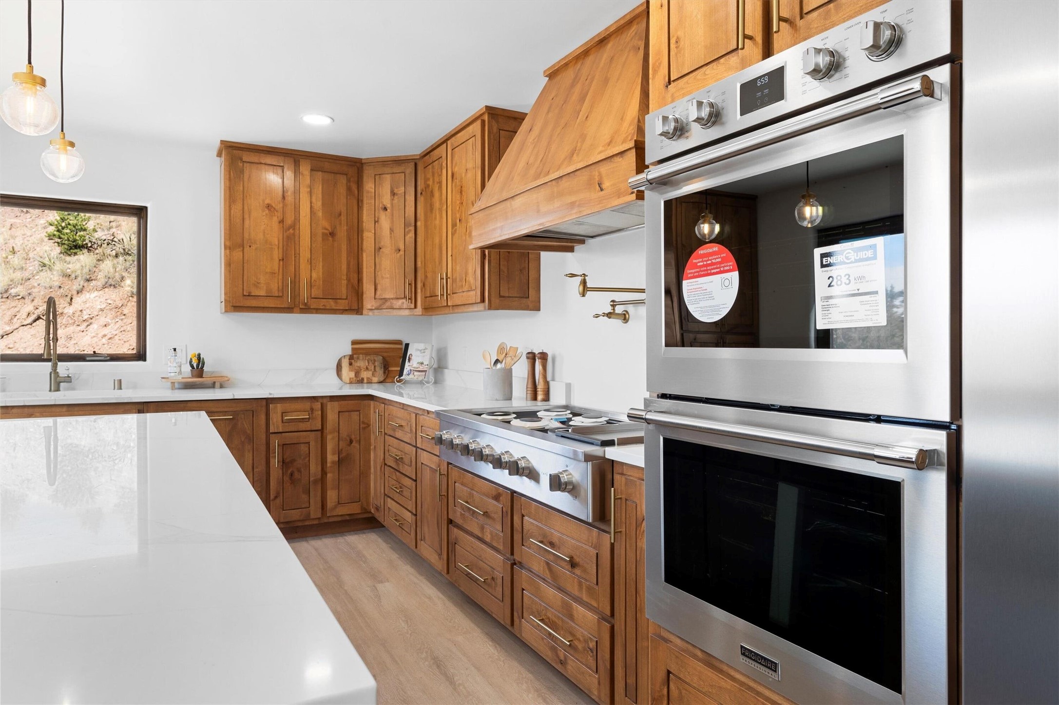 This updated Southwest-style home is waiting for you! Step inside to discover a stunning custom-built gourmet kitchen featuring a generous 8-foot island and elegant quartz countertops, complete with all-new stainless steel appliances. The home showcases beautiful vigas throughout and offers an open living space highlighted by a cozy Kiva gas fireplace, perfect for relaxation or as a flexible area tailored to your needs. French doors lead to an inviting open patio, where you can soak in breathtaking views of the Jemez Mountains. This residence boasts two primary suites, each with spacious walk-in closets, and a convenient stackable washer and dryer located in the main primary bedroom closet in addition to the large laundry room located on the first floor.Each full bathroom is designed with double vanities, custom knotty alder cabinets, and stylish LED-lit vanity mirrors. Enjoy the convenience of a laundry chute on the second floor and an attached two-car garage, with ample parking available for guests on both the upper and lower levels. Best feature is the new stone paved private driveway!Situated in a prime location, this home is adjacent to the renowned Bishops Lodge Resort, Spa, and Horse Stables, offering an unparalleled lifestyle of comfort and leisure. Geotechnical report available to your realtor.