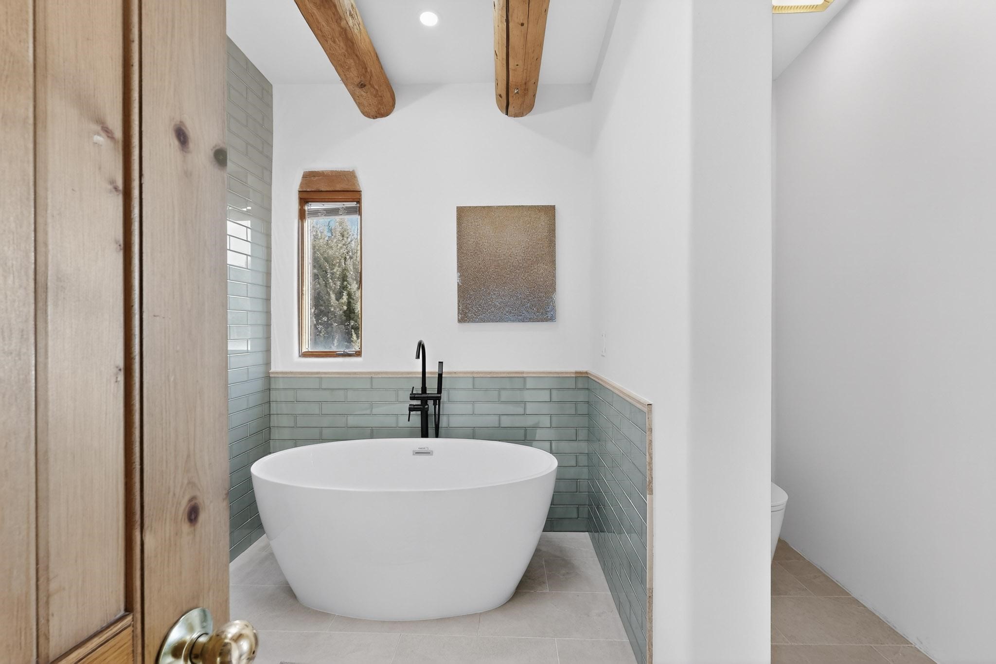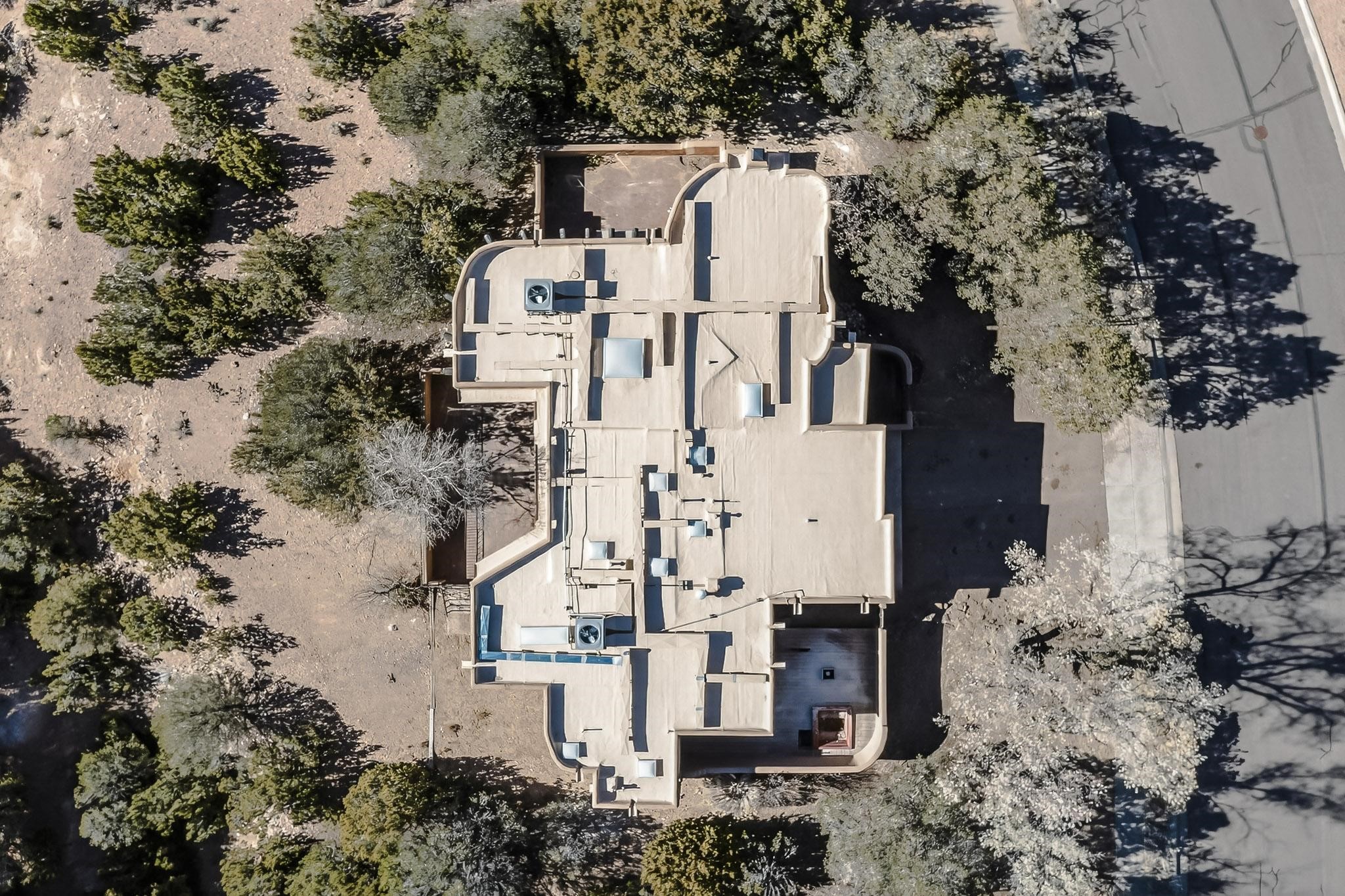 Commanding an elevated position in one of Santa Fe's most coveted locations, this impeccably reimagined residence offers a rare blend of refined luxury, privacy, and inspiring views. Thoughtfully curated for sophisticated living, the home features three bedrooms--or two bedrooms plus a private office--and three beautifully appointed bathrooms, ideal for both gracious entertaining and serene everyday comfort. The interior has been extensively and meticulously remodeled, showcasing new hardwood flooring throughout, a chef's kitchen adorned with custom cabinetry, quartz countertops, and a full suite of new, high-end appliances, and spa-inspired bathrooms finished with contemporary materials and elegant detailing. The result is a timeless, light-filled interior that seamlessly balances modern design with Santa Fe's distinctive character. There is a new HVAC system, forced air heating and central AC, to provide year round comfort. There is an outlet for your EV charging center in the garage. This turnkey property in an exceptional location with understated sophistication represents a distinguished offering in the Santa Fe market.