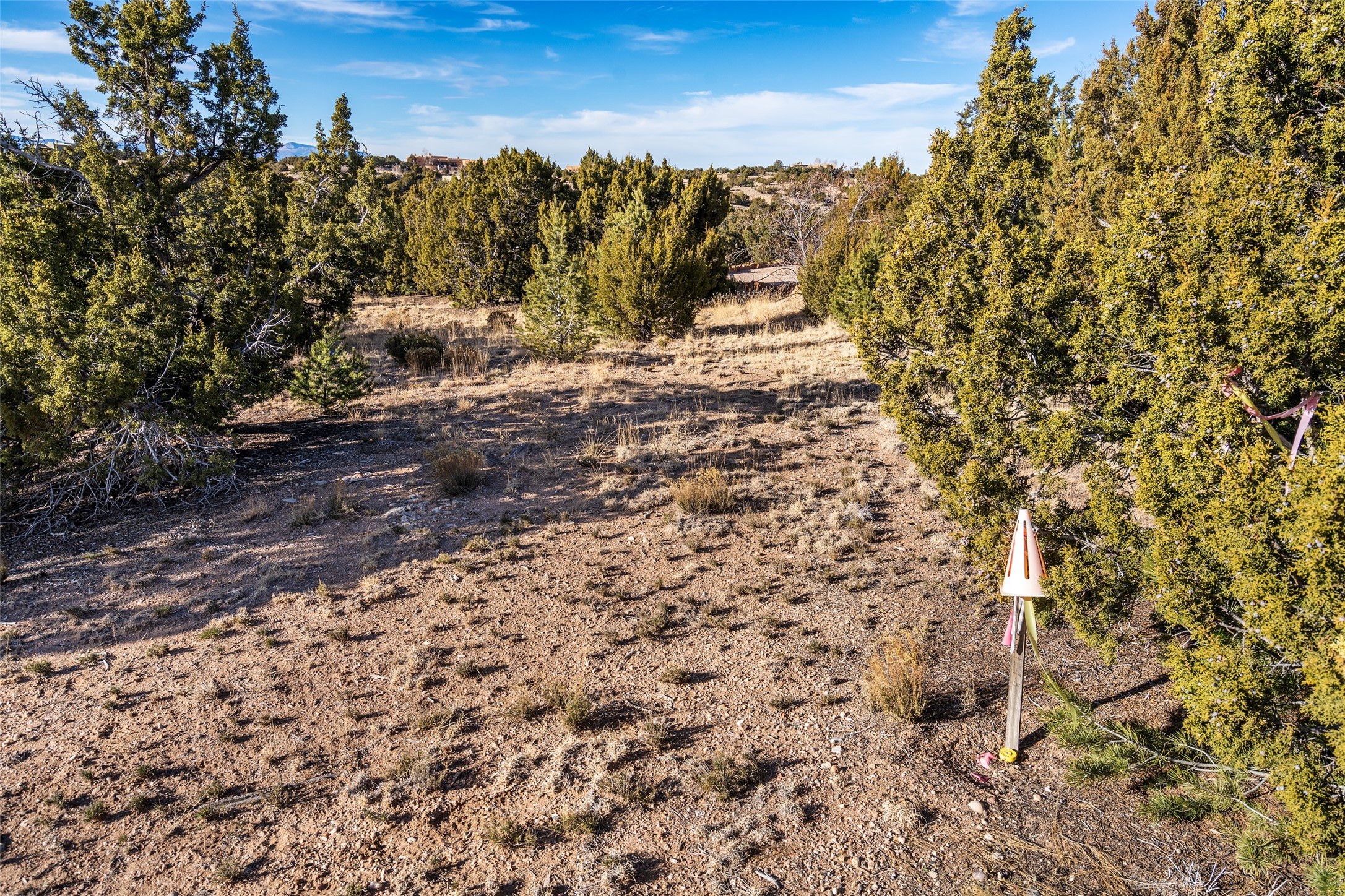 This gorgeous 2.5 acres plot sits at the end of quiet cul de sac and features a gentle slope and panoramic views of the Jemez mountains to the west and the Sangre de Cristos to the east. Serene and tranquil, yet only minutes from downtown- this lot is an ideal location to build your dream home.Price includes a membership to the much desired Las Campanas Country Club. There is a Newly installed transformer on site. No HOA. Shared well.