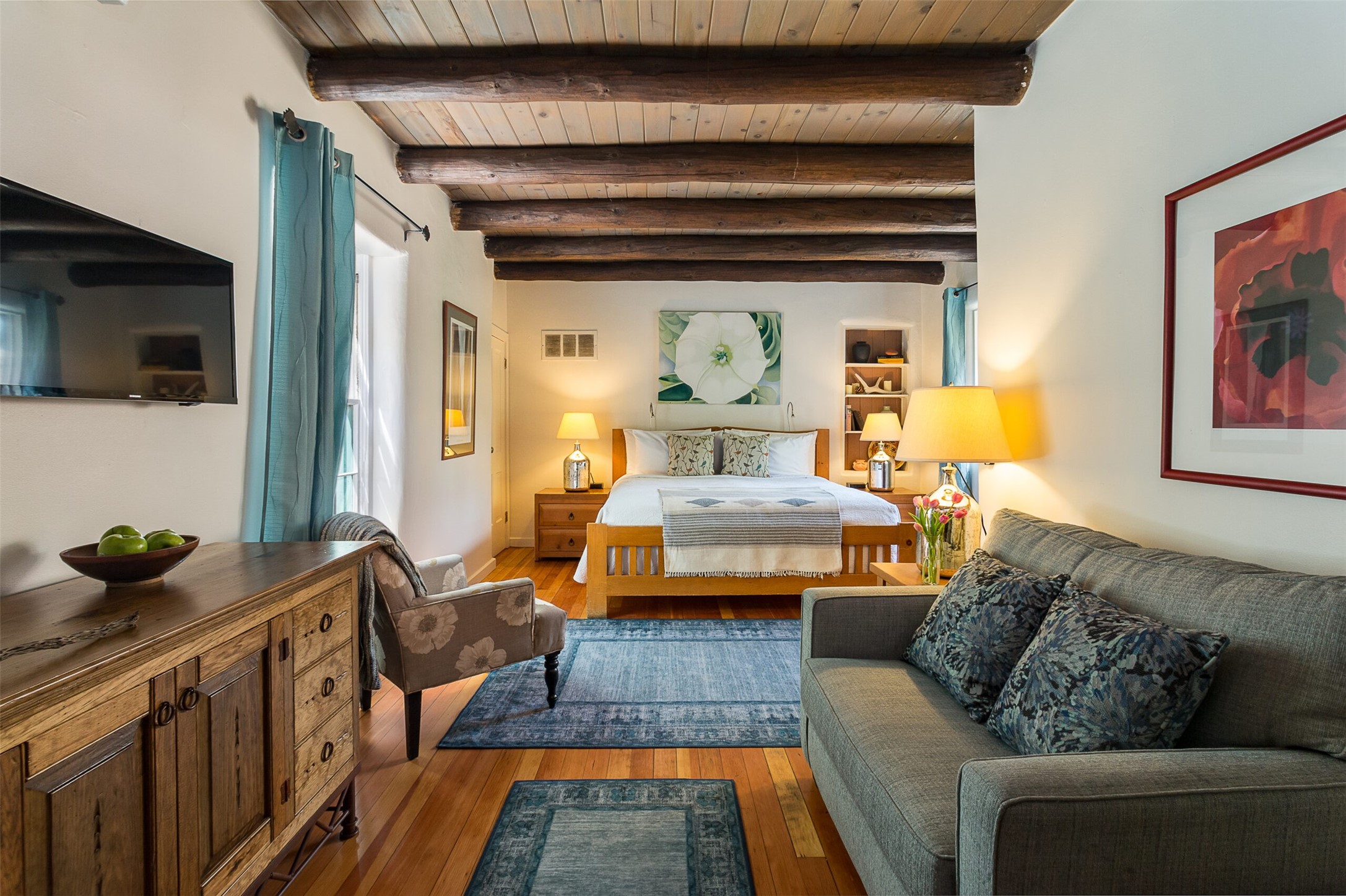 Own a piece of Santa Fe's history with this renowned Select Registry 9-room bed & breakfast, blending historic charm with modern comforts. Ranked among the top inns in the U.S., this award-winning adobe estate offers a unique hospitality investment in a premier travel destination. Situated on almost an acre of terraced gardens with towering pines, the inn features inviting indoor and outdoor spaces, ample parking, and a renovated chef's kitchen designed for seamless operation. Each uniquely styled guest room or suite includes an updated private en-suite bath and fireplace. Beautiful indoor and outdoor common areas and guest rooms reflect the region's rich cultural heritage. Once home to poet Witter Bynner, the property boasts a storied past, having hosted icons like Ansel Adams, Georgia O'Keeffe, D.H. Lawrence, and Robert Frost. This historical appeal enhances its draw for travelers seeking an authentic Santa Fe experience.Guests can unwind in lush gardens, along stone walkways, or by cozy fireplaces, all just minutes from Santa Fe's Plaza, art galleries, fine dining, and cultural landmarks.This turnkey historic inn offers a strong reputation, solid financial performance, and a prime location, making it an exceptional opportunity to own and preserve a cherished piece of Santa Fe's history while capitalizing on its thriving tourism industry.