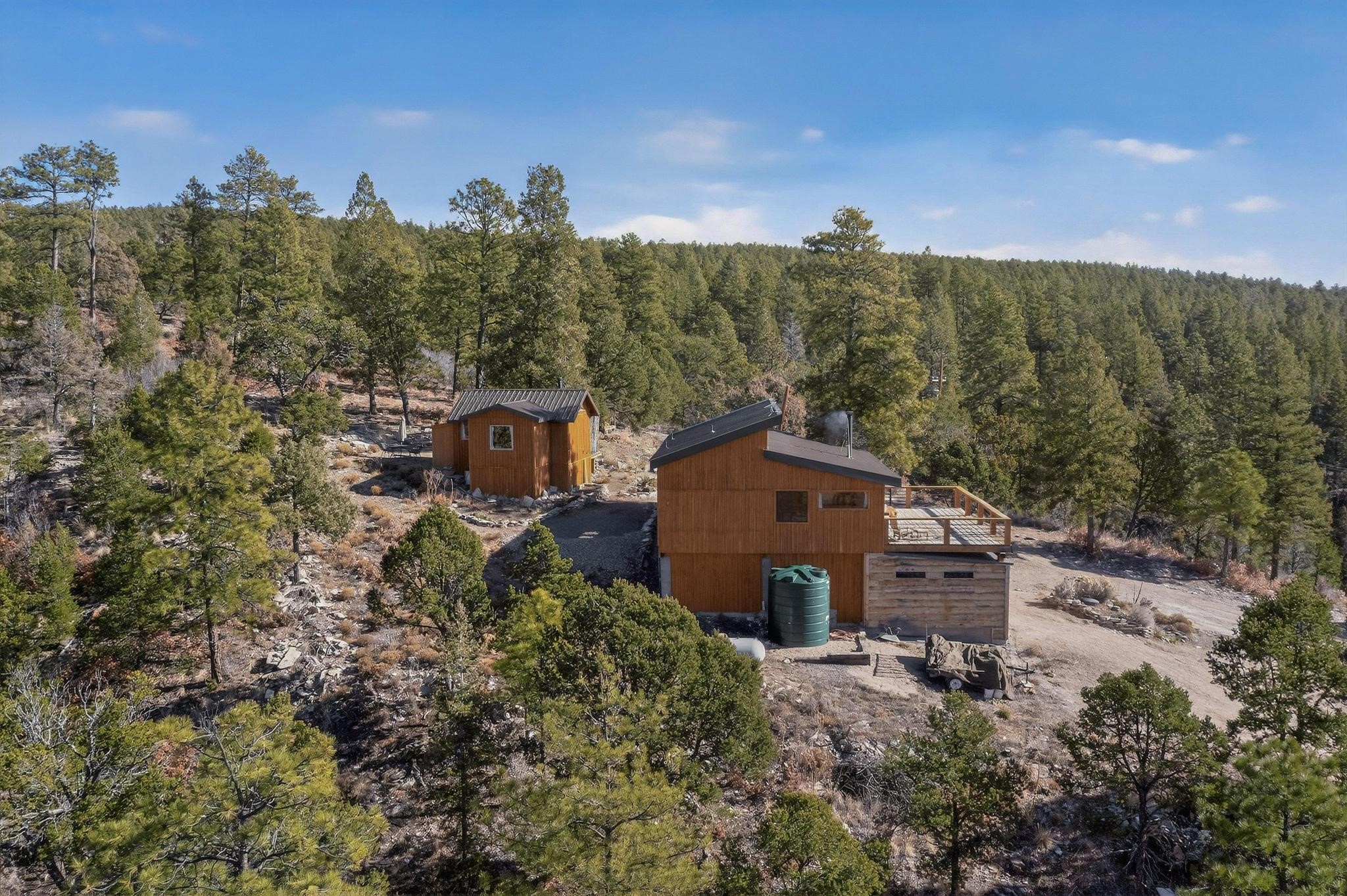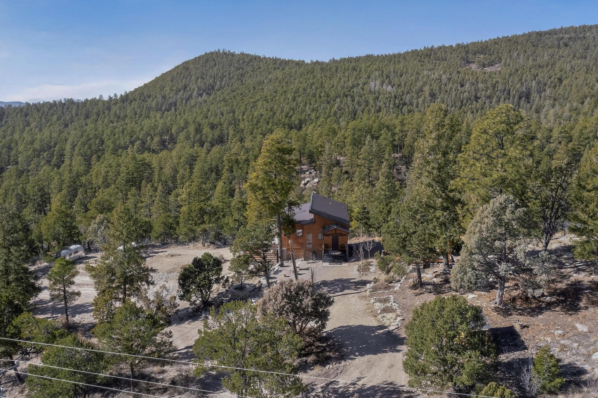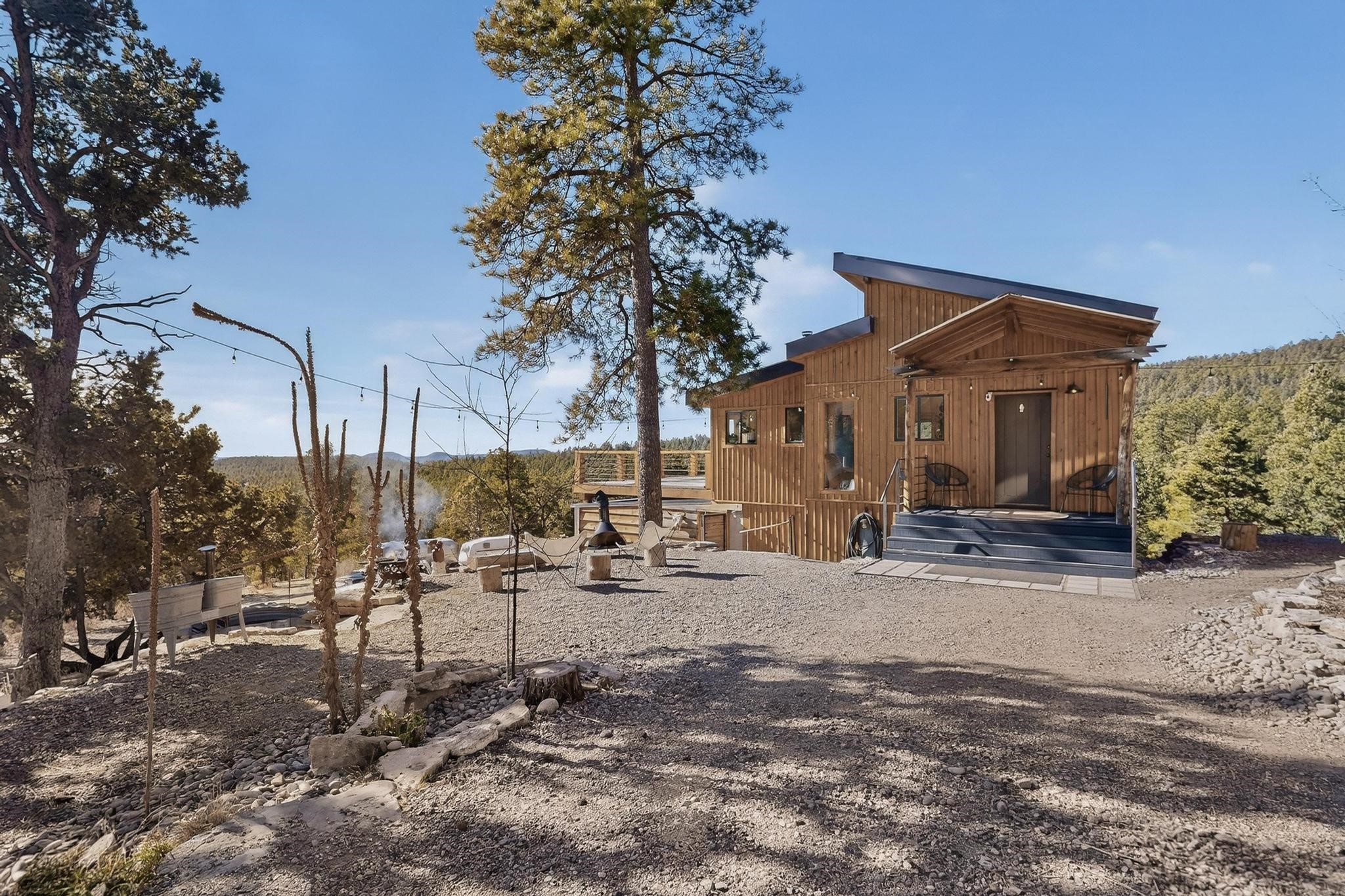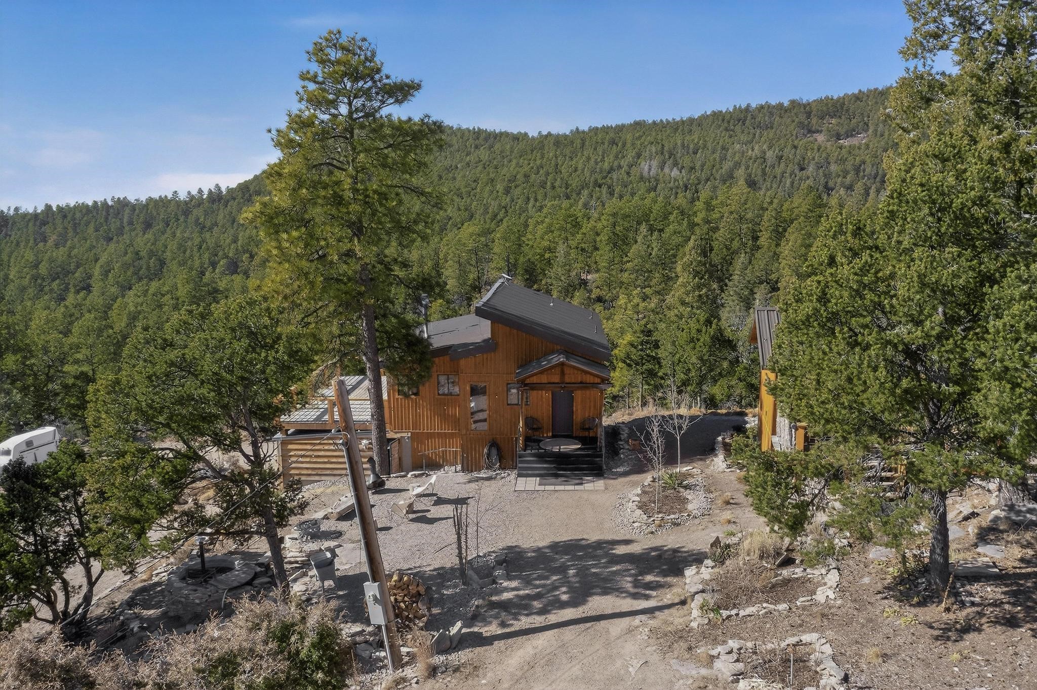 Welcome to a truly exceptional Rare Cow Creek listing-- fully renovated and designed as the ultimate mountain basecamp for outdoor enthusiasts, investors, or those seeking a peaceful full-time escape. Set on 5 private acres and surrounded by vast National Forest lands, this one-of-a-kind property offers unmatched access to adventure, expansive Western views, and unforgettable night skies with the Milky Way visible most evenings. The property includes a beautifully renovated main home, guest house, shop, dedicated artist studio, complete with a charming wood-fired hot tub and a vintage 1967 Airstream. Every structure has been thoughtfully upgraded with high-end appliances, custom fixtures and refined finishes that blend comfort with mountain living. Located just east of Pecos, NM and only 40 minutes from Santa Fe, this property sits in the heart of one of Northern New Mexico's most beloved outdoor recreation areas. Cow Creek is just 2 miles away, the Pecos River is 3 miles from the property, and easy National Forest access walking distance from your land. Enjoy world-class fly fishing, endless hiking and horseback riding, highly sought-after hunting territory, and renowned mountain biking at Glorieta Mountain Bike Park-- all minutes from your door. Pecos Village and Pecos National Historic Park are nearby for dining, culture, and community. The guest house has already proven strong rental appeal, earning 50 five-star Airbnb reviews with excellent part-time income. With the additional home and Airstream, there is significant potential for expanded short-term rental or multi-family use, making this an outstanding investment. Recent comprehensive renovations include a new roof and siding, new driveway and outdoor living spaces, new decks, custom bathrooms and showers, venetian plaster and stucco interior finishes, new flooring, high-end wood and propane stoves, a new electric panel and transformer providing 200 amps of power, a new basement art studio, and a new shop. Every detail reflects craftsmanship, quality and a true sense of place. This is a one of a kind, destination property.
