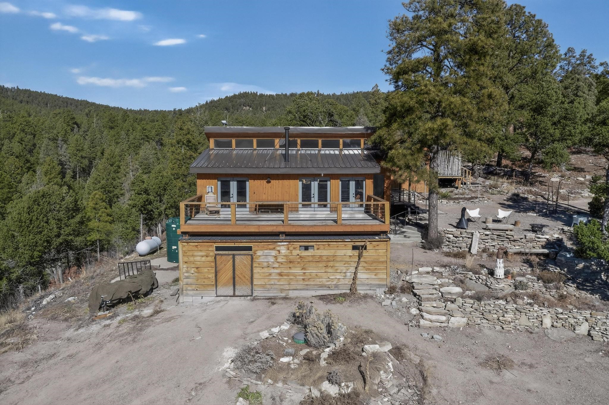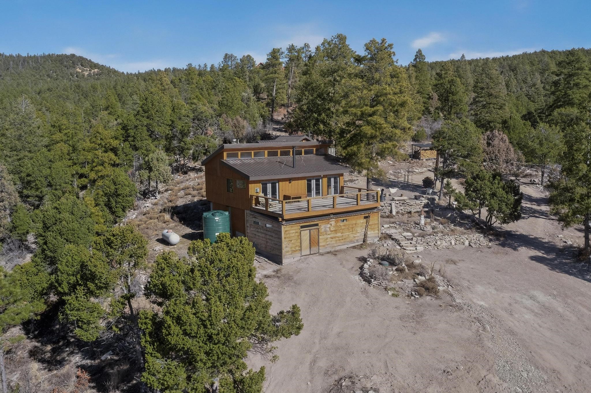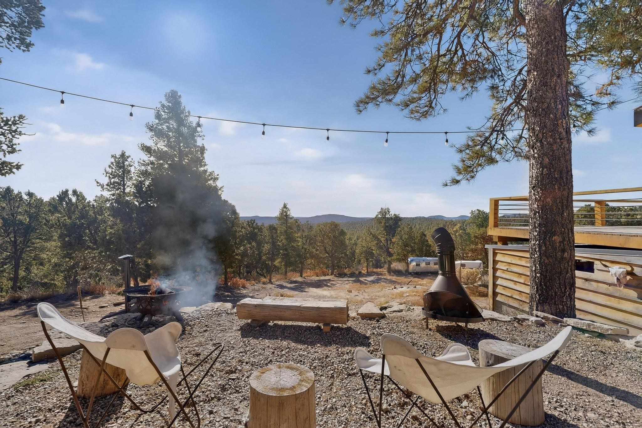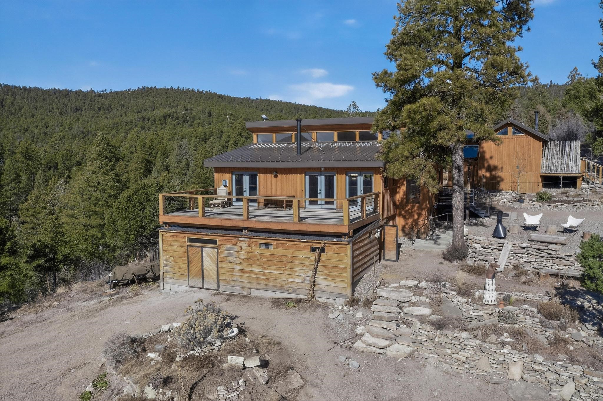 Welcome to a truly exceptional Rare Cow Creek listing-- fully renovated and designed as the ultimate mountain basecamp for outdoor enthusiasts, investors, or those seeking a peaceful full-time escape. Set on 5 private acres and surrounded by vast National Forest lands, this one-of-a-kind property offers unmatched access to adventure, expansive Western views, and unforgettable night skies with the Milky Way visible most evenings. The property includes a beautifully renovated main home, guest house, shop, dedicated artist studio, complete with a charming wood-fired hot tub and a vintage 1967 Airstream. Every structure has been thoughtfully upgraded with high-end appliances, custom fixtures and refined finishes that blend comfort with mountain living. Located just east of Pecos, NM and only 40 minutes from Santa Fe, this property sits in the heart of one of Northern New Mexico's most beloved outdoor recreation areas. Cow Creek is just 2 miles away, the Pecos River is 3 miles from the property, and easy National Forest access walking distance from your land. Enjoy world-class fly fishing, endless hiking and horseback riding, highly sought-after hunting territory, and renowned mountain biking at Glorieta Mountain Bike Park-- all minutes from your door. Pecos Village and Pecos National Historic Park are nearby for dining, culture, and community. The guest house has already proven strong rental appeal, earning 50 five-star Airbnb reviews with excellent part-time income. With the additional home and Airstream, there is significant potential for expanded short-term rental or multi-family use, making this an outstanding investment. Recent comprehensive renovations include a new roof and siding, new driveway and outdoor living spaces, new decks, custom bathrooms and showers, venetian plaster and stucco interior finishes, new flooring, high-end wood and propane stoves, a new electric panel and transformer providing 200 amps of power, a new basement art studio, and a new shop. Every detail reflects craftsmanship, quality and a true sense of place. This is a one of a kind, destination property.