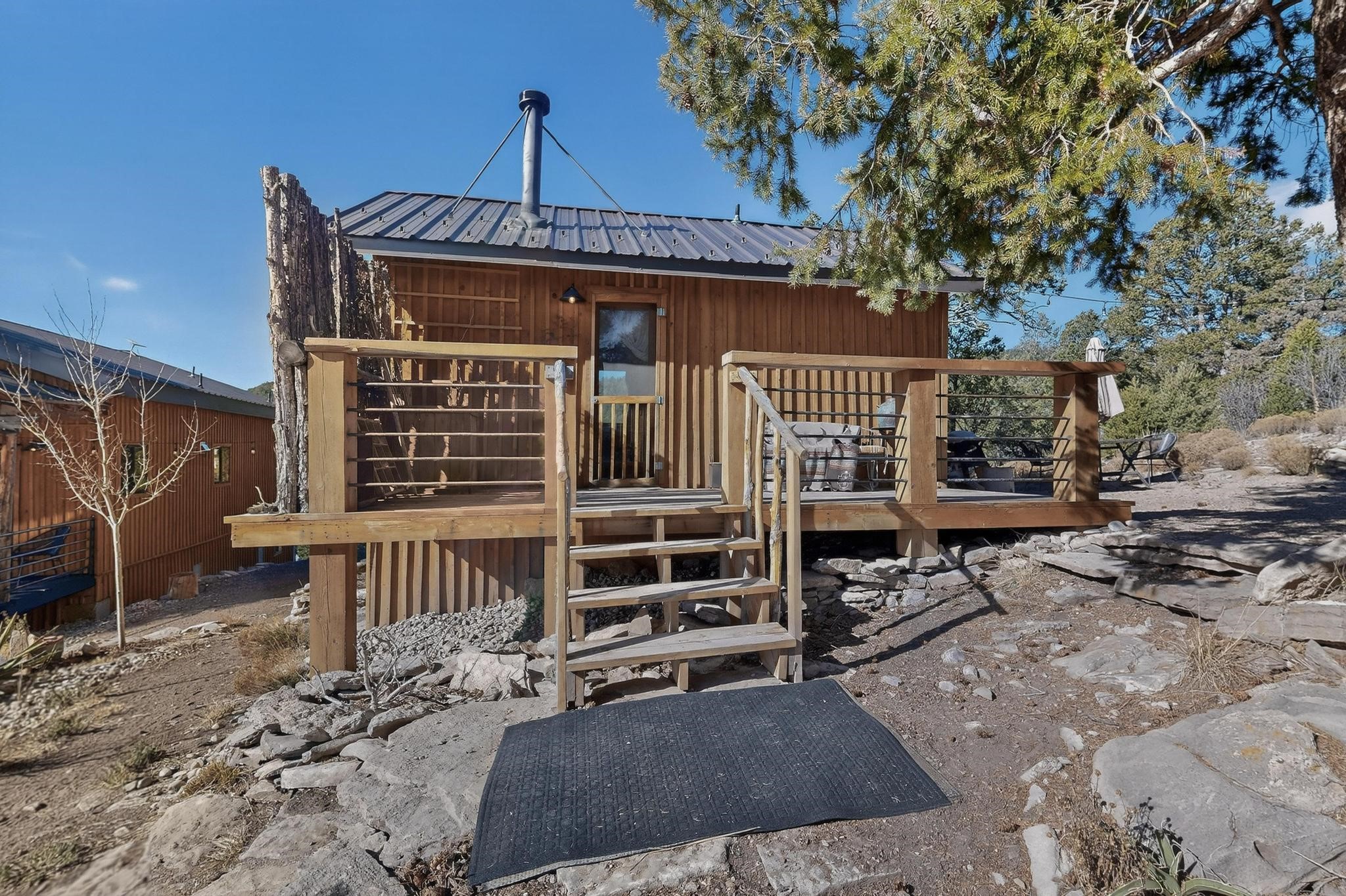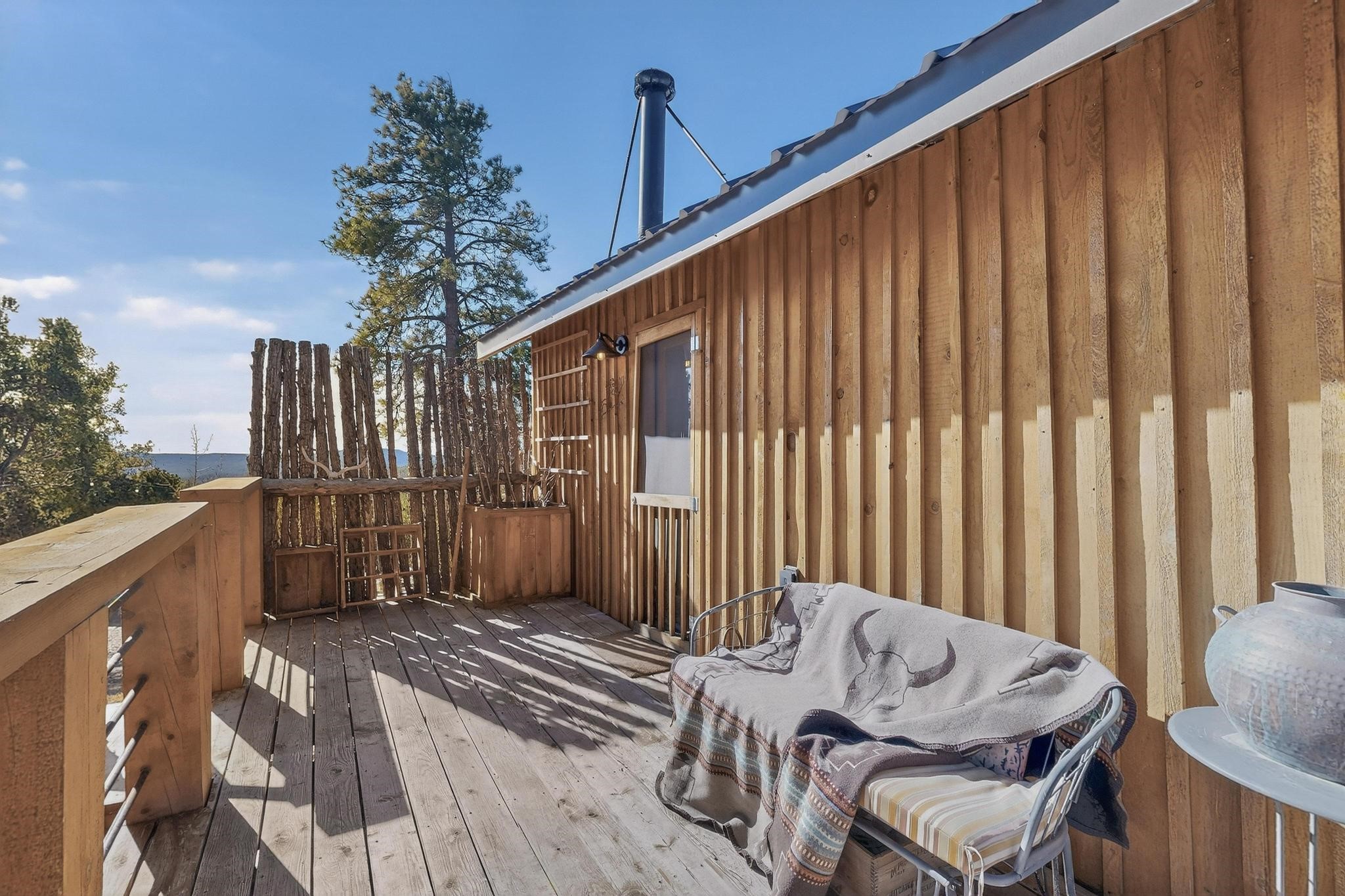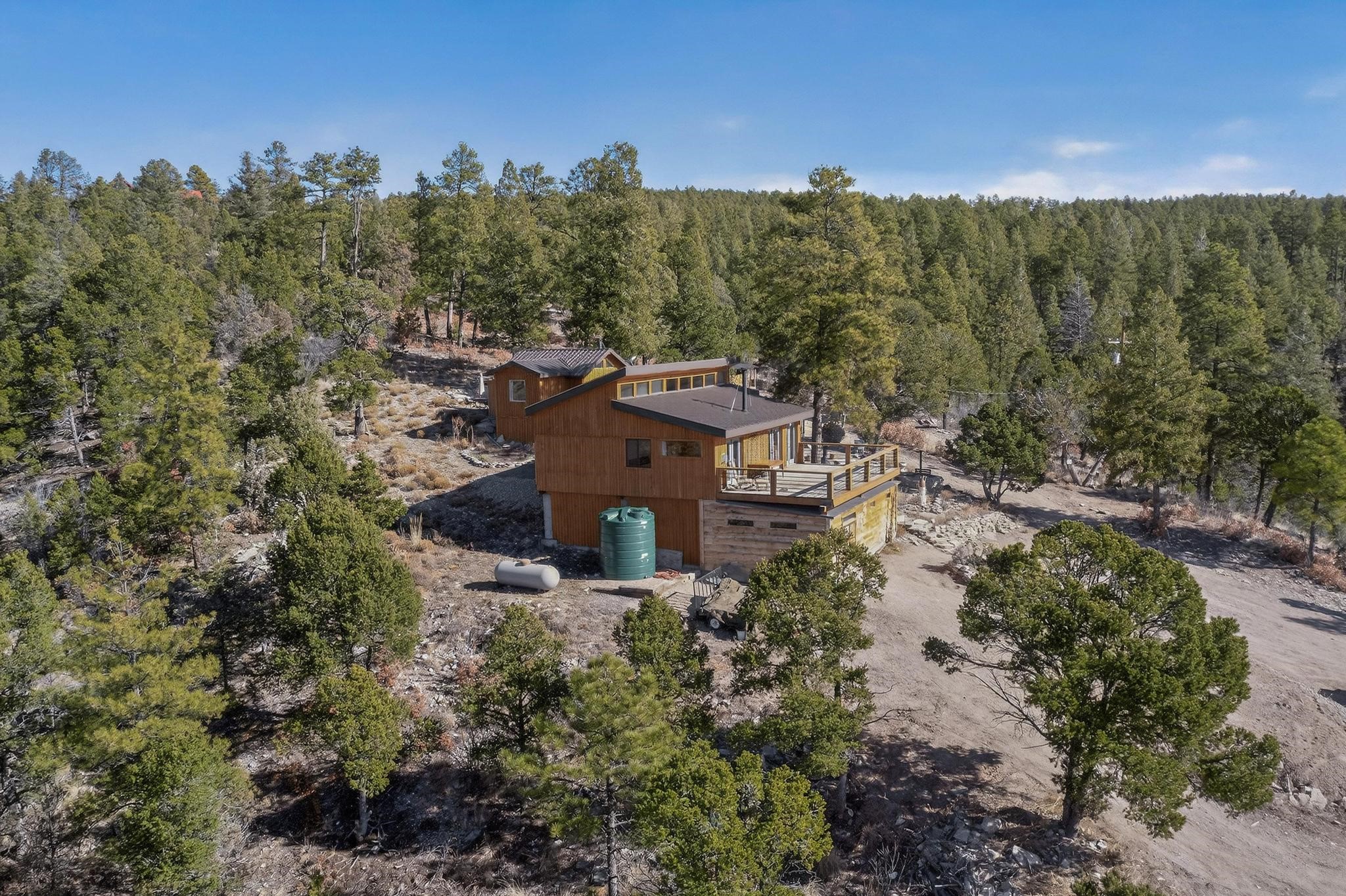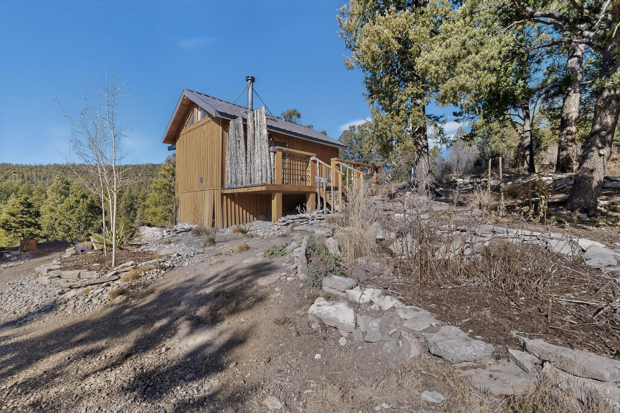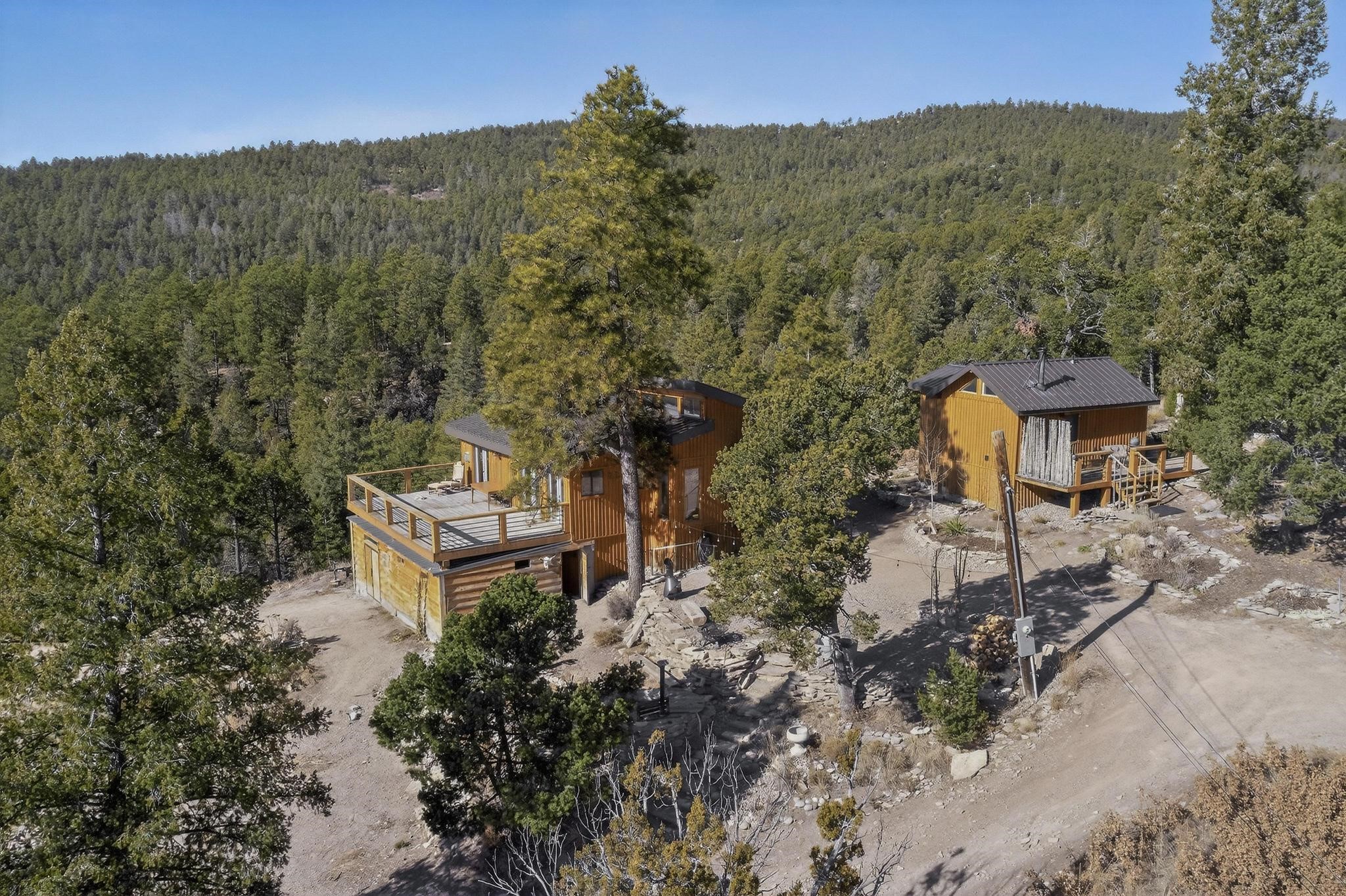 Welcome to a truly exceptional Rare Cow Creek listing-- fully renovated and designed as the ultimate mountain basecamp for outdoor enthusiasts, investors, or those seeking a peaceful full-time escape. Set on 5 private acres and surrounded by vast National Forest lands, this one-of-a-kind property offers unmatched access to adventure, expansive Western views, and unforgettable night skies with the Milky Way visible most evenings. The property includes a beautifully renovated main home, guest house, shop, dedicated artist studio, complete with a charming wood-fired hot tub and a vintage 1967 Airstream. Every structure has been thoughtfully upgraded with high-end appliances, custom fixtures and refined finishes that blend comfort with mountain living. Located just east of Pecos, NM and only 40 minutes from Santa Fe, this property sits in the heart of one of Northern New Mexico's most beloved outdoor recreation areas. Cow Creek is just 2 miles away, the Pecos River is 3 miles from the property, and easy National Forest access walking distance from your land. Enjoy world-class fly fishing, endless hiking and horseback riding, highly sought-after hunting territory, and renowned mountain biking at Glorieta Mountain Bike Park-- all minutes from your door. Pecos Village and Pecos National Historic Park are nearby for dining, culture, and community. The guest house has already proven strong rental appeal, earning 50 five-star Airbnb reviews with excellent part-time income. With the additional home and Airstream, there is significant potential for expanded short-term rental or multi-family use, making this an outstanding investment. Recent comprehensive renovations include a new roof and siding, new driveway and outdoor living spaces, new decks, custom bathrooms and showers, venetian plaster and stucco interior finishes, new flooring, high-end wood and propane stoves, a new electric panel and transformer providing 200 amps of power, a new basement art studio, and a new shop. Every detail reflects craftsmanship, quality and a true sense of place. This is a one of a kind, destination property.