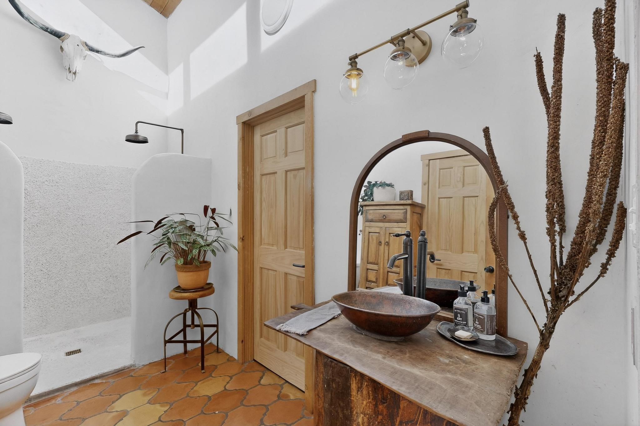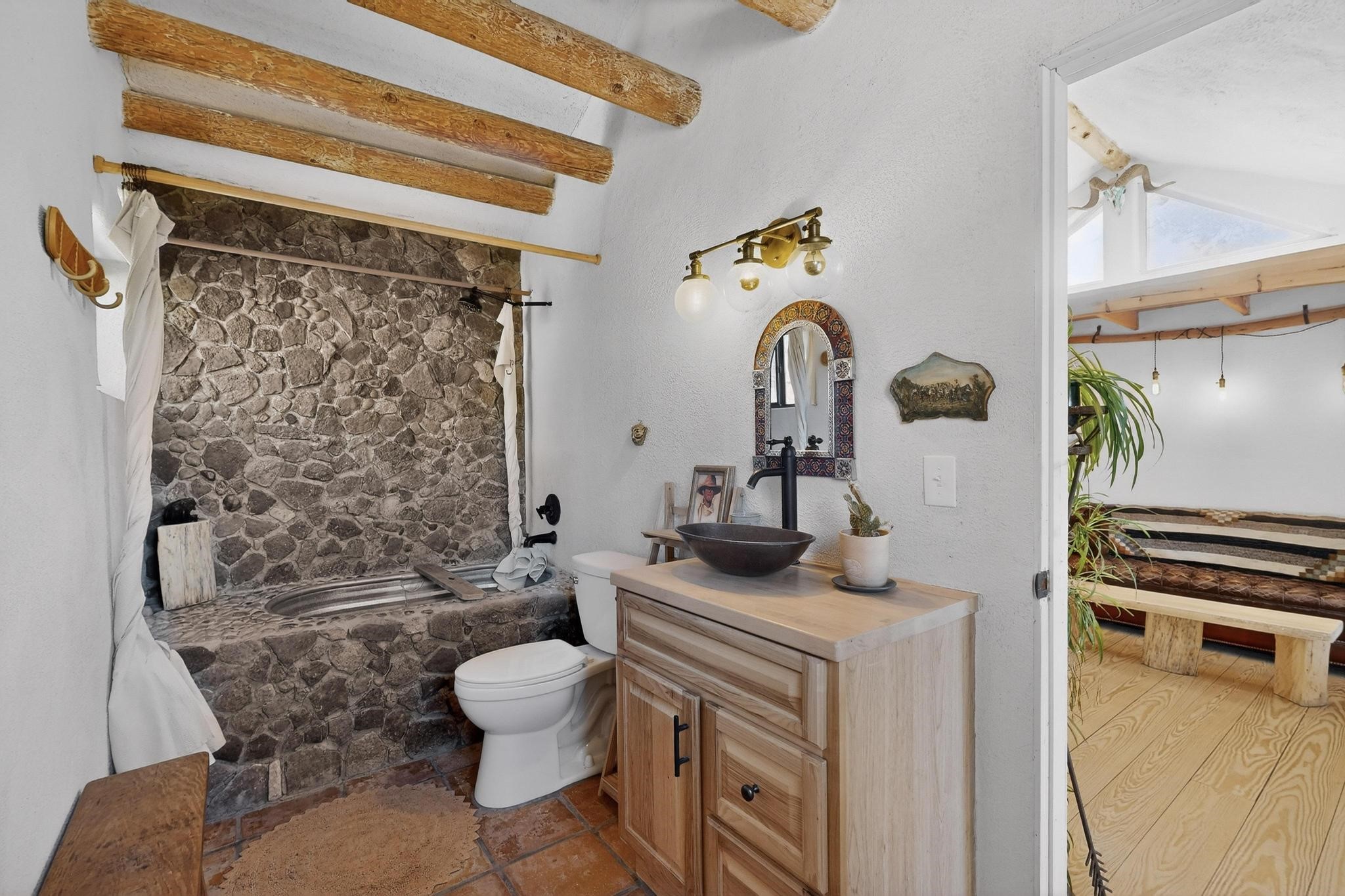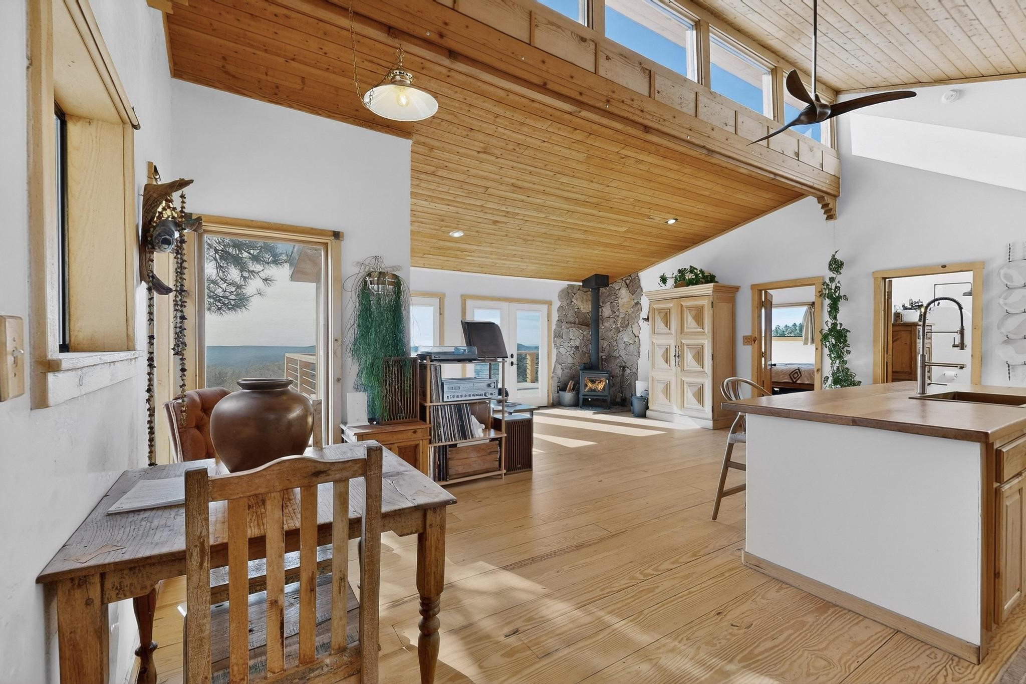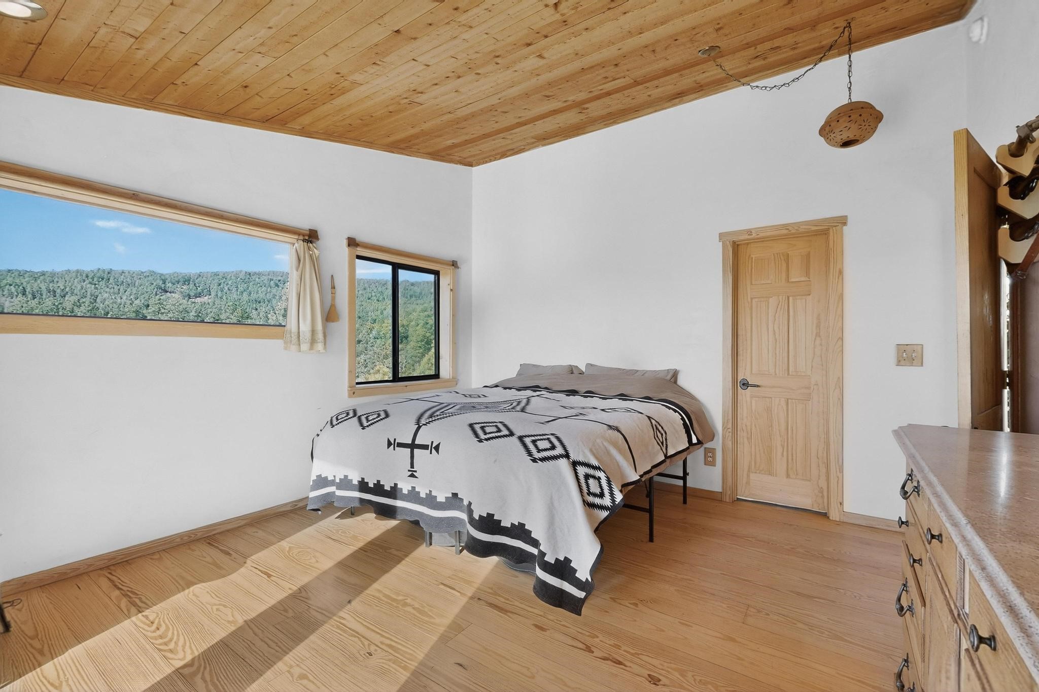 Welcome to a truly exceptional Rare Cow Creek listing-- fully renovated and designed as the ultimate mountain basecamp for outdoor enthusiasts, investors, or those seeking a peaceful full-time escape. Set on 5 private acres and surrounded by vast National Forest lands, this one-of-a-kind property offers unmatched access to adventure, expansive Western views, and unforgettable night skies with the Milky Way visible most evenings. The property includes a beautifully renovated main home, guest house, shop, dedicated artist studio, complete with a charming wood-fired hot tub and a vintage 1967 Airstream. Every structure has been thoughtfully upgraded with high-end appliances, custom fixtures and refined finishes that blend comfort with mountain living. Located just east of Pecos, NM and only 40 minutes from Santa Fe, this property sits in the heart of one of Northern New Mexico's most beloved outdoor recreation areas. Cow Creek is just 2 miles away, the Pecos River is 3 miles from the property, and easy National Forest access walking distance from your land. Enjoy world-class fly fishing, endless hiking and horseback riding, highly sought-after hunting territory, and renowned mountain biking at Glorieta Mountain Bike Park-- all minutes from your door. Pecos Village and Pecos National Historic Park are nearby for dining, culture, and community. The guest house has already proven strong rental appeal, earning 50 five-star Airbnb reviews with excellent part-time income. With the additional home and Airstream, there is significant potential for expanded short-term rental or multi-family use, making this an outstanding investment. Recent comprehensive renovations include a new roof and siding, new driveway and outdoor living spaces, new decks, custom bathrooms and showers, venetian plaster and stucco interior finishes, new flooring, high-end wood and propane stoves, a new electric panel and transformer providing 200 amps of power, a new basement art studio, and a new shop. Every detail reflects craftsmanship, quality and a true sense of place. This is a one of a kind, destination property.