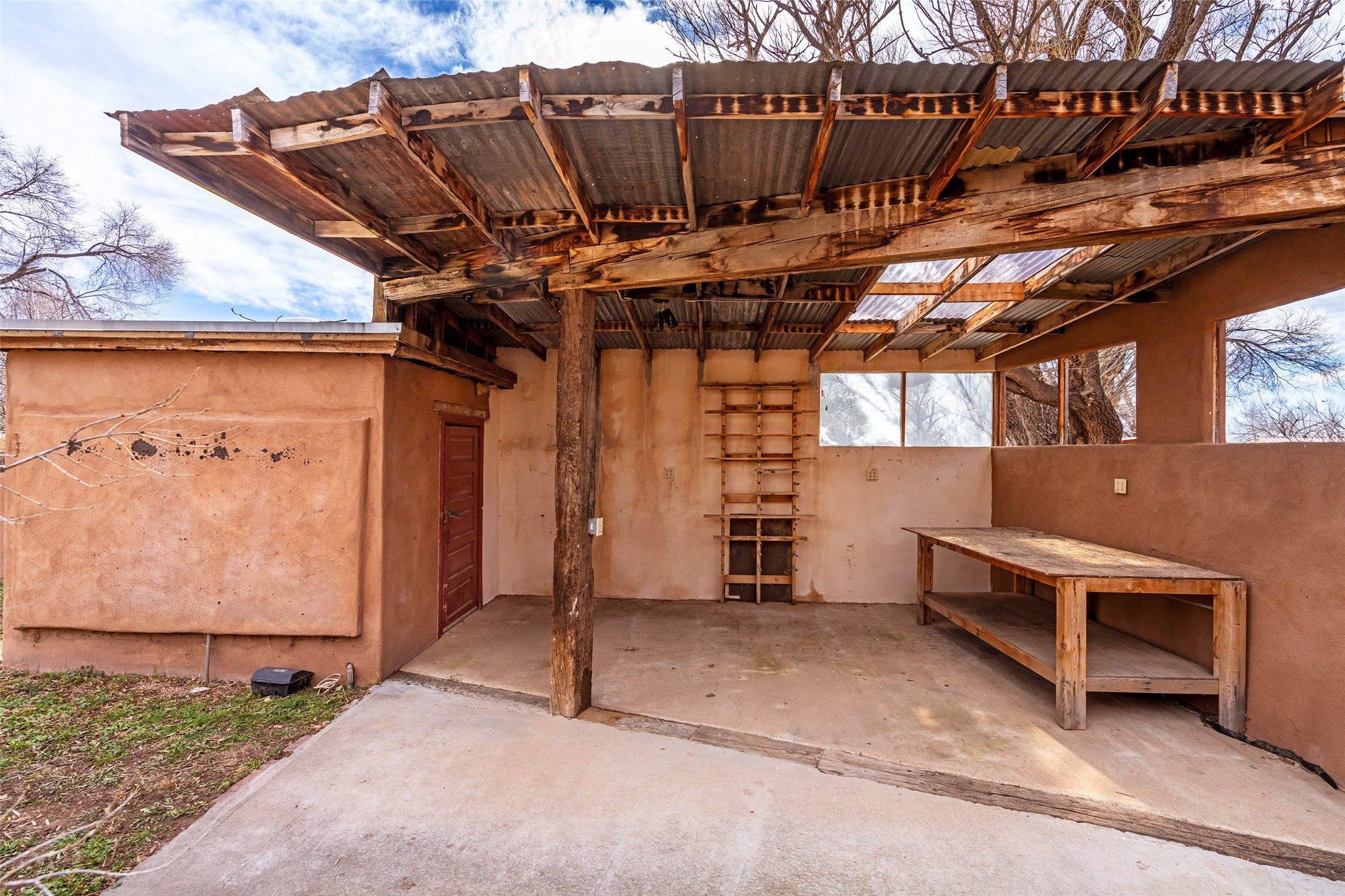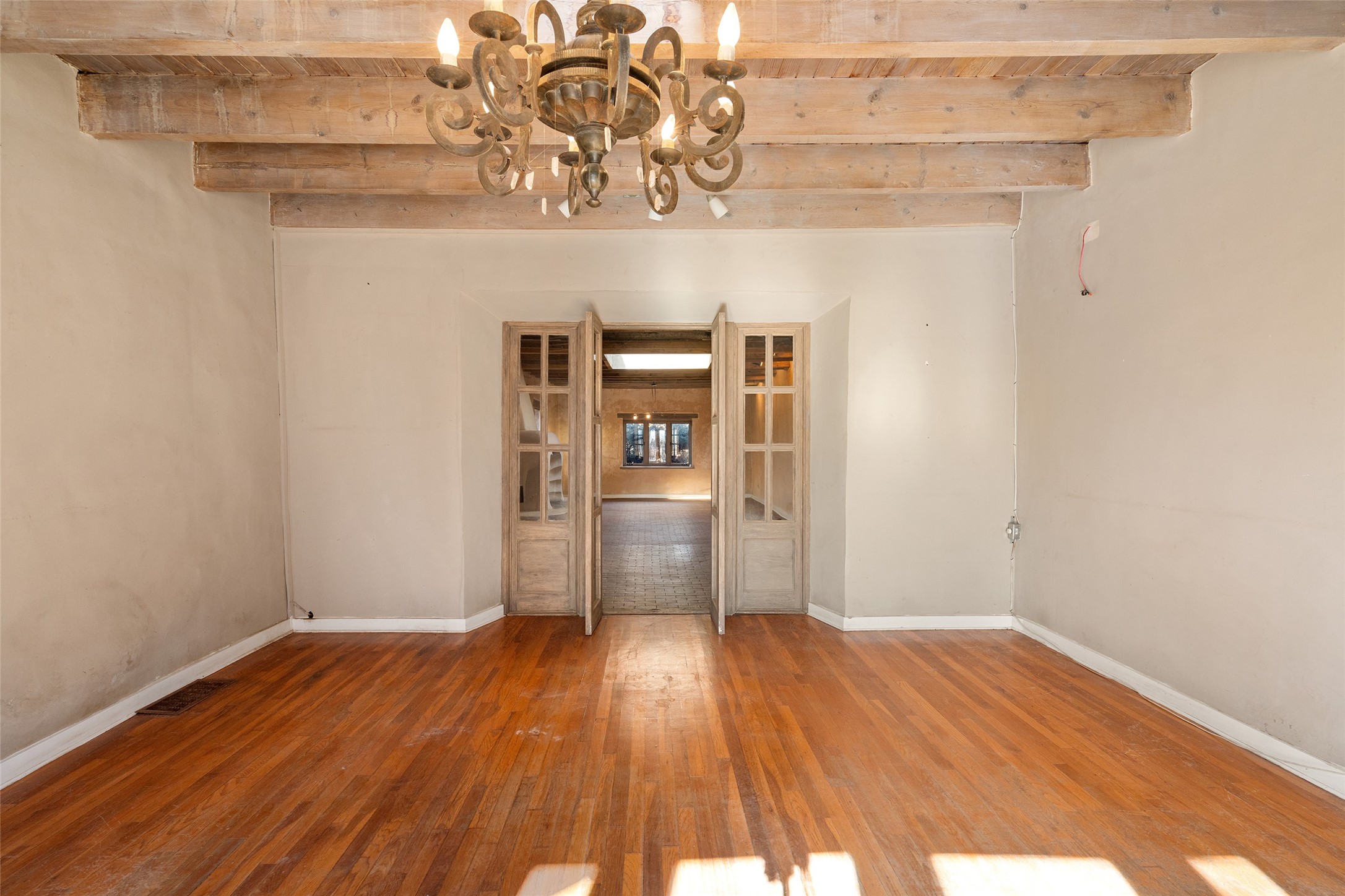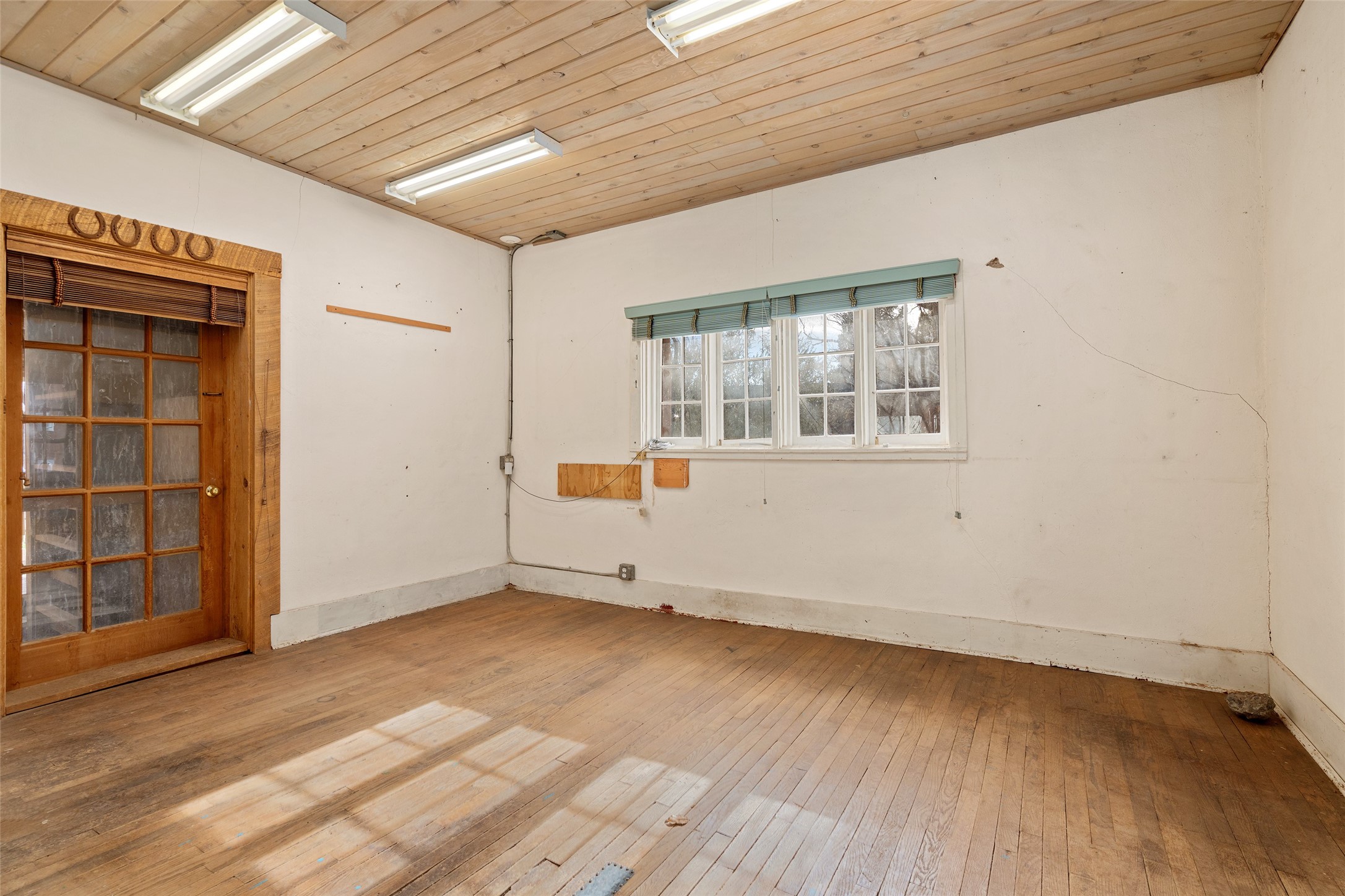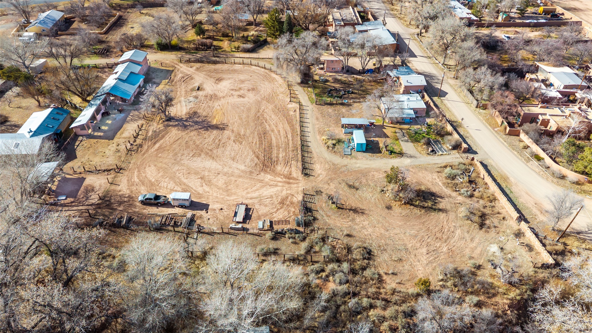 This historic Galisteo Hacienda presents a rare opportunity to restore an iconic adobe estate set on 3.8 acres within the village of Galisteo, one of the largest landholdings under Traditional Community zoning, which supports residential, live/work, and art gallery uses. Dating to the 1800s, the property once served as the headquarters of Don Jos Ortiz y Pino's sheep empire and later as the iconic Quartermill Farm - home, studio, and gallery of acclaimed artist Priscilla Hoback--making it uniquely suited to continue as a creative live/work estate. Located in the heart of Galisteo Village, the property includes a former gallery along a central village road and a substantial adobe main house privately set behind it.The hacienda features two residential wings with four bedrooms and three baths, a large library, grand living and dining rooms, multiple fireplaces, and authentic architectural details. A generous inner courtyard with mature trees, portals, and a koi pond creates a serene, campus-like setting ideal for both living and creative pursuits, complemented by fruit trees, gardens, and expansive village acreage.Equestrian facilities include a large handcrafted stone and adobe barn with spacious stalls and turnouts, wash rack, hay loft, tack room with bath, and an oversized arena, supported by a private well dedicated to the barn. Additional structures include an art studio with sink and loft, and a one-bedroom guest house--formerly the historic town bar--offering flexibility for guests, staff, or extended work use.The property is in need of renovation and restoration, presenting an exceptional opportunity for a discerning buyer to reimagine a historically significant live/work estate, blending residential life, creative enterprise, and community engagement in one of Galisteo's most storied village settings.